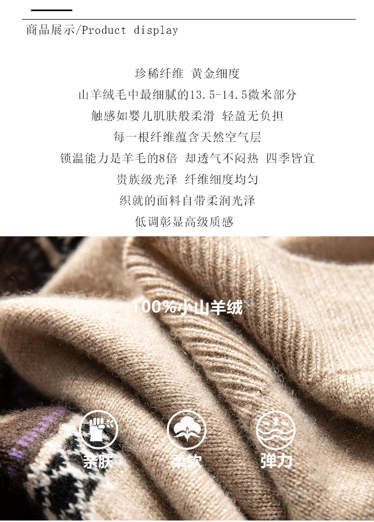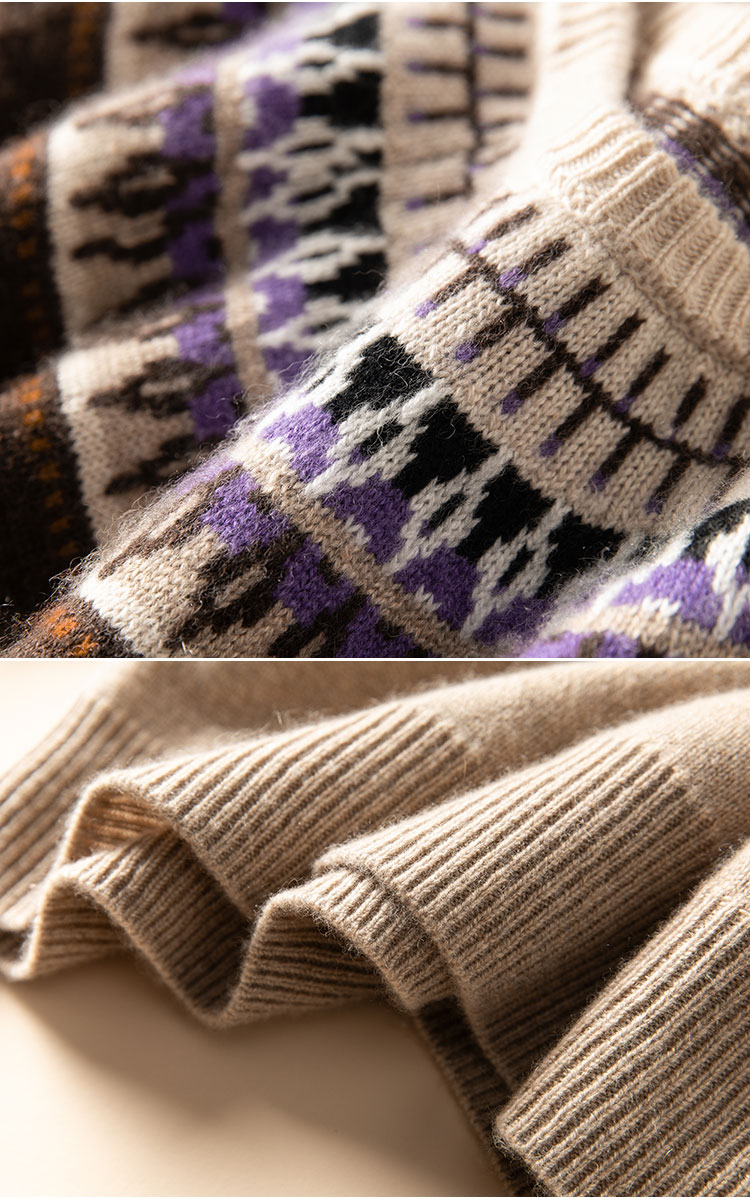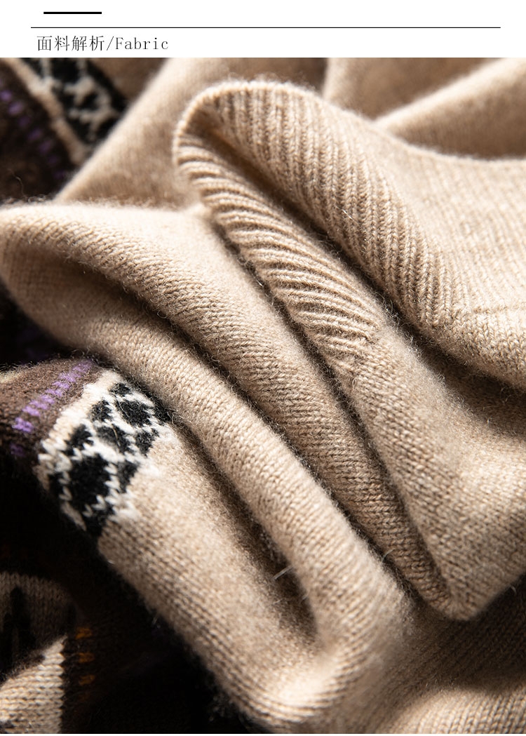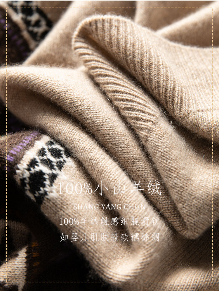 100%Baby小山羊绒~圆领费尔岛提花加厚羊绒衫女BABY250494