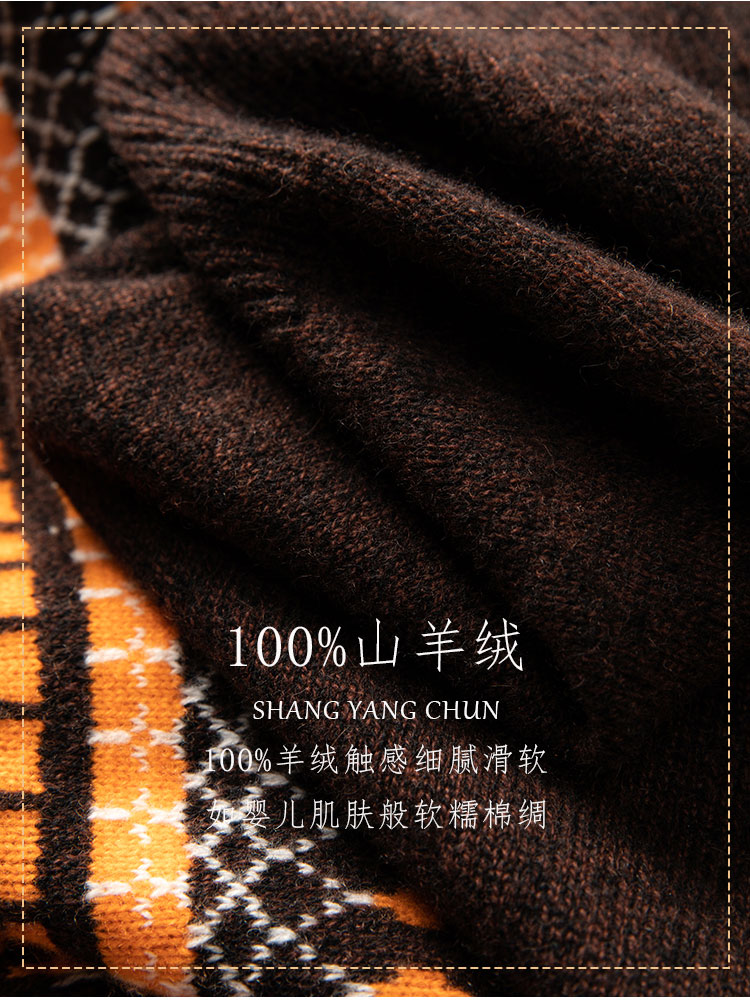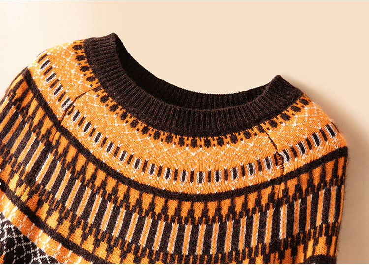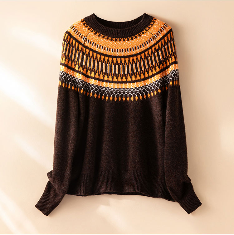 苏格兰小镇~复古费尔岛提花100%纯山羊绒衫女冬季新款针织毛衣