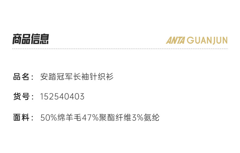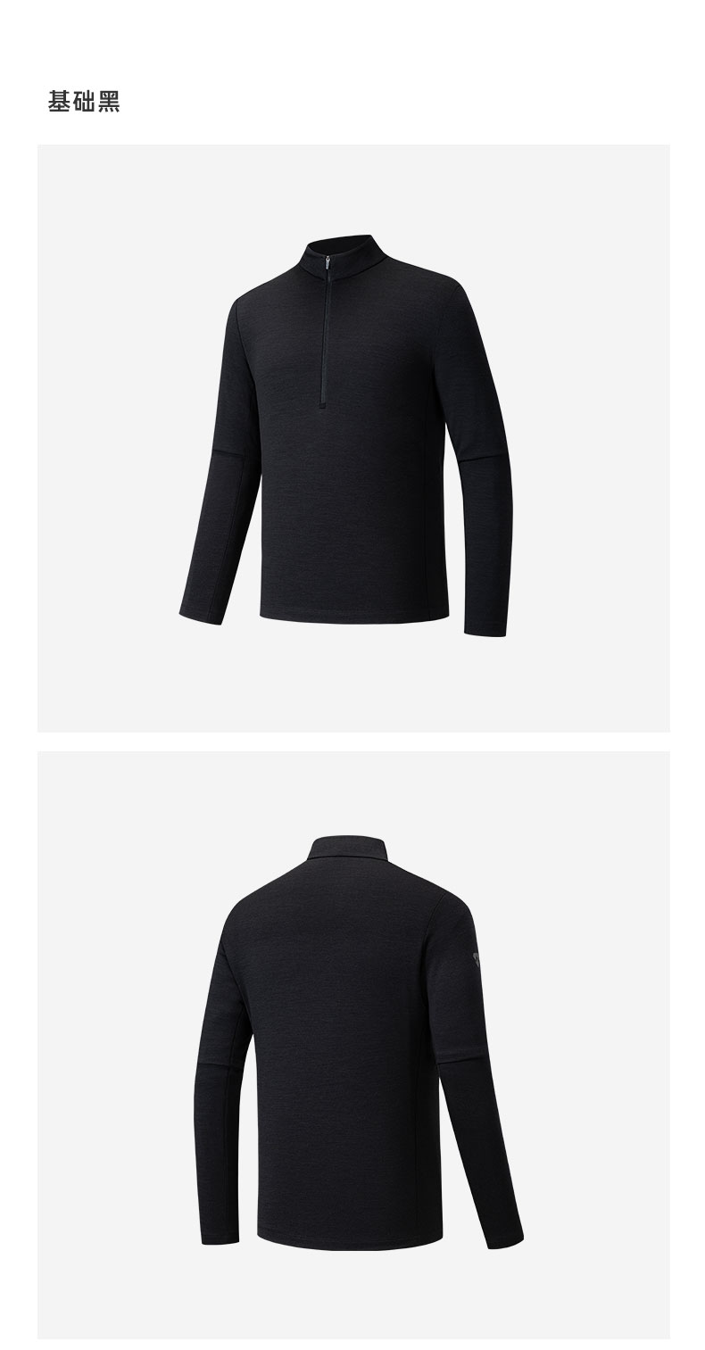 安踏冠军WOOLMARK羊毛半拉链长袖T恤男士冬季运动针织衫152540403