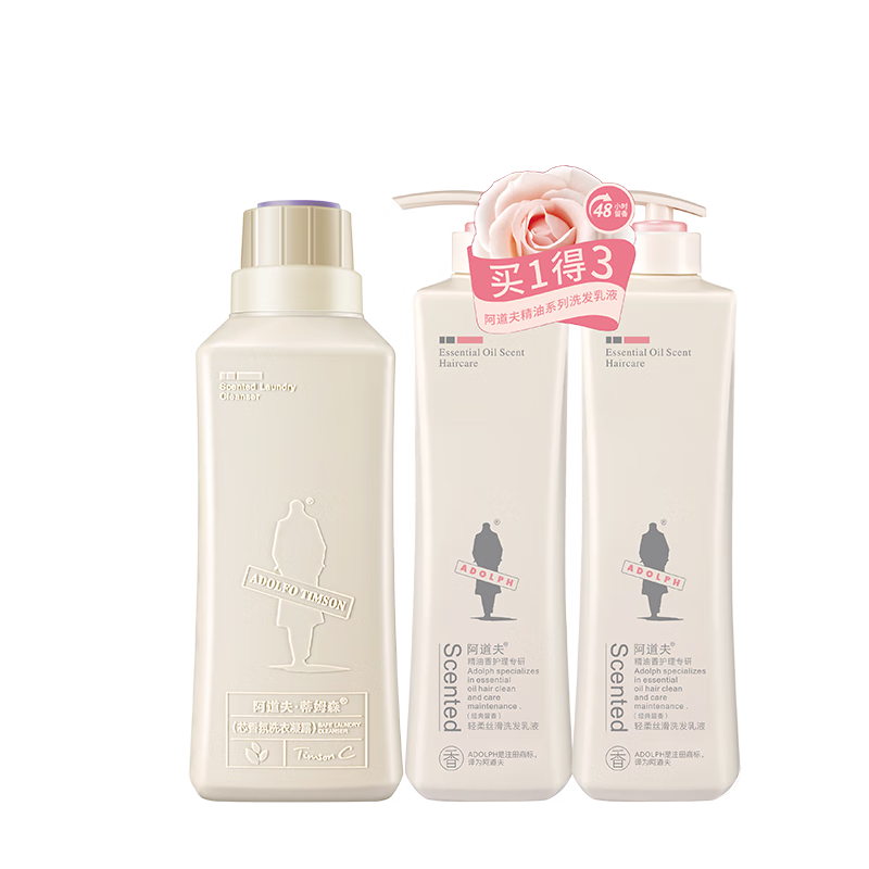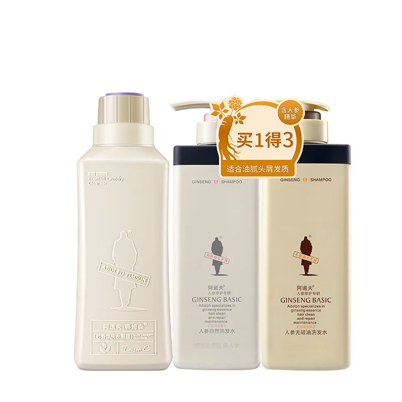 阿道夫 人参自然洗发水500g(祛屑止痒)+人参自然洗发水(五项专研)500g+洗衣凝露(鸢尾柔情)620ML