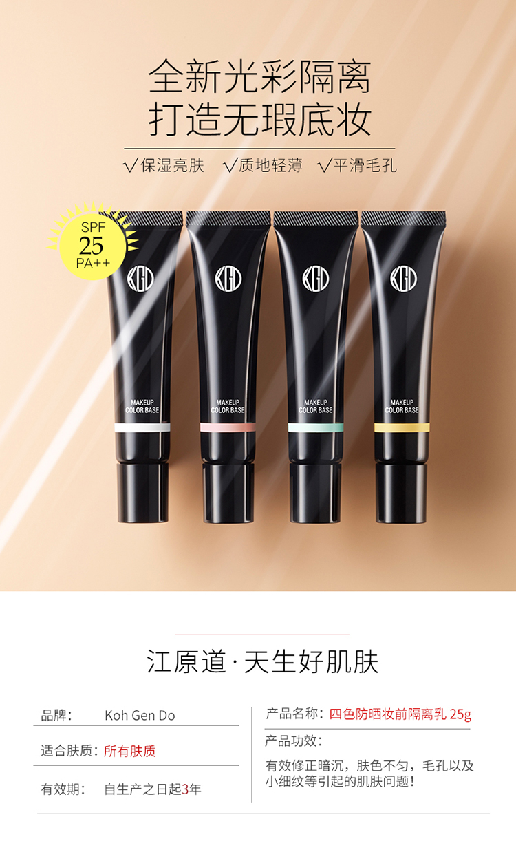 KohGenDo 江原道 全新光彩四色防晒妆前隔离乳25g SPF25 PA++