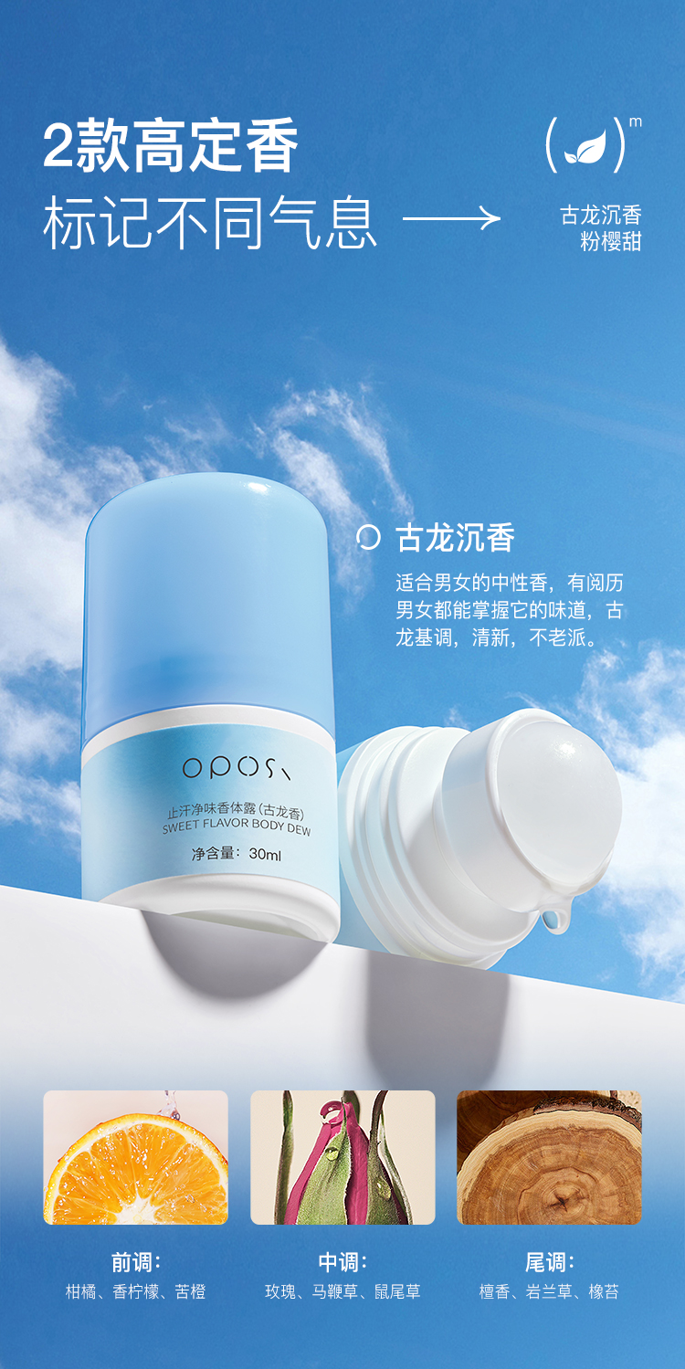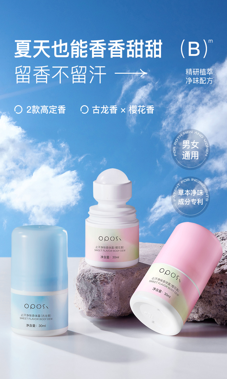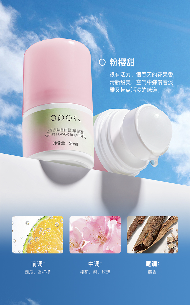 【腋下无异味!】oposi止汗净味香体露 淡化腋下净味留香喷雾除臭净异味,30ml/瓶