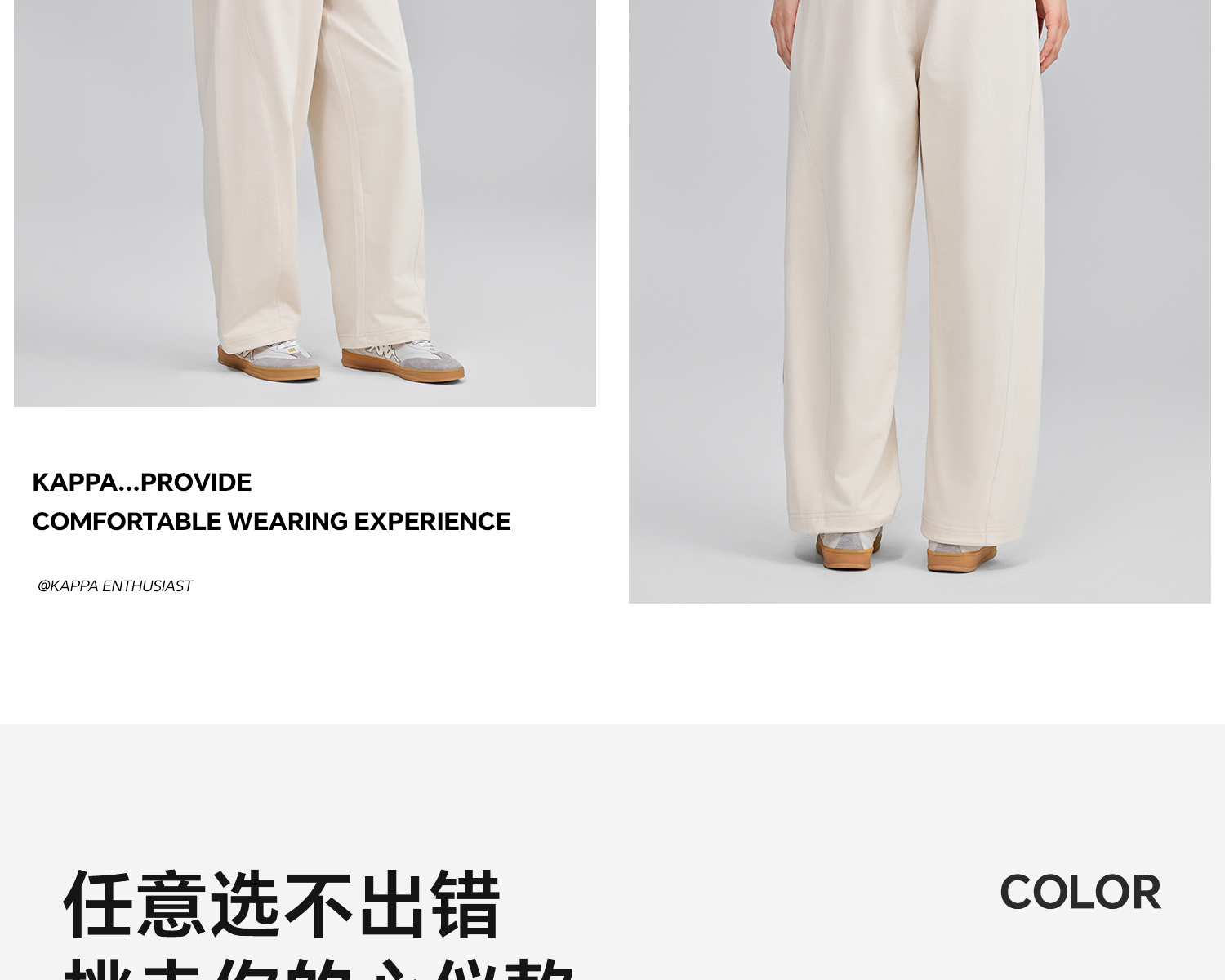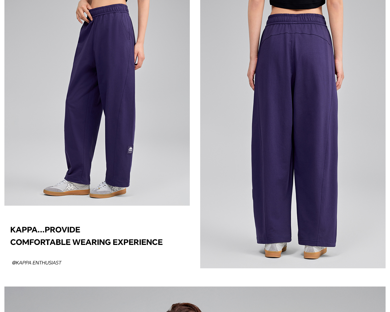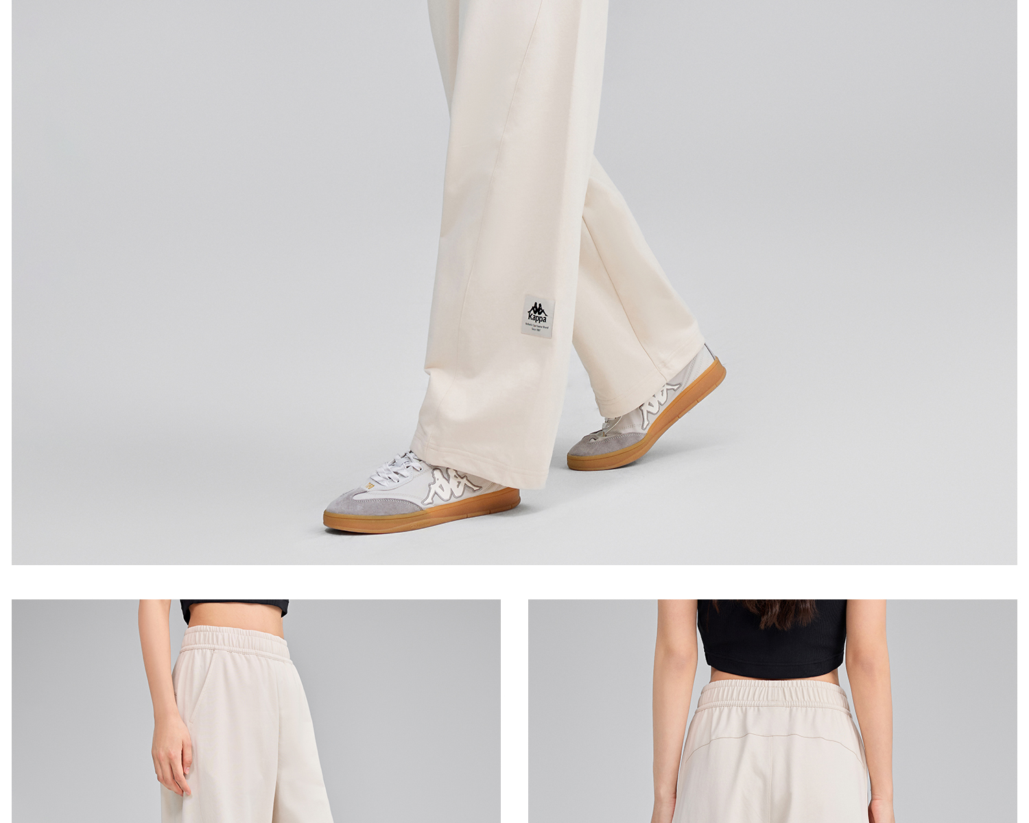 Kappa卡帕背靠背女款针织运动裤2025新款复古长裤休闲裤子直筒裤K0F42AK80