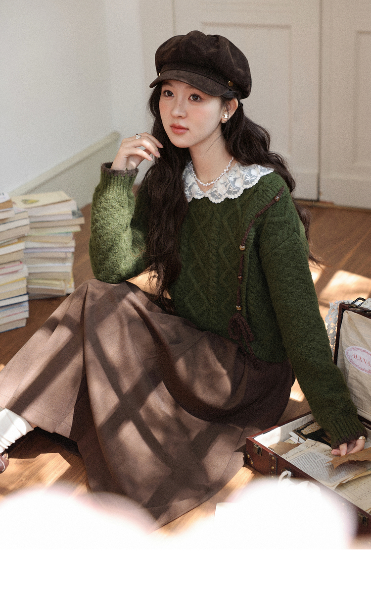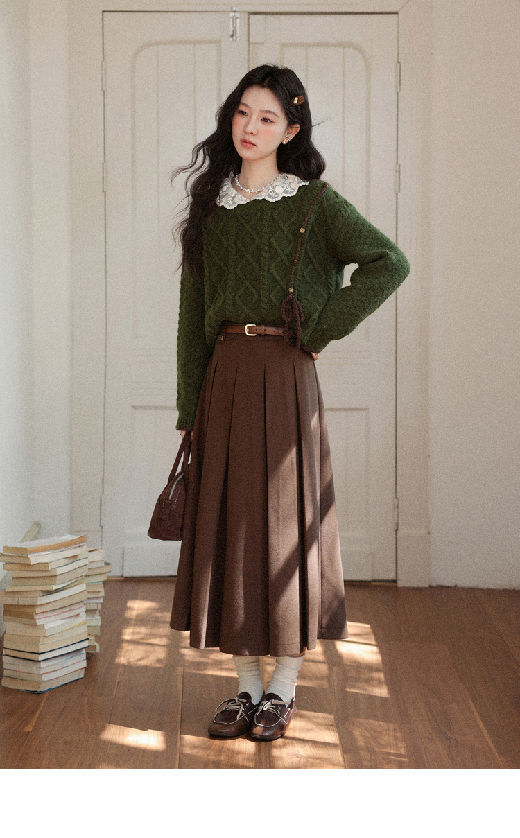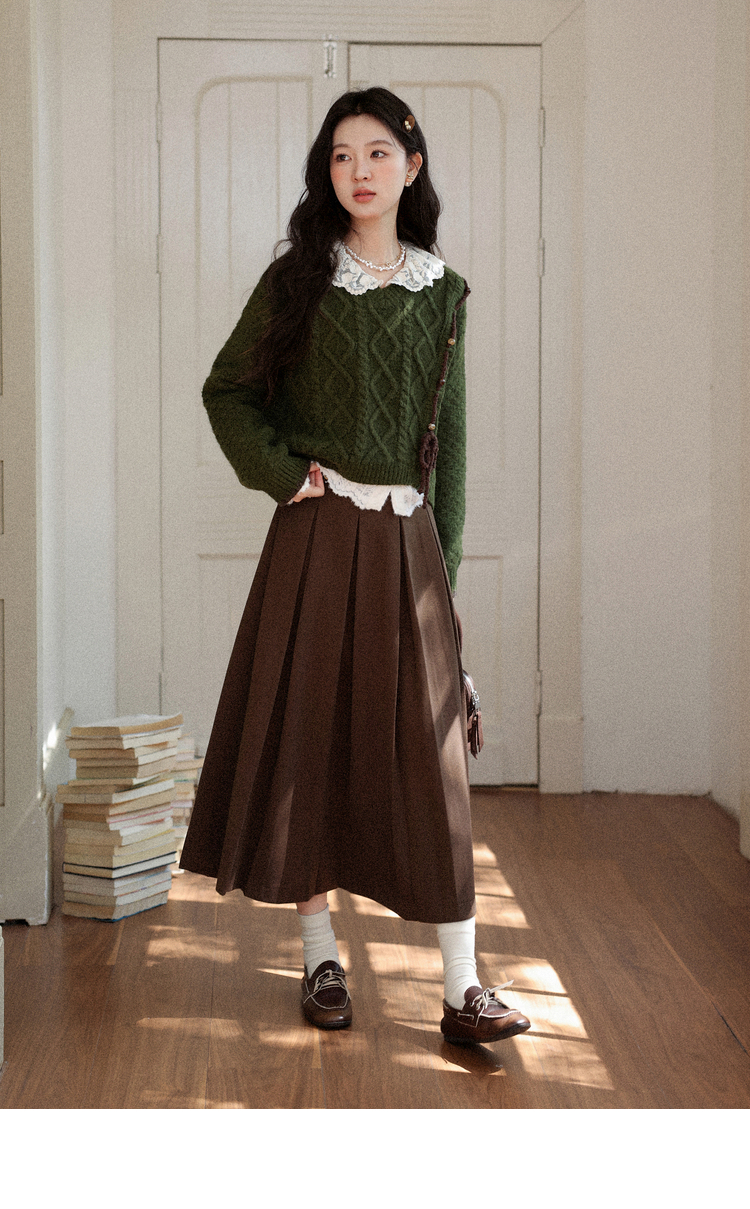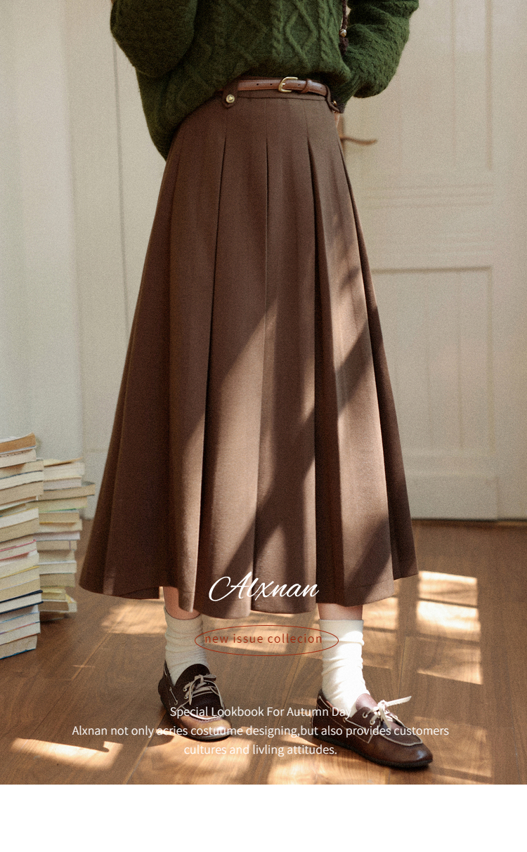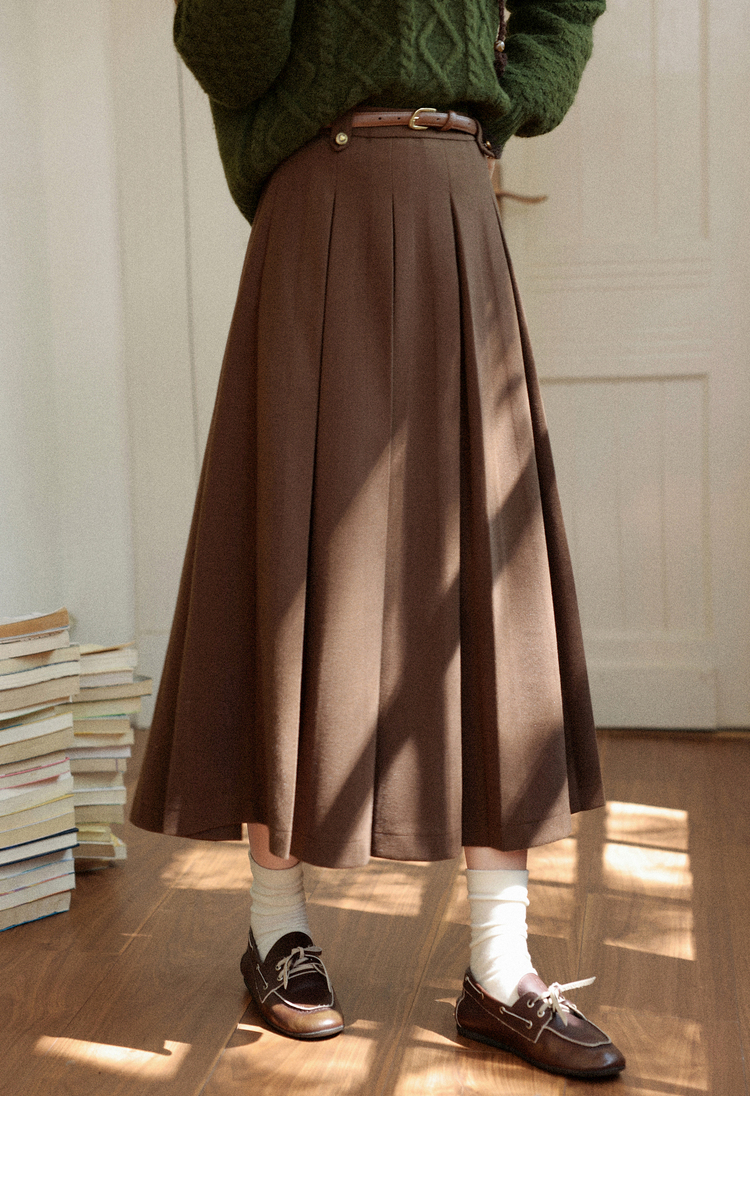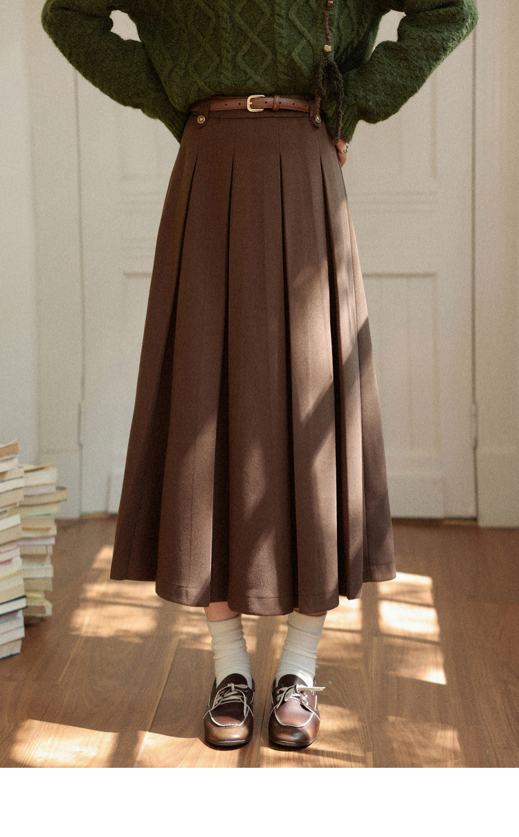 鹿向南「布拉格书店」高腰咖色半身裙女秋新款垂感显瘦长款百褶裙