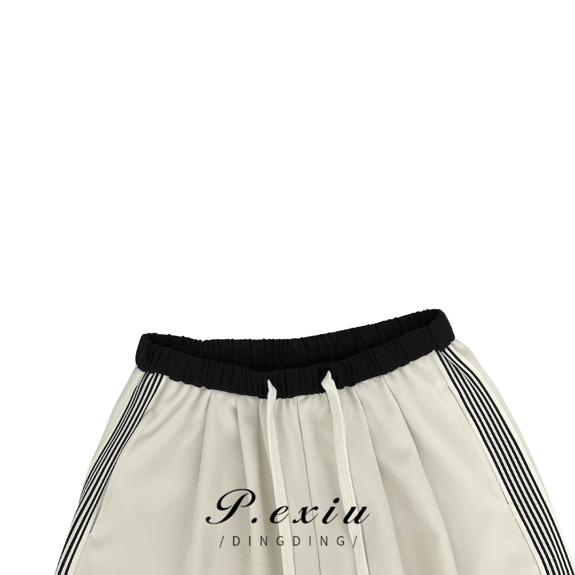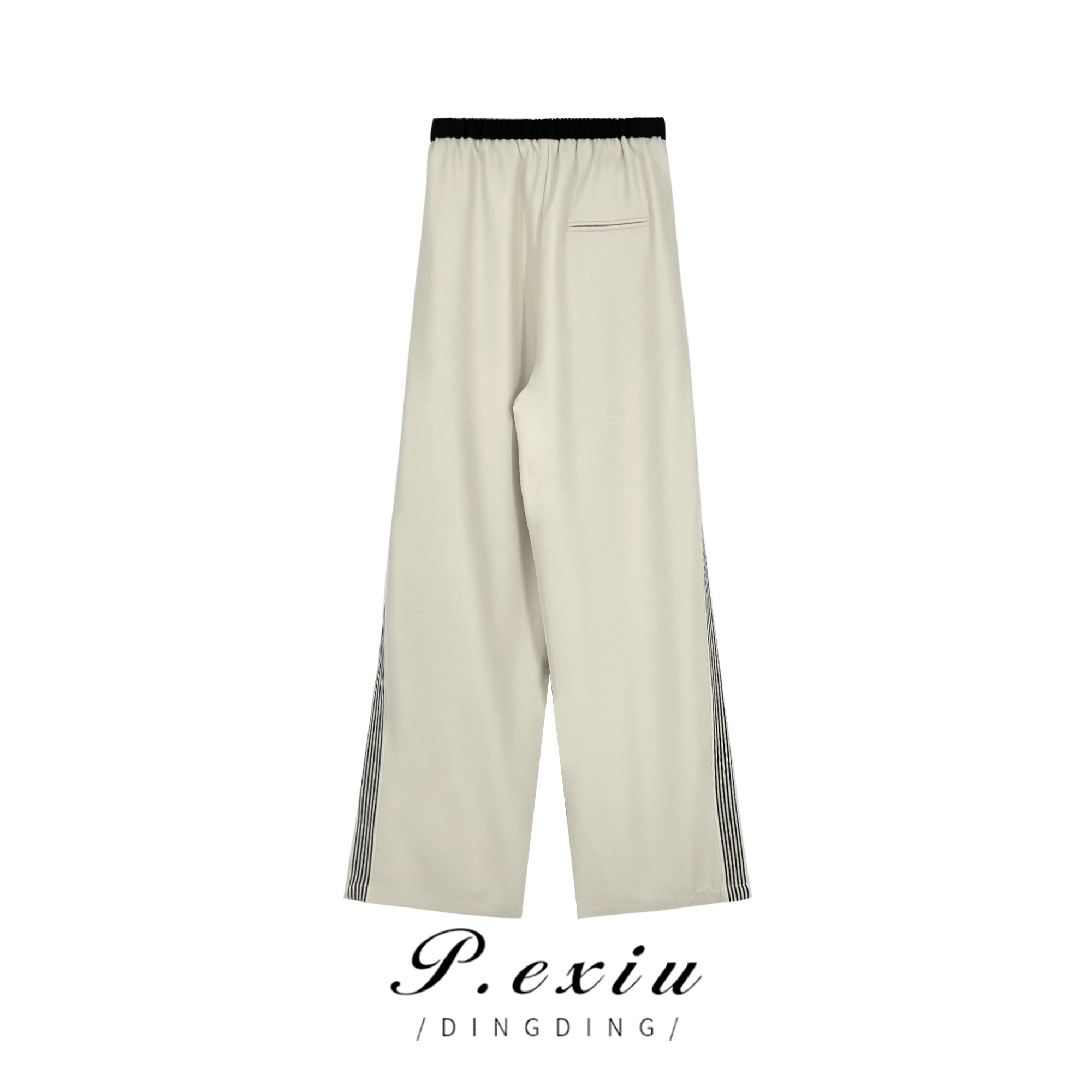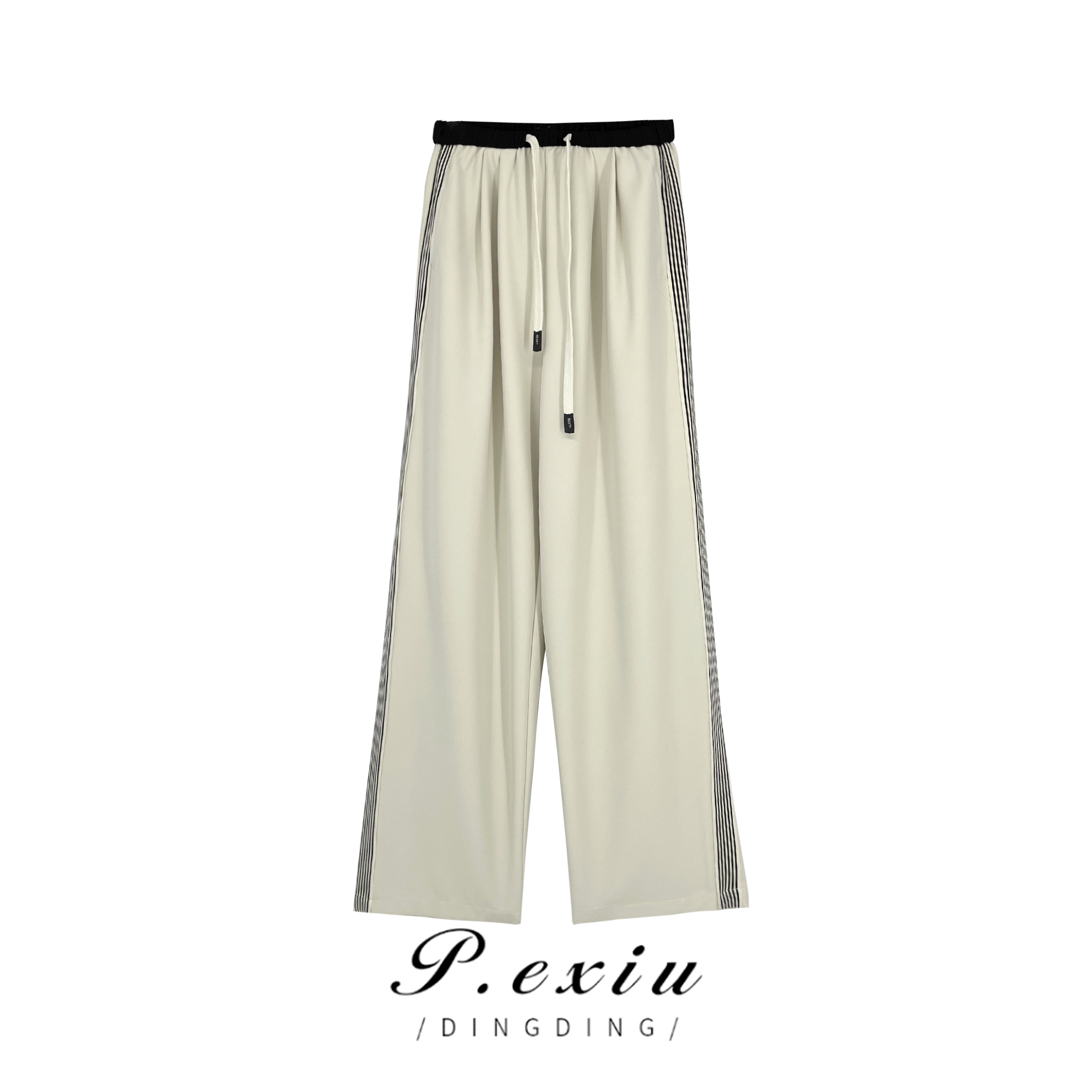04-6潘依绣丁丁宠粉撞色显瘦薄款阔腿抽绳直筒休闲裤 W-61230