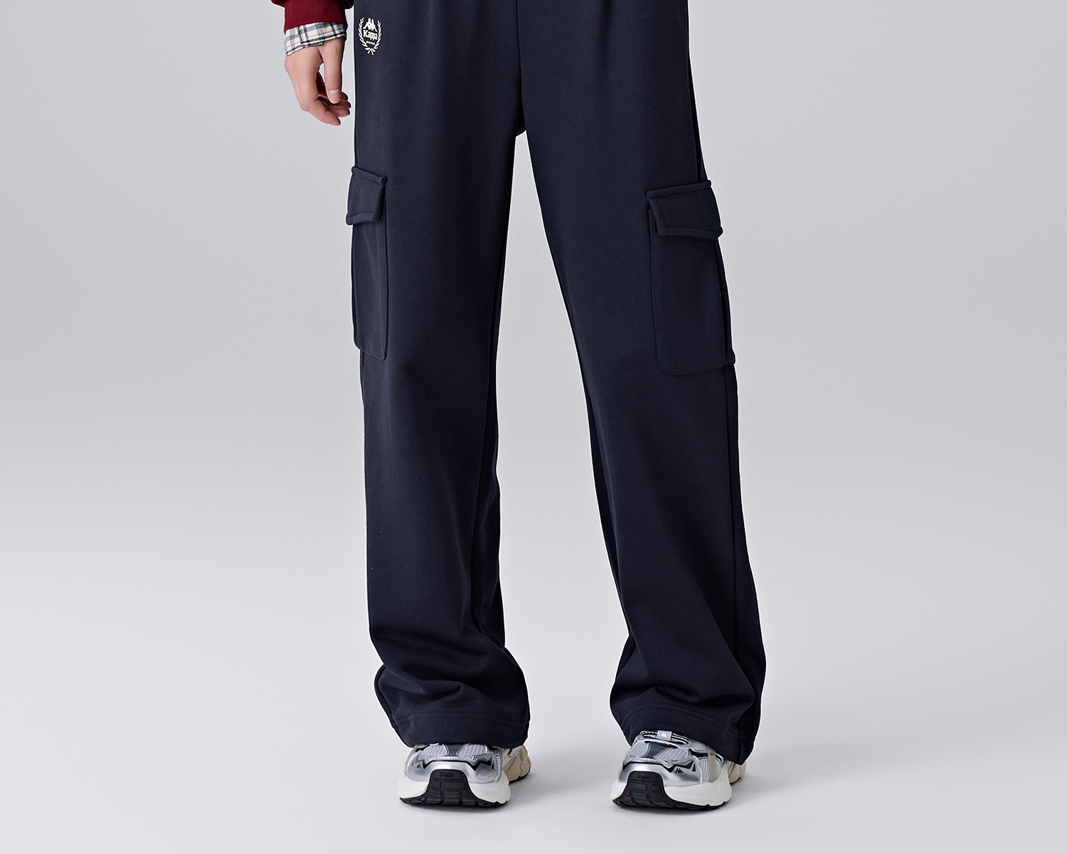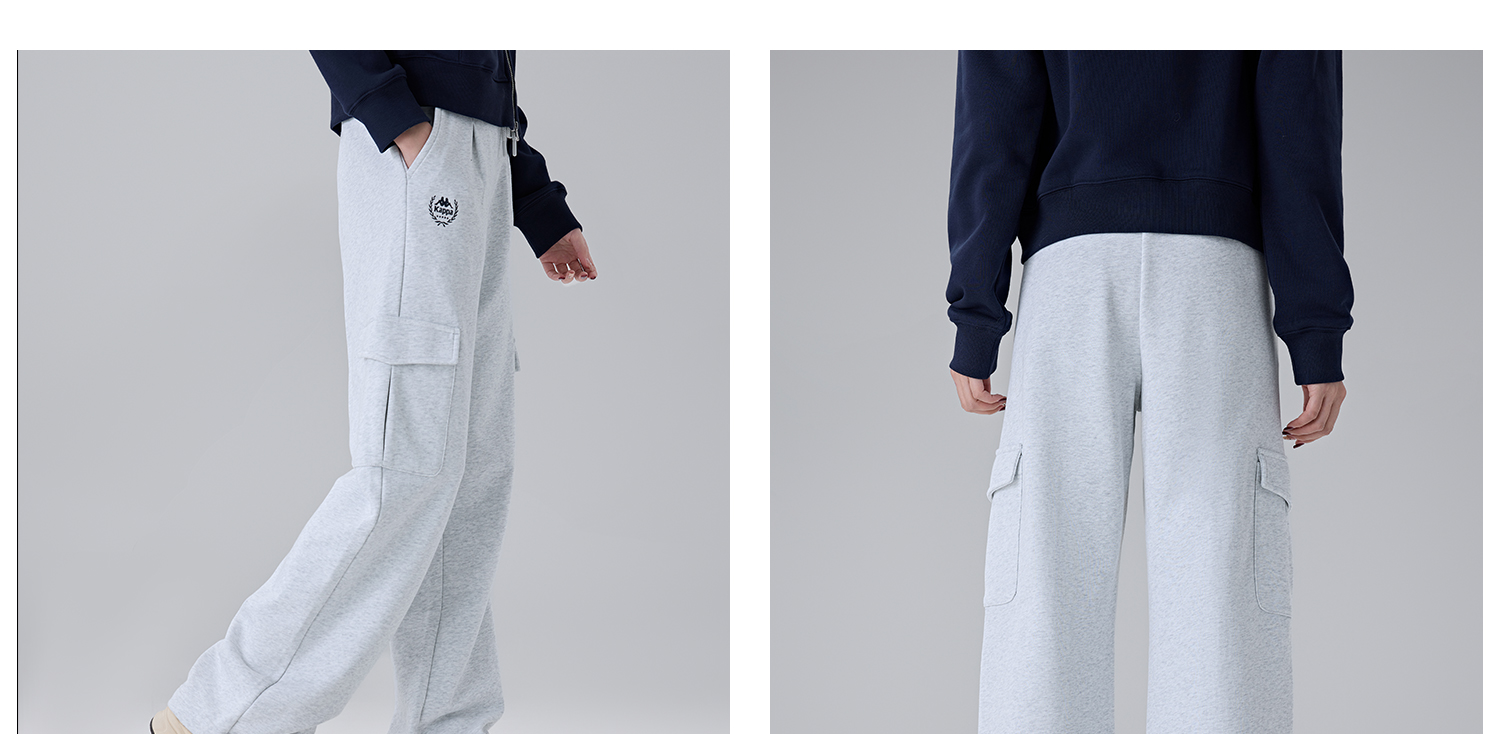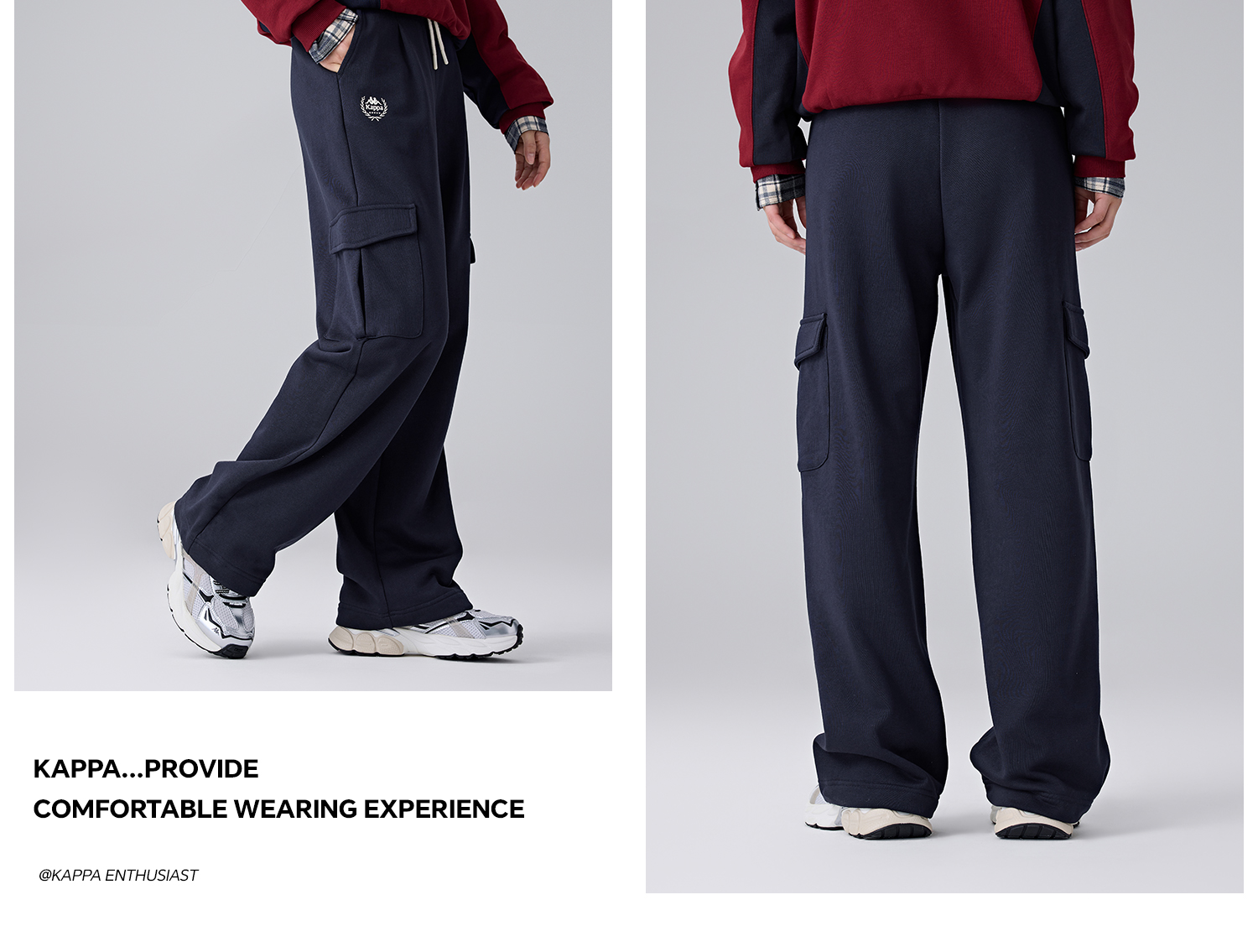 Kappa卡帕背靠背新款运动长裤弹力裤子针织休闲裤女款直筒工装裤K0F22AK04