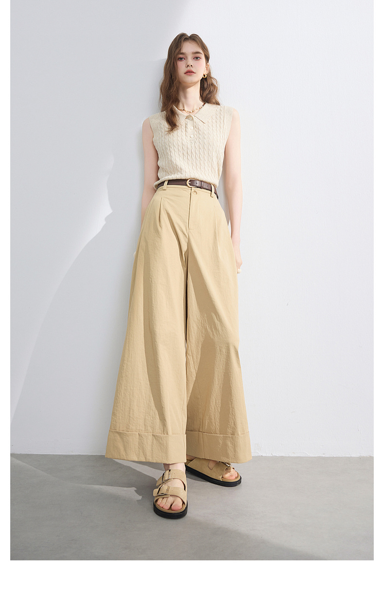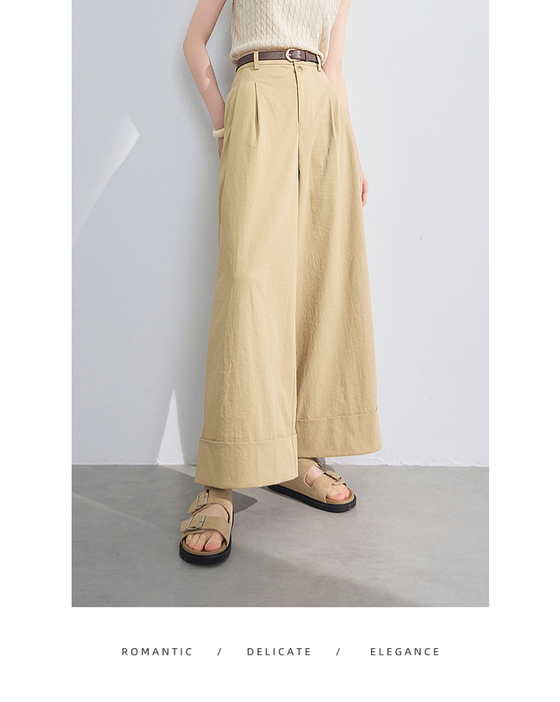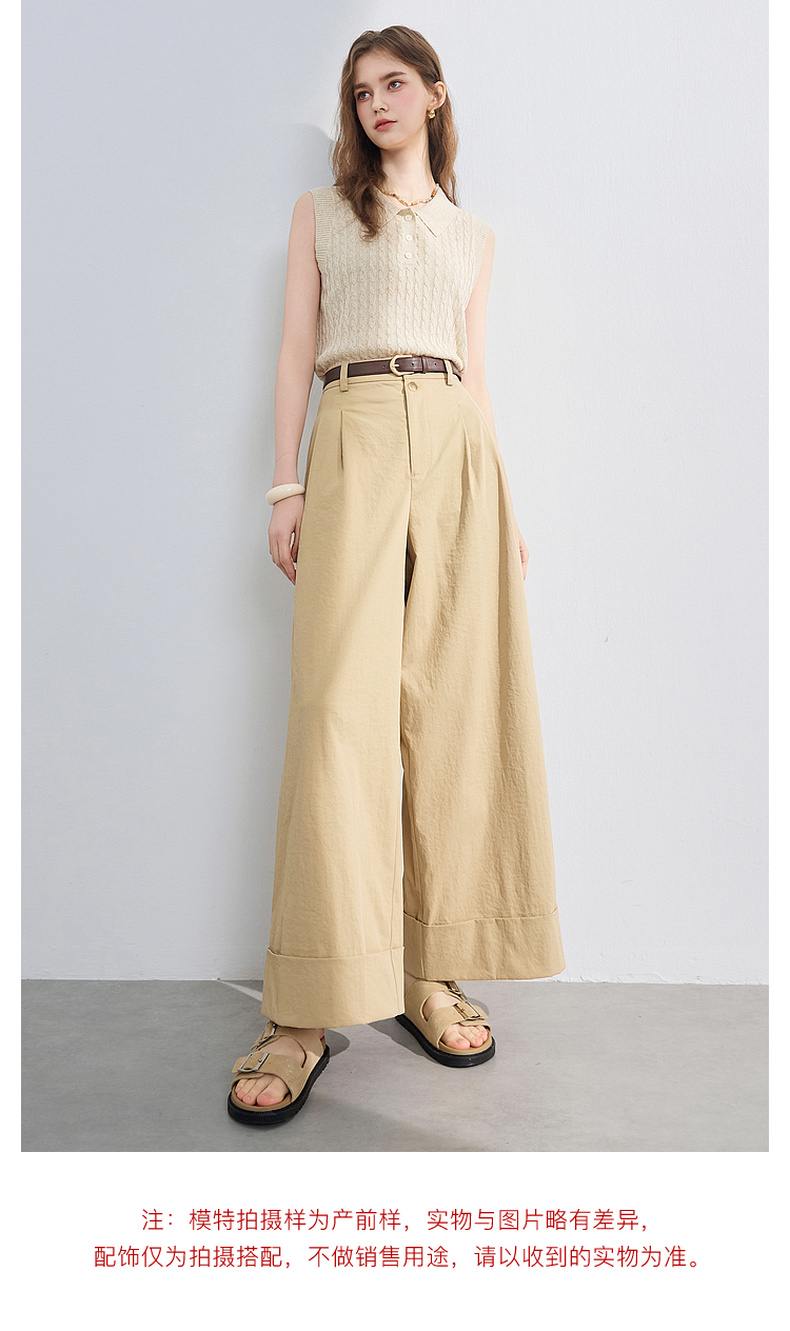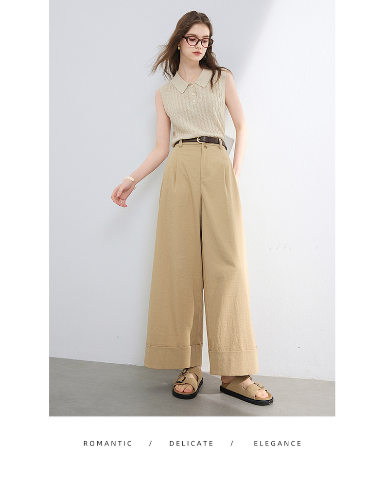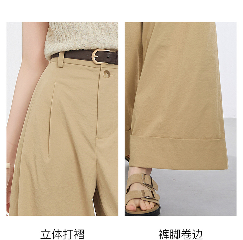 三彩2026夏季新款仿棉休闲裤高腰宽松直筒阔腿裤九分裤卷边M