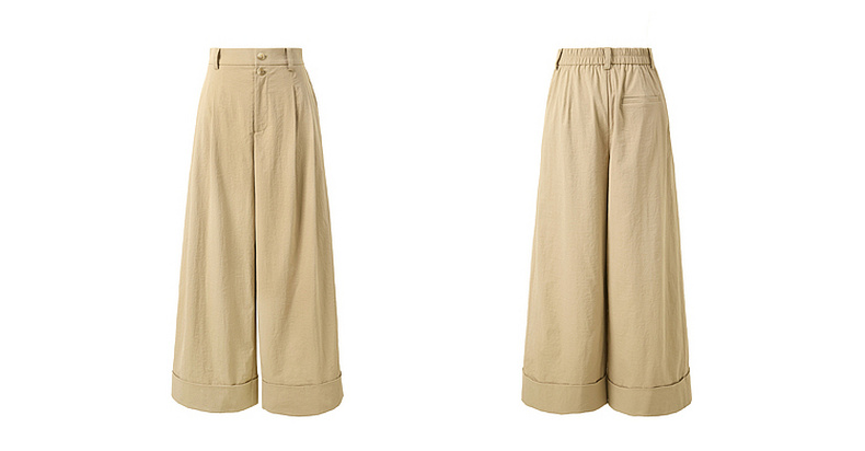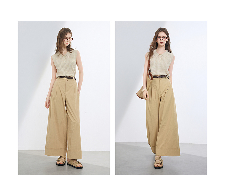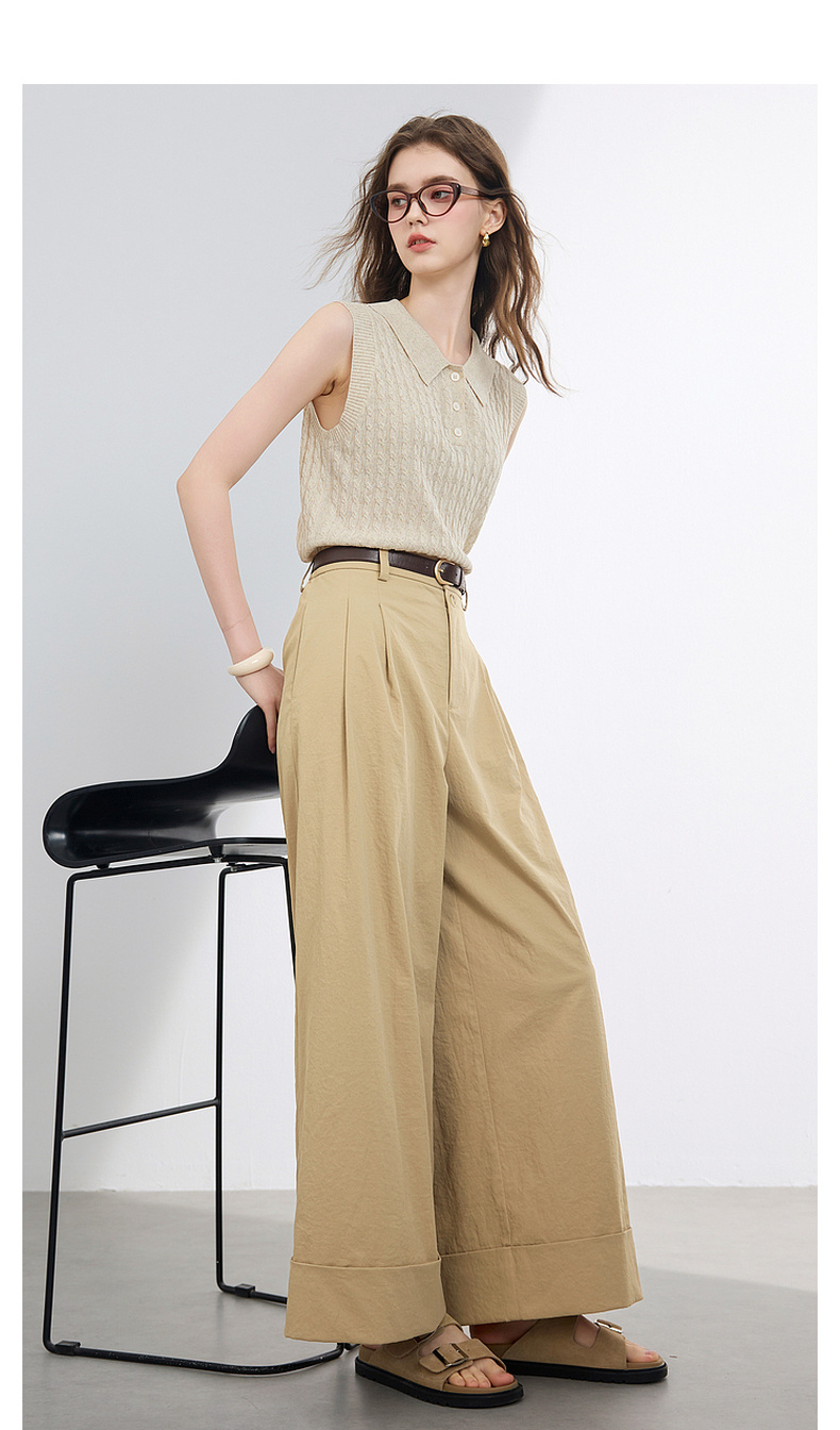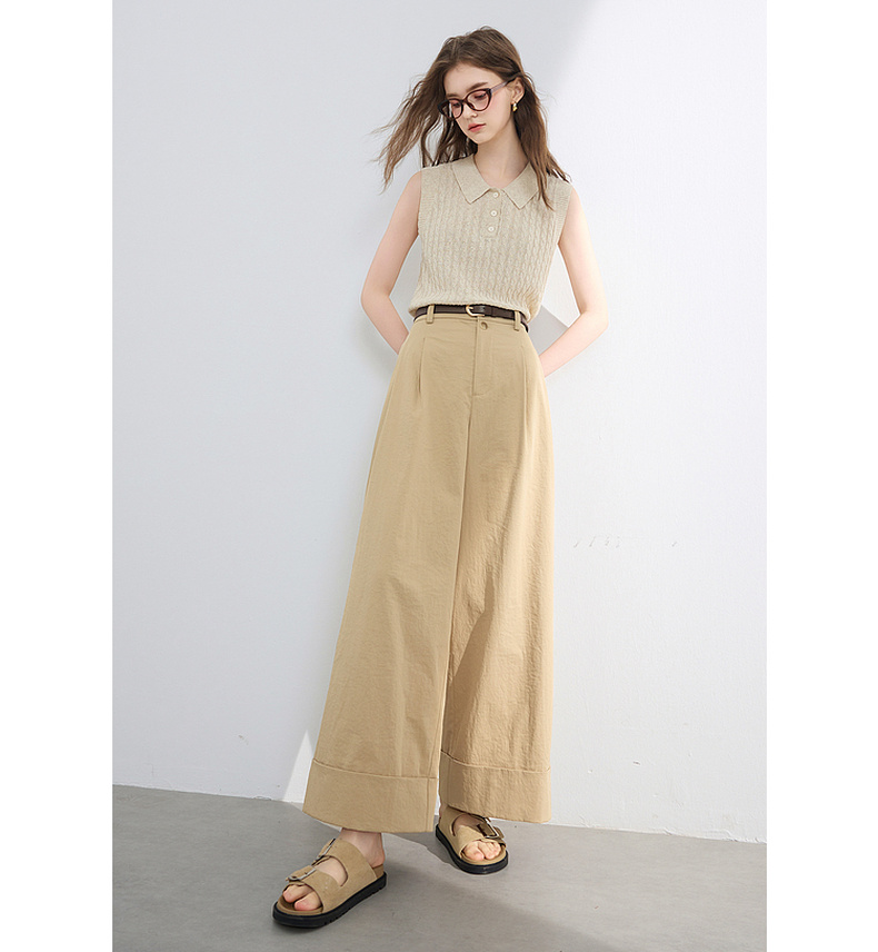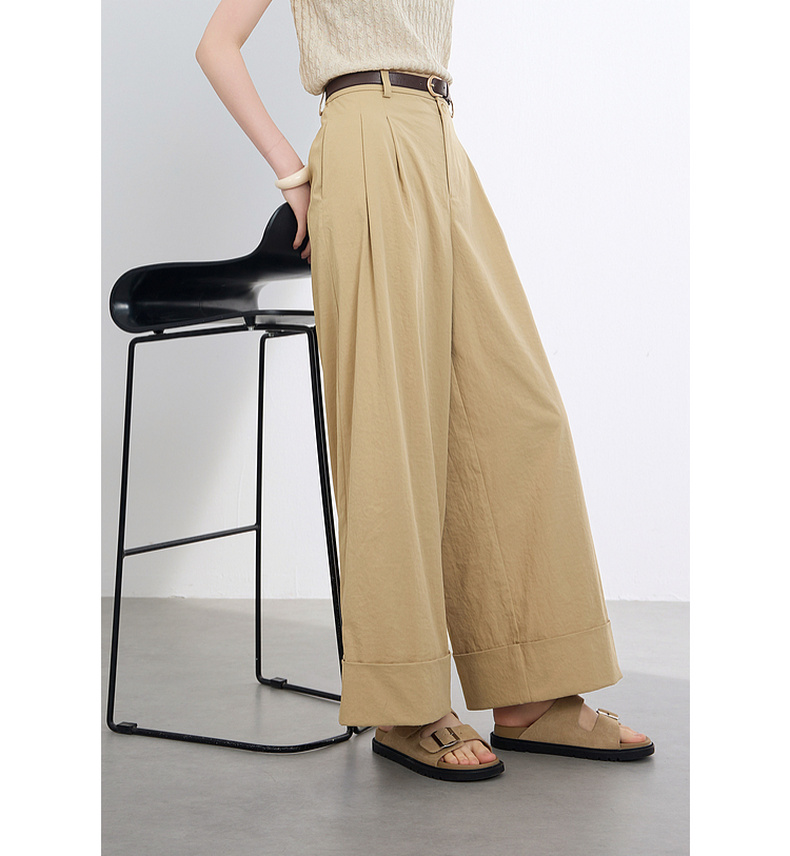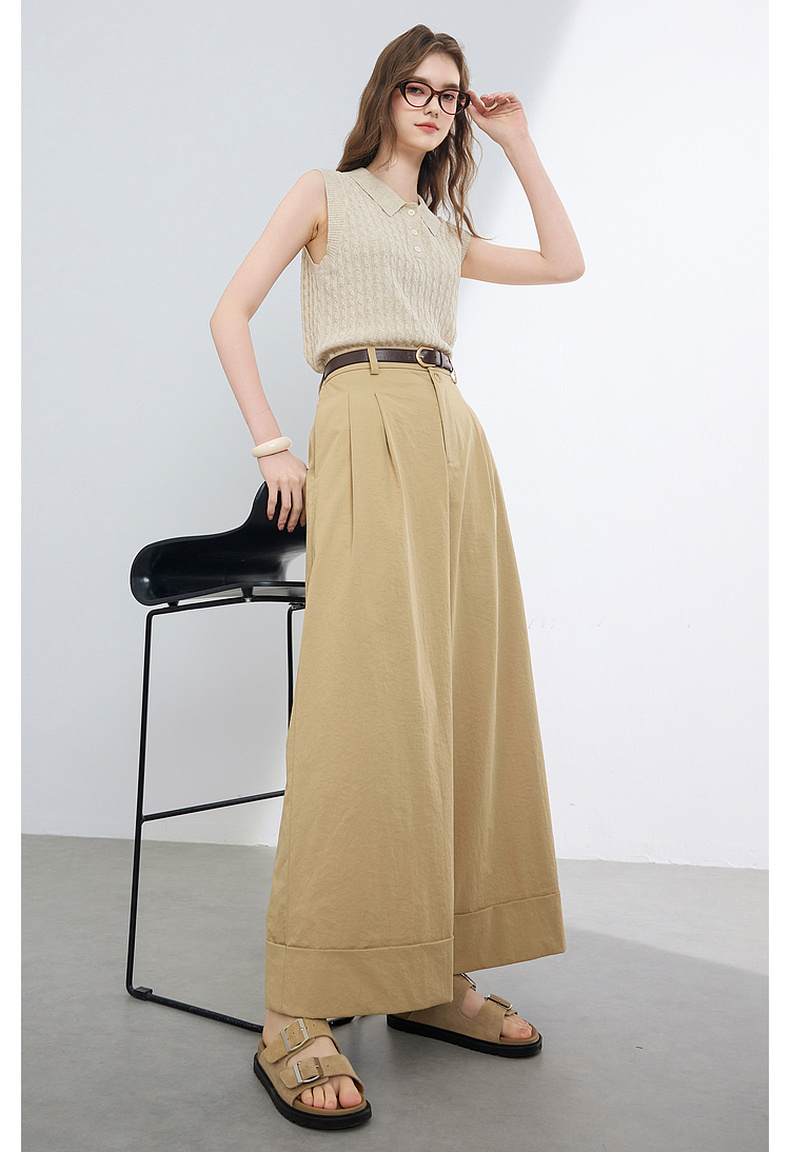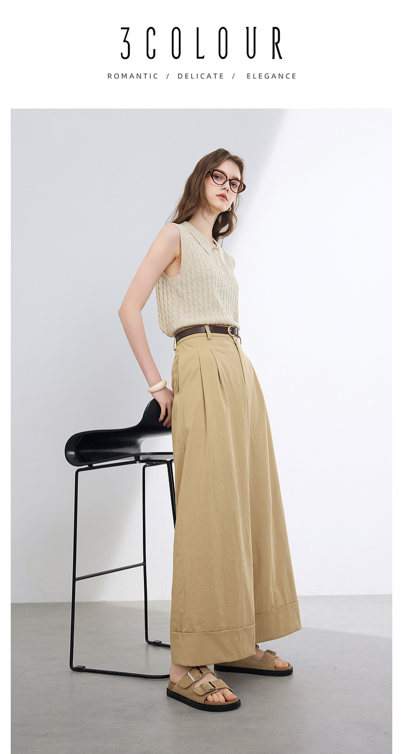三彩2026夏季新款仿棉休闲裤高腰宽松直筒阔腿裤九分裤卷边M