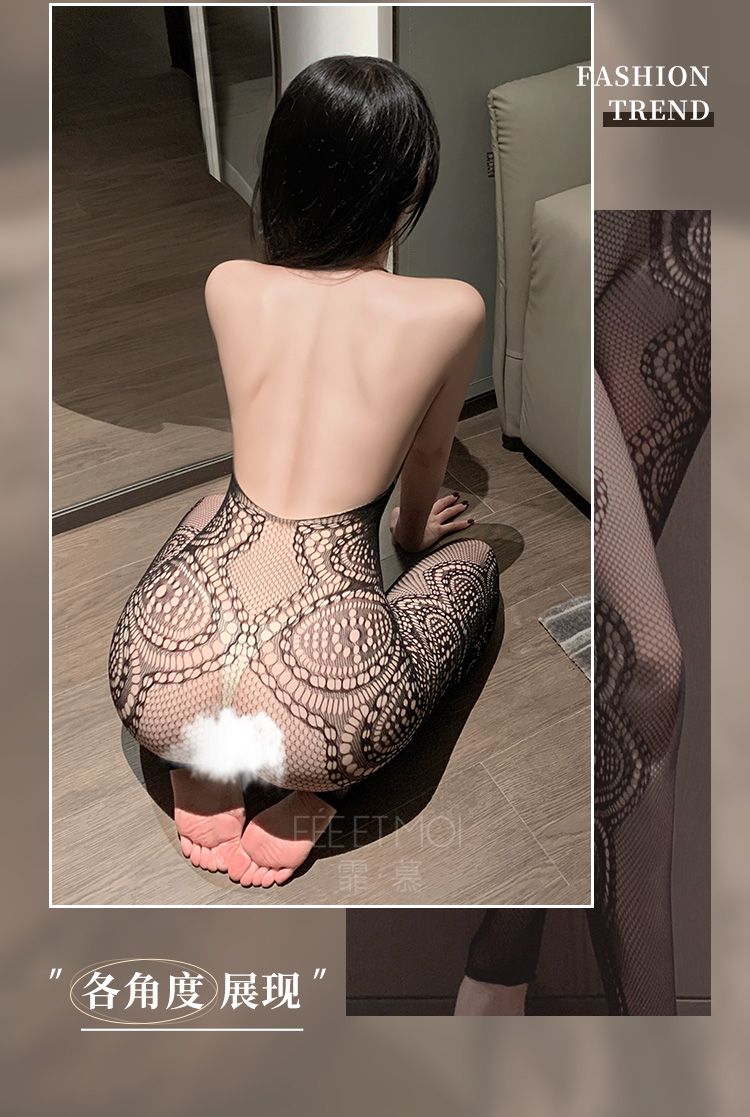 【情趣内衣】霏慕 设计感镂空提花挂脖连身袜7572