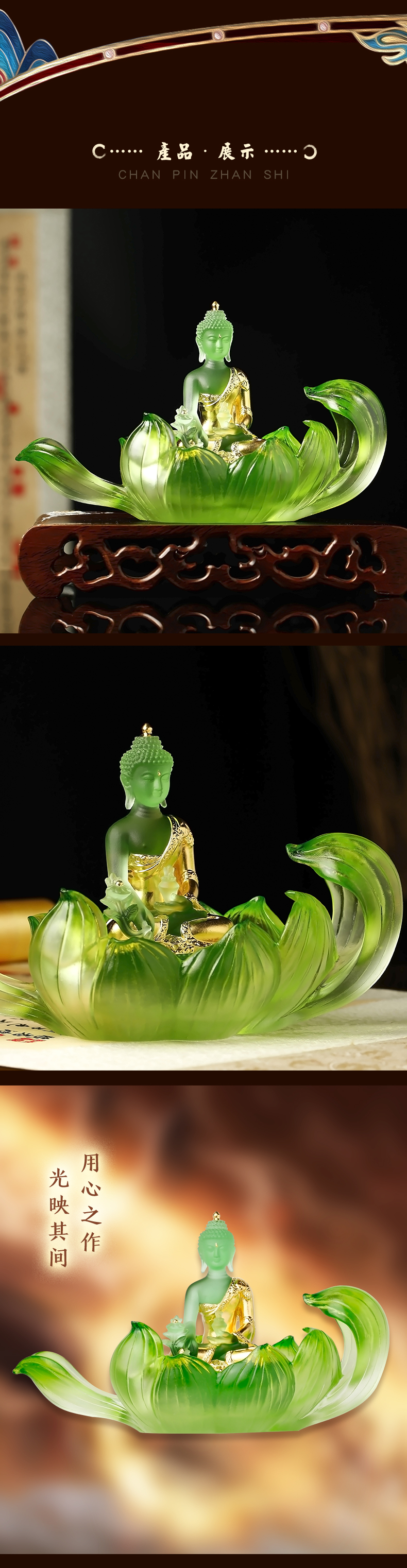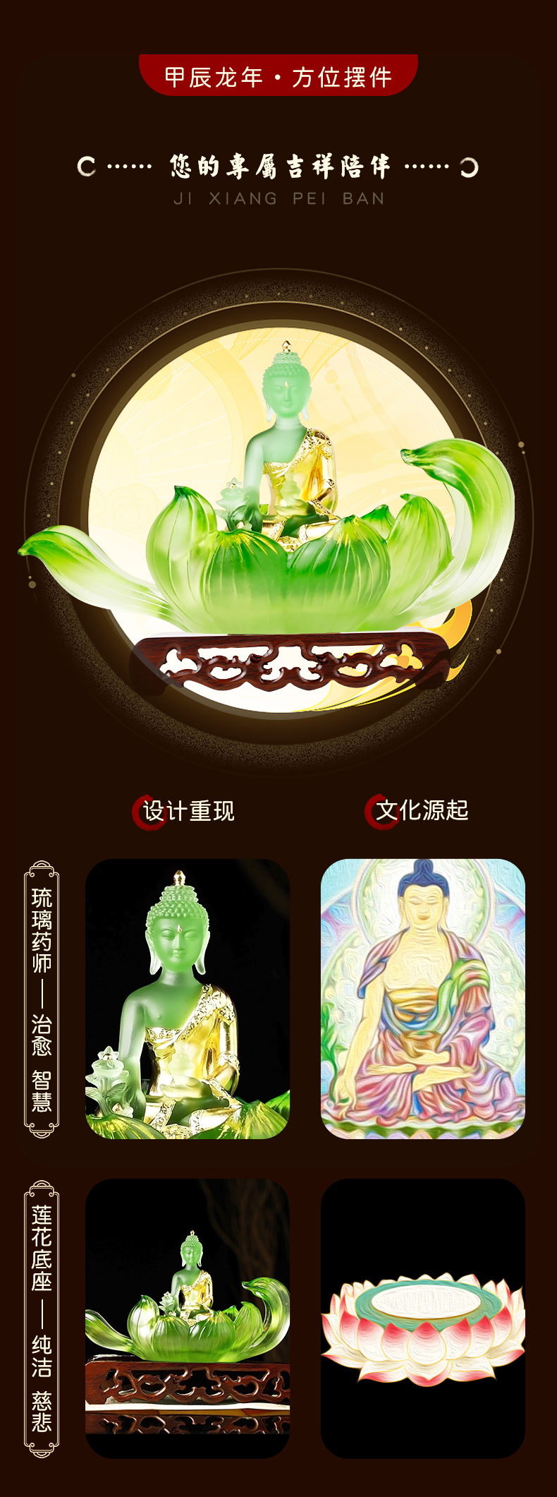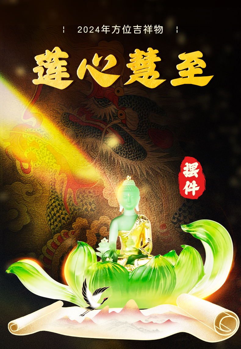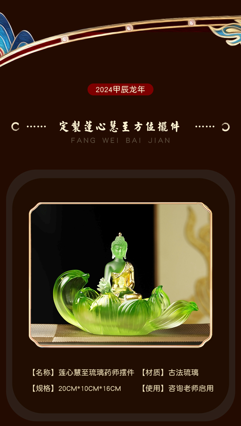 慈元阁2024年方位吉祥礼物莲心慧至琉璃摆件家居玄关客厅摆件