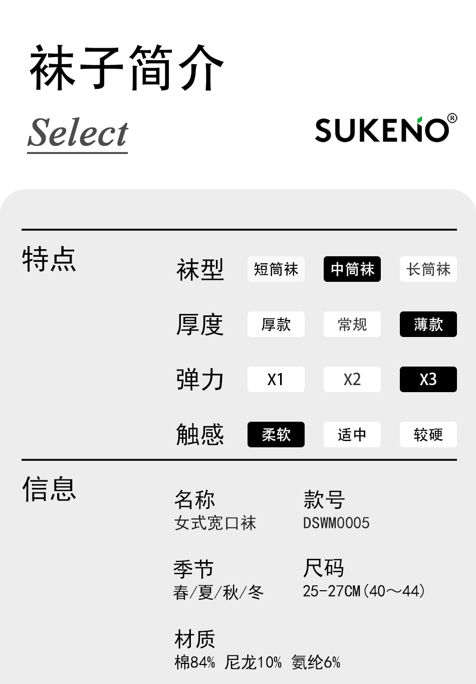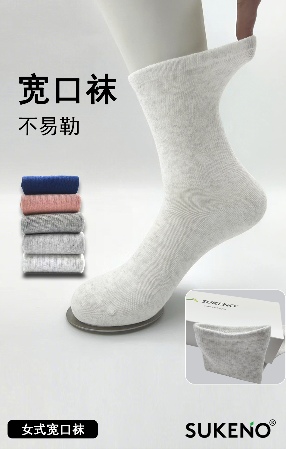 SUKENO纯棉无骨袜宽口不勒腿松口袜纯色百搭女袜