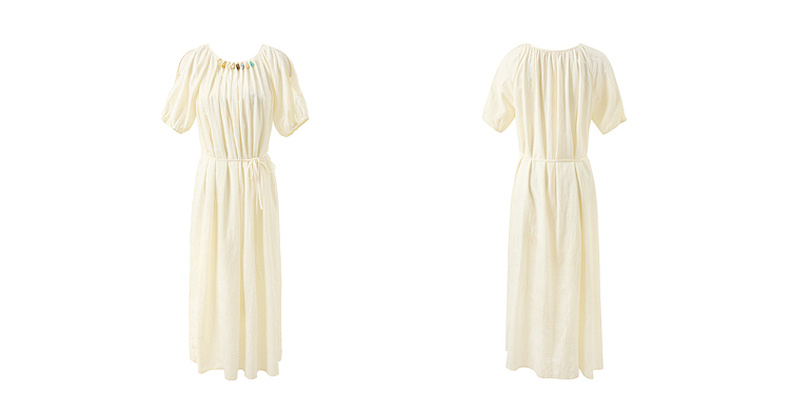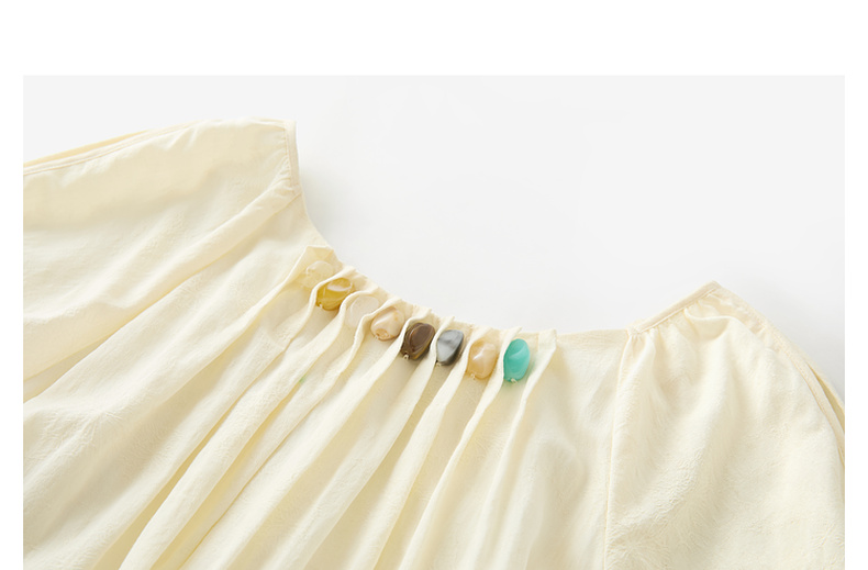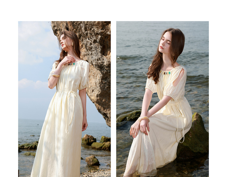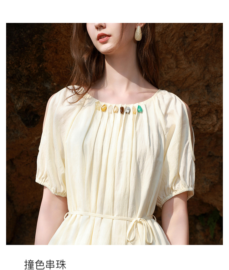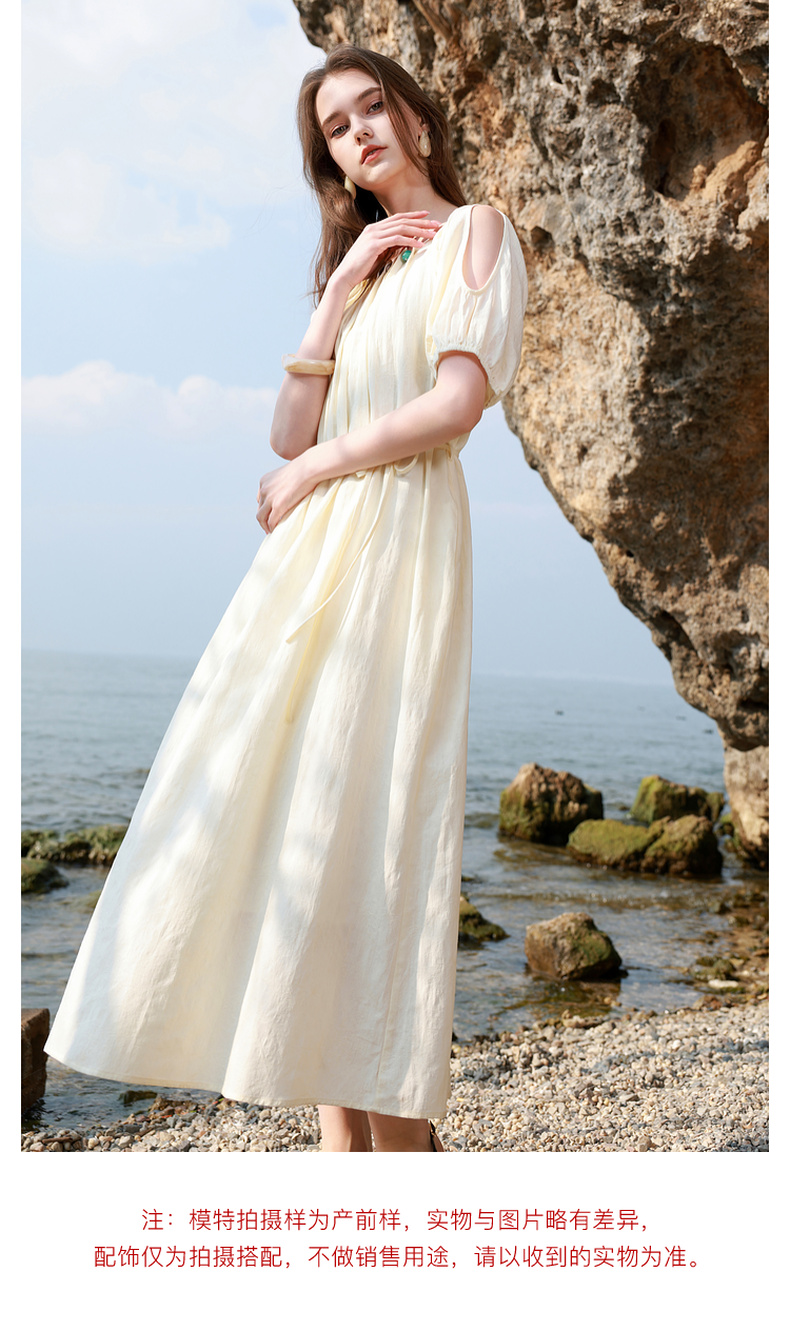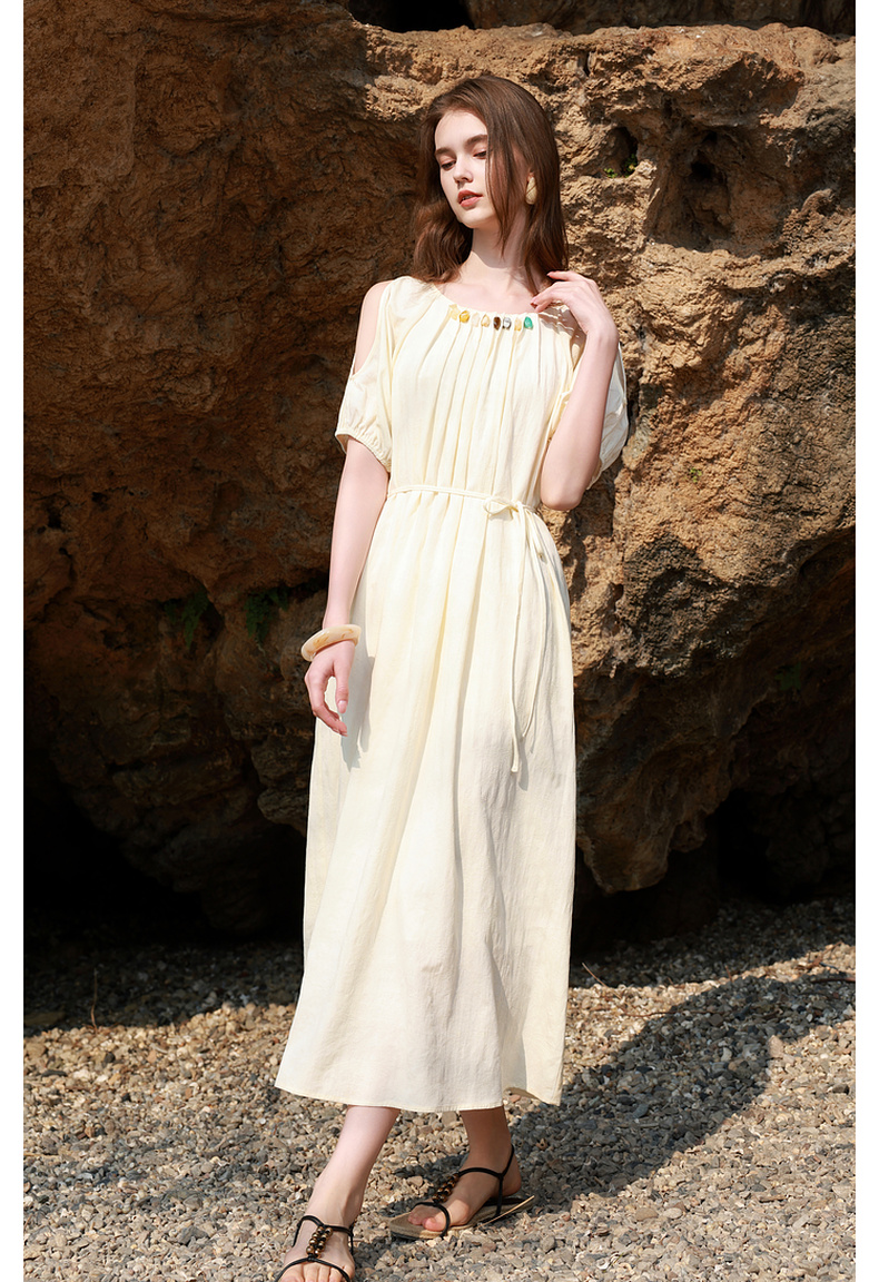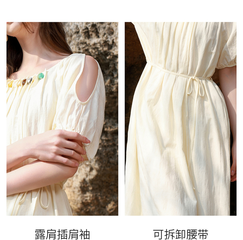 三彩2025夏季新款提花连衣裙露肩插肩袖宽松A字裙长裙设计感M