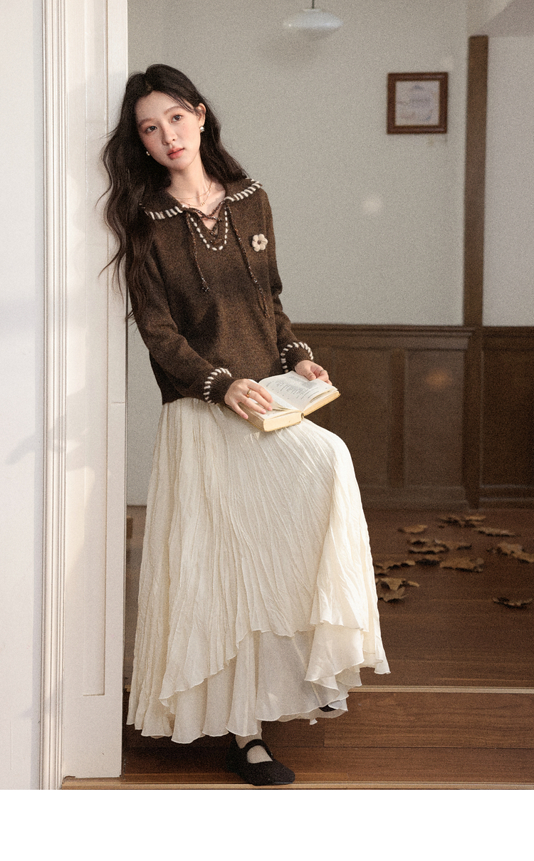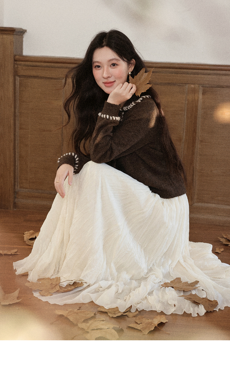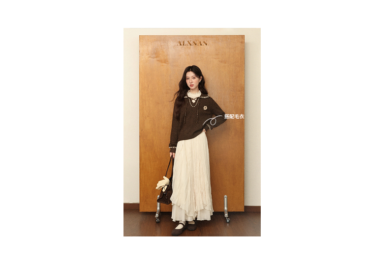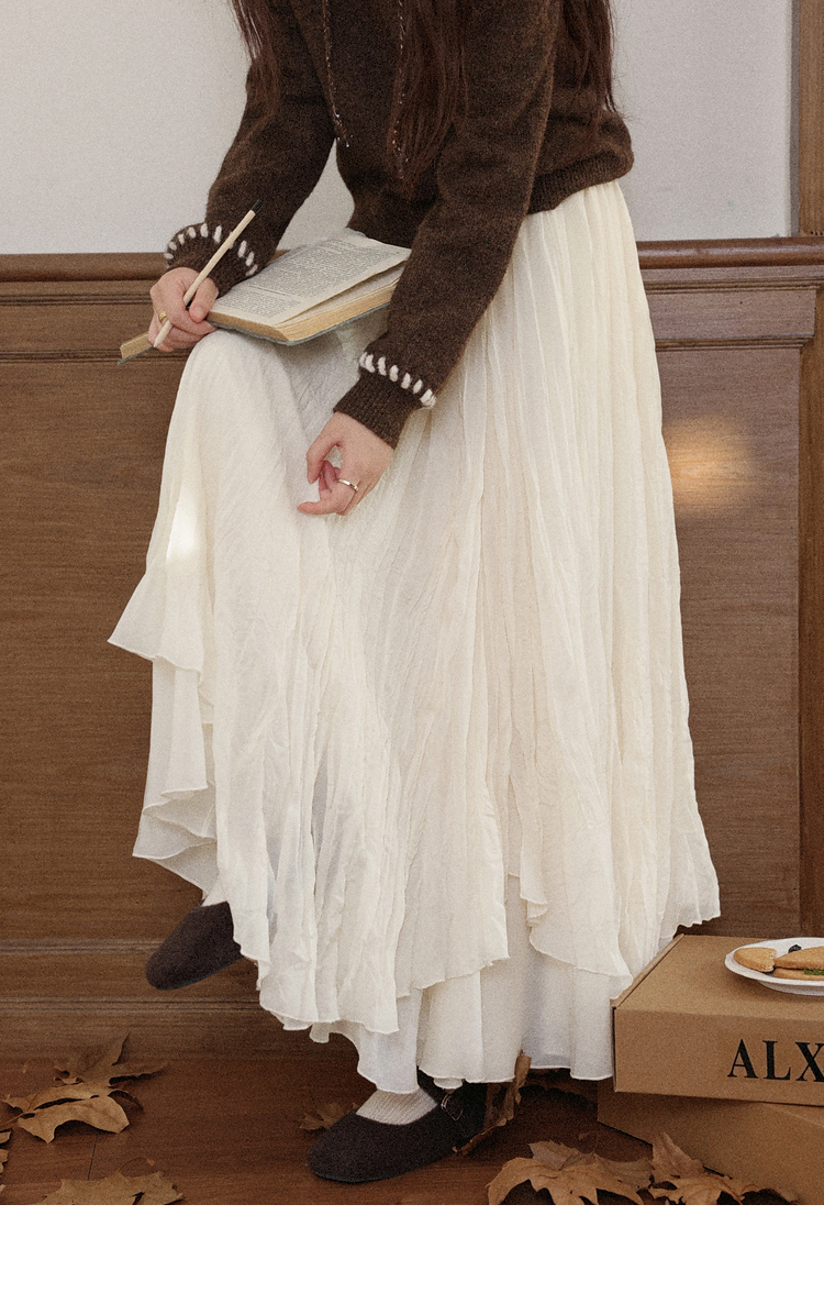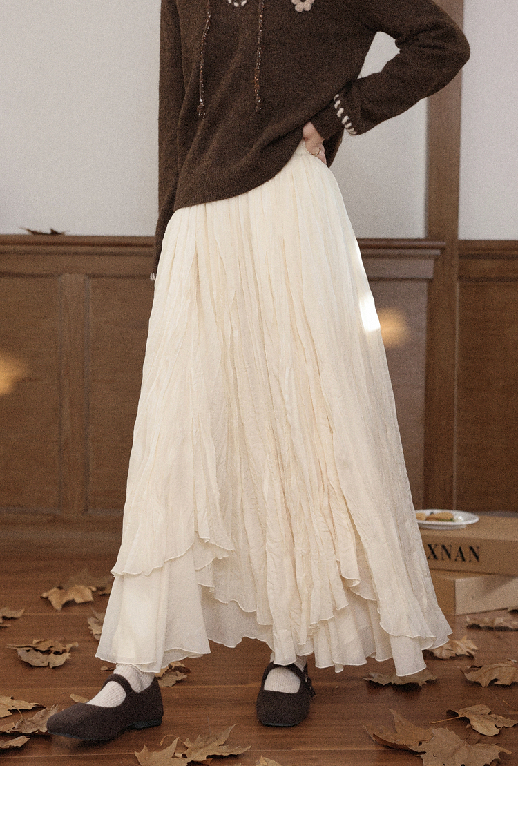 鹿向南「午后裙摆」设计感杏色褶皱半身裙女初秋宽松显瘦A字长裙