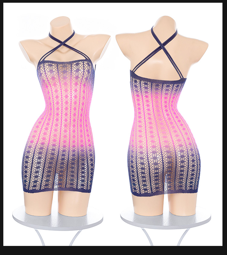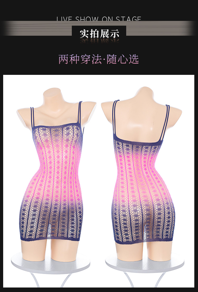 【情趣内衣】霏慕 渐变色提花镂空包臀连身网衣7557