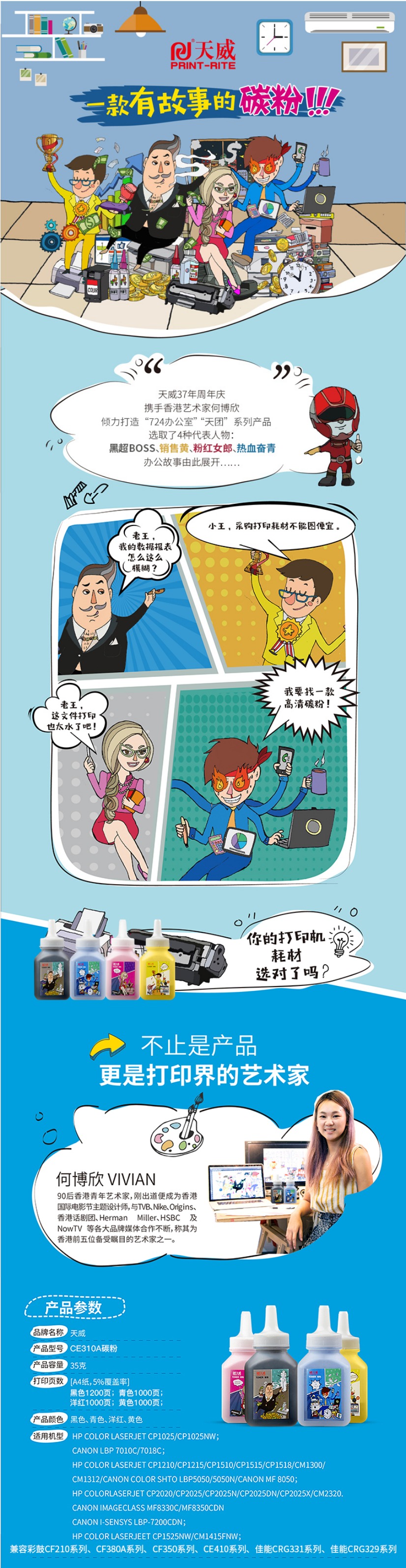 天威 CE310系列四色碳粉 适用hp CP1025碳粉 惠普hp1525 CP1215 2025 打印机墨粉 彩色四色