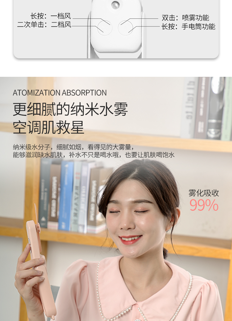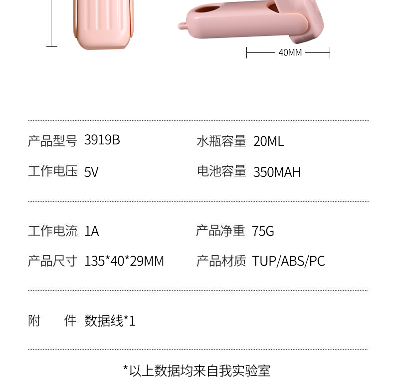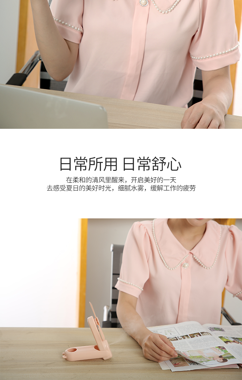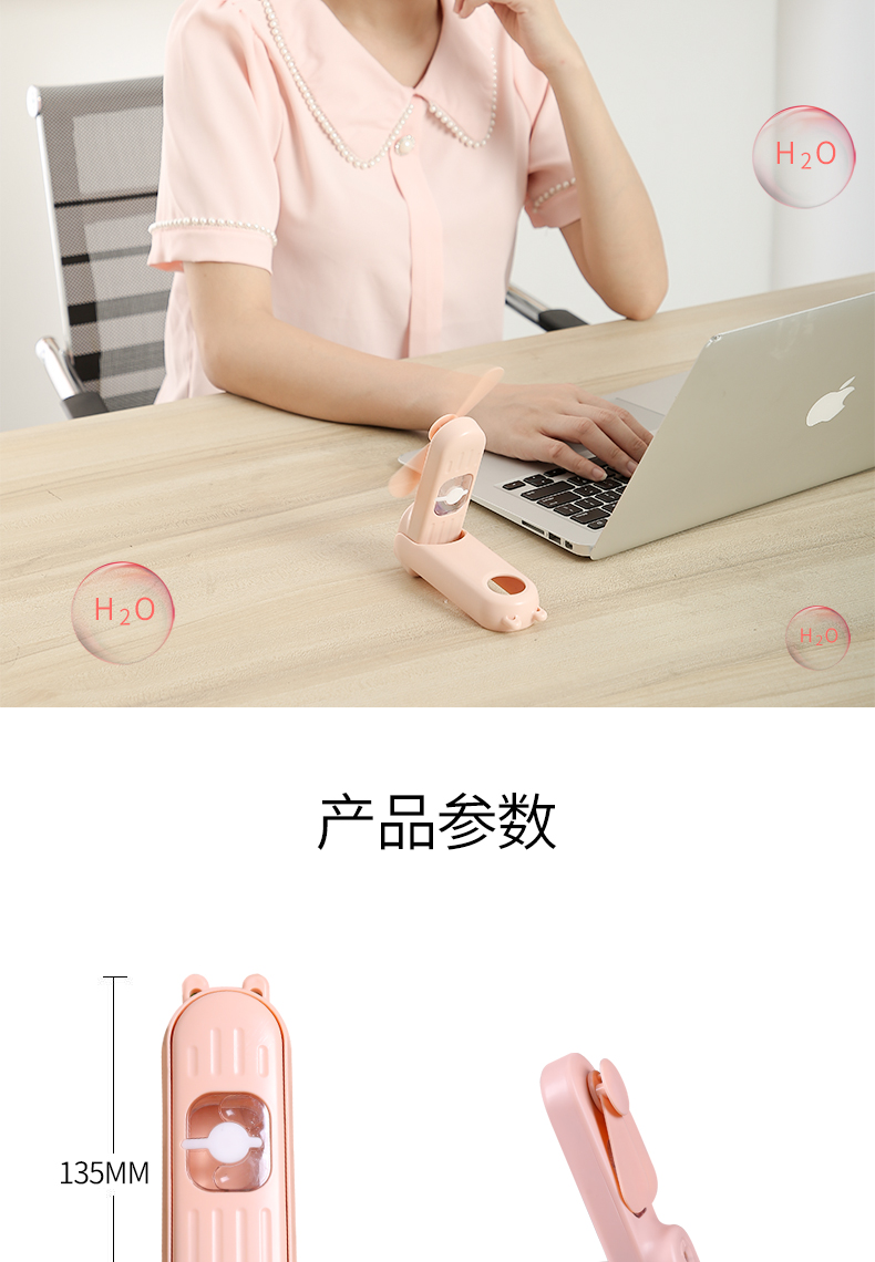 白小贝折叠式补水仪小风扇L2012学生usb手持迷你加湿小风扇