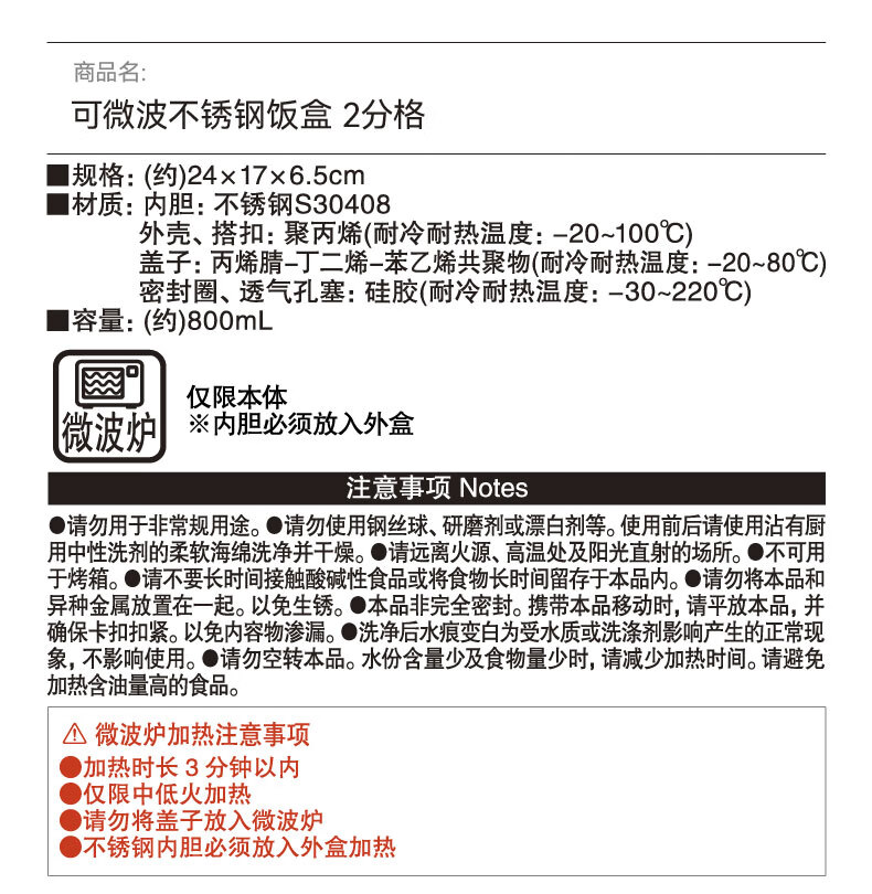 NITORI宜得利家居 上班族带饭盒野餐便携餐盒加热可微波不锈钢饭盒