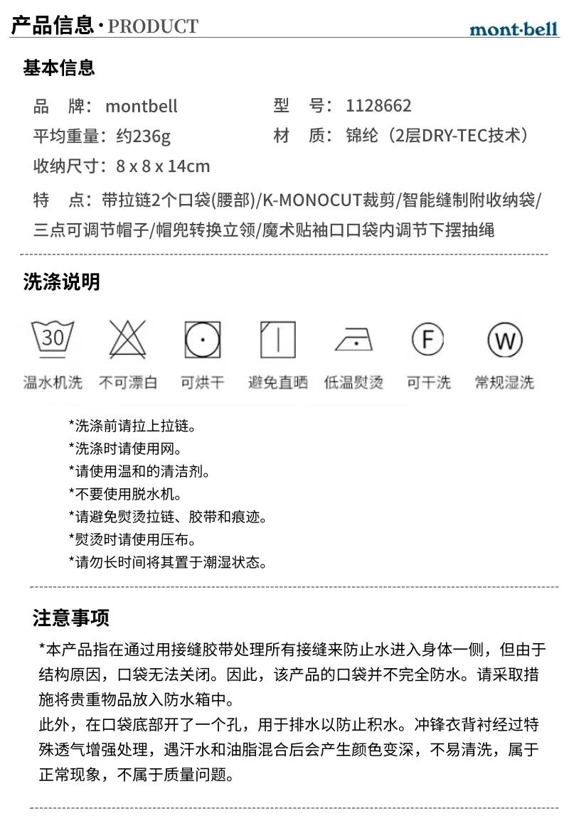 【爆款女款冲锋衣】Montbell户外爬山防水防风冲锋衣欧若风外套