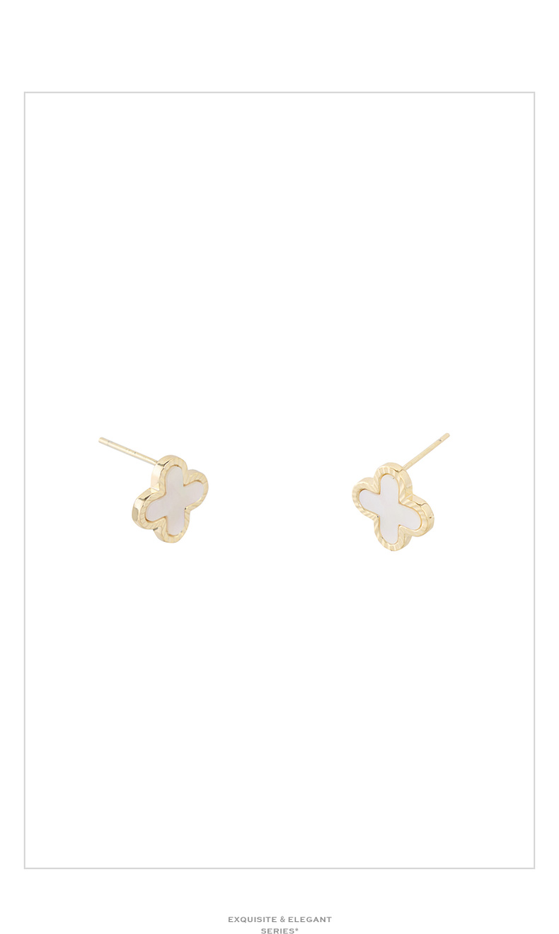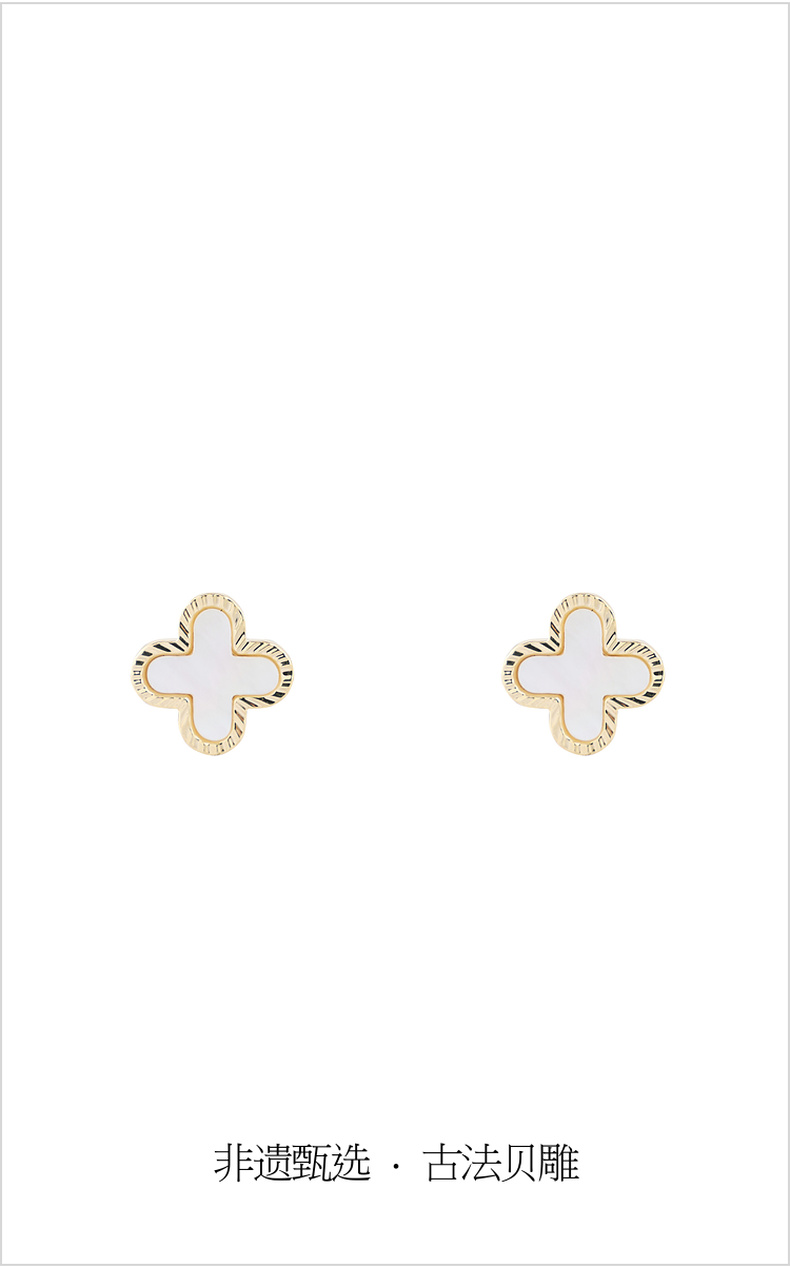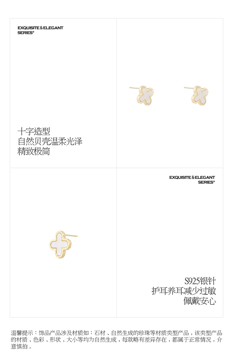 三彩2026新款轻奢十字贝壳耳钉s925银针法式优雅极简通勤撞色