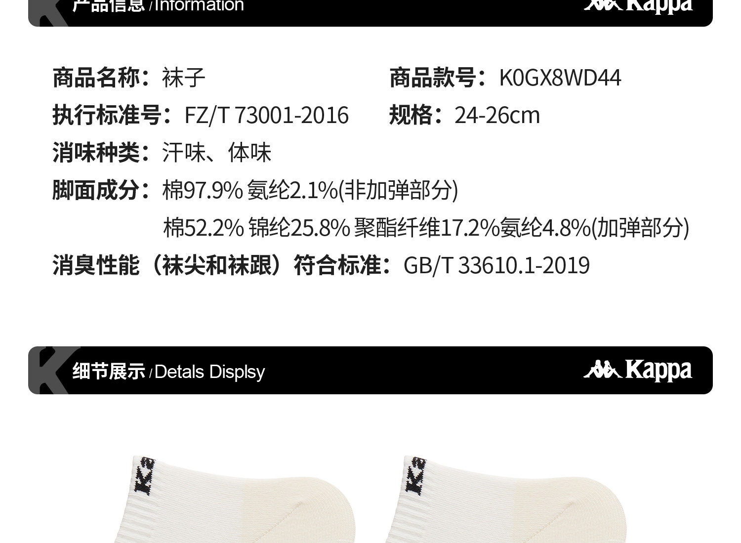 Kappa 卡帕背靠背2026新款男女通用运动透气短袜低腰舒适吸汗袜子K0GX8WD44