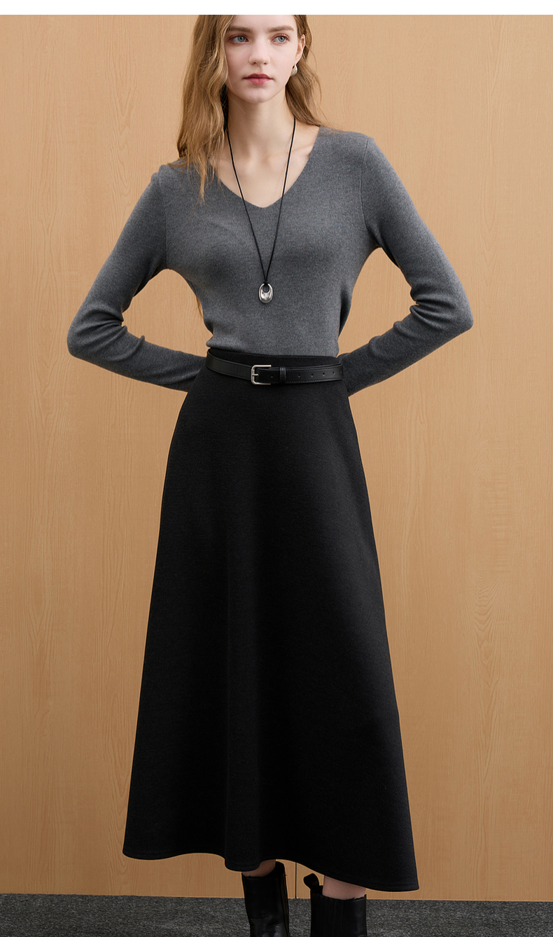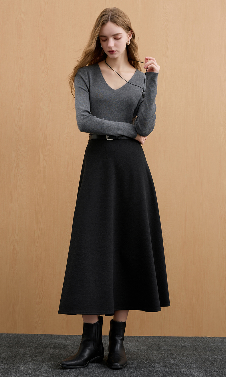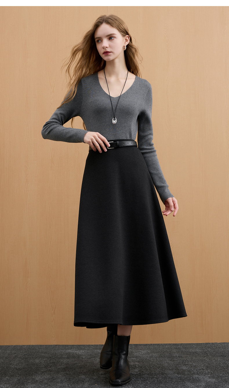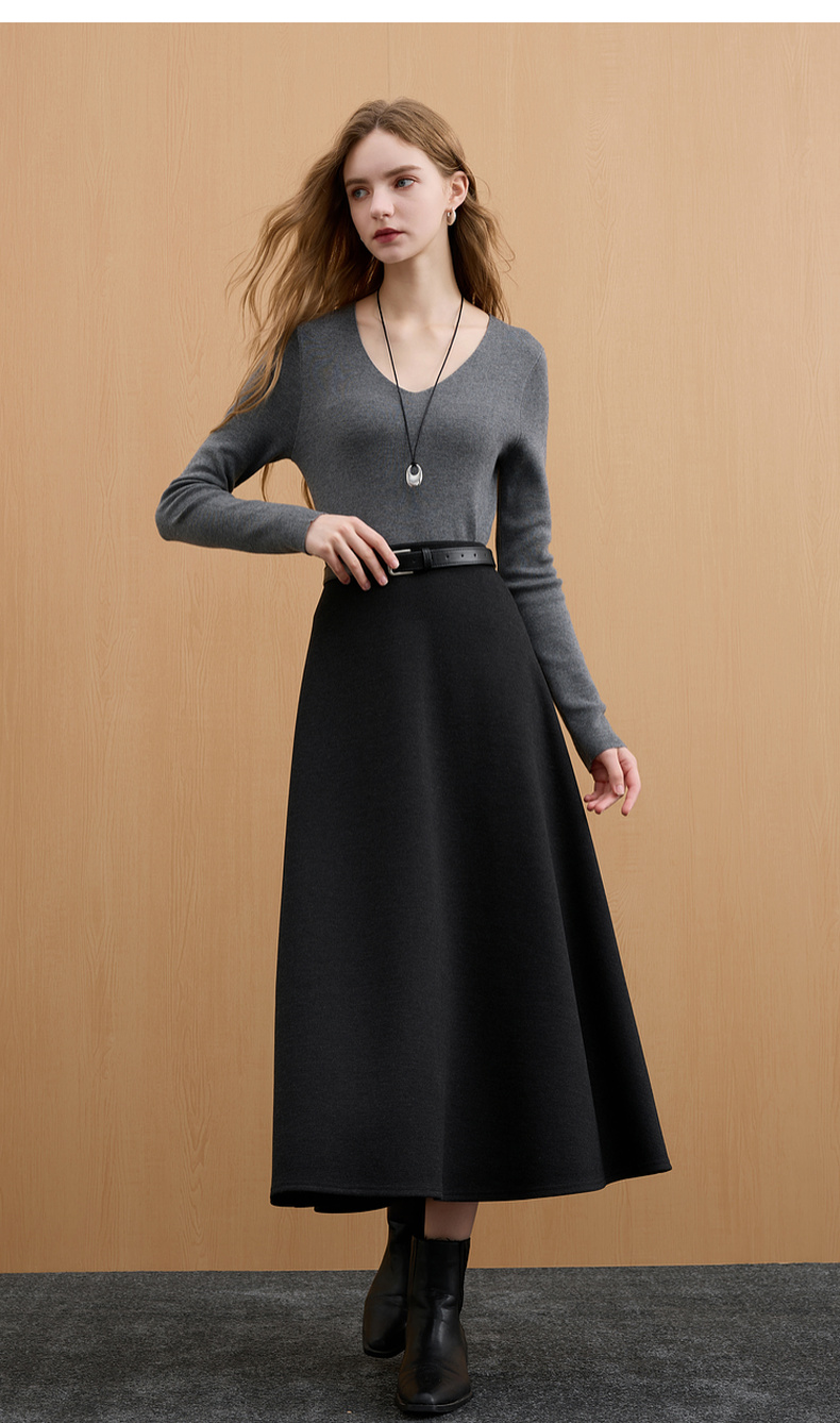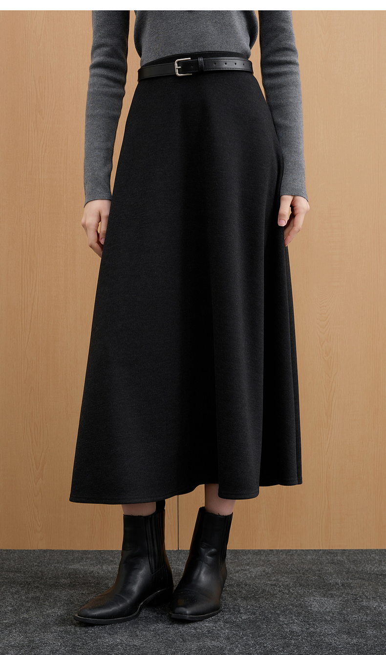 三彩2025冬季新款简约松紧高腰半身裙气质通勤A字裙长裙大摆M