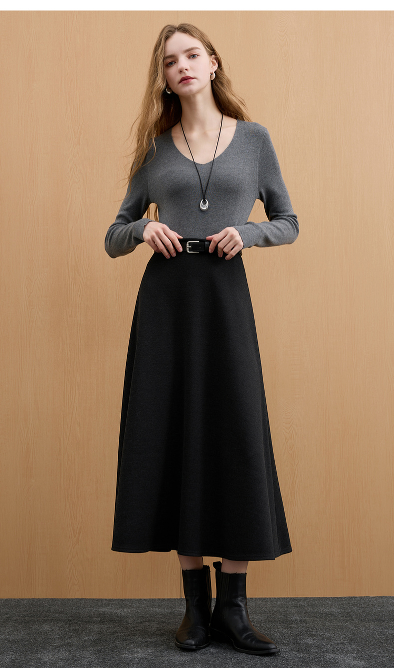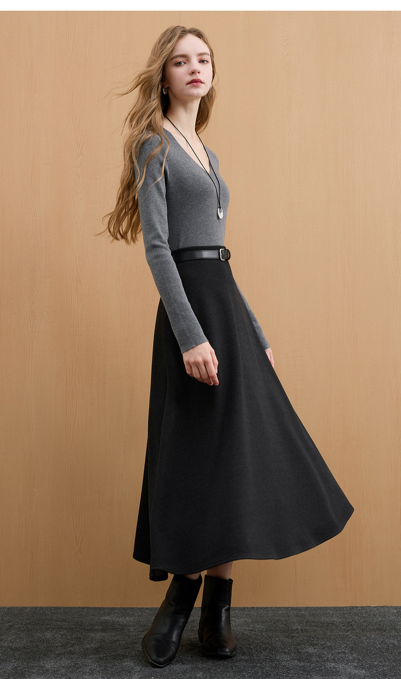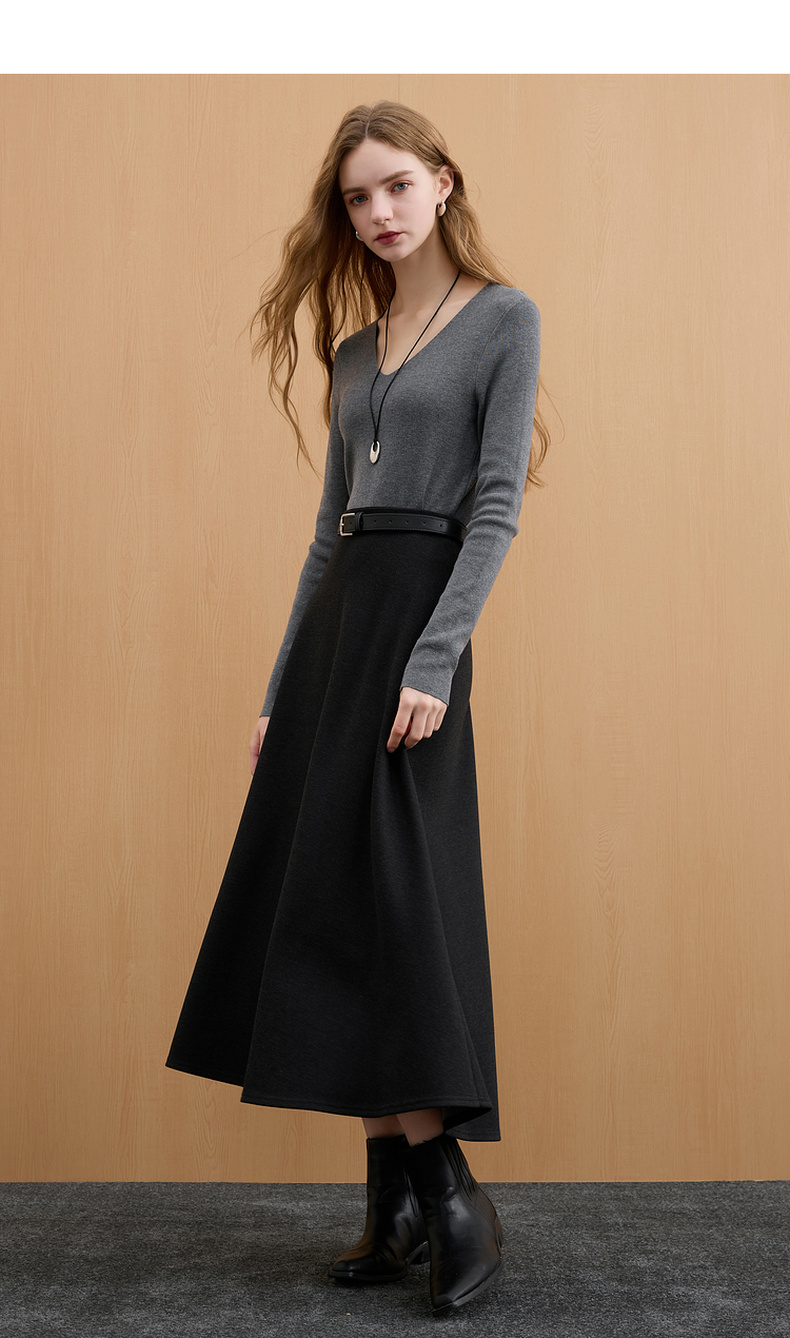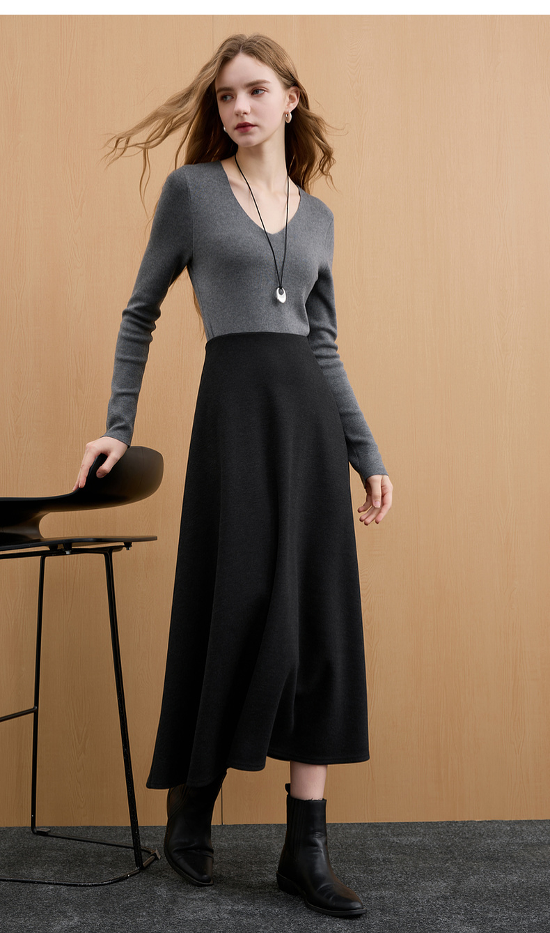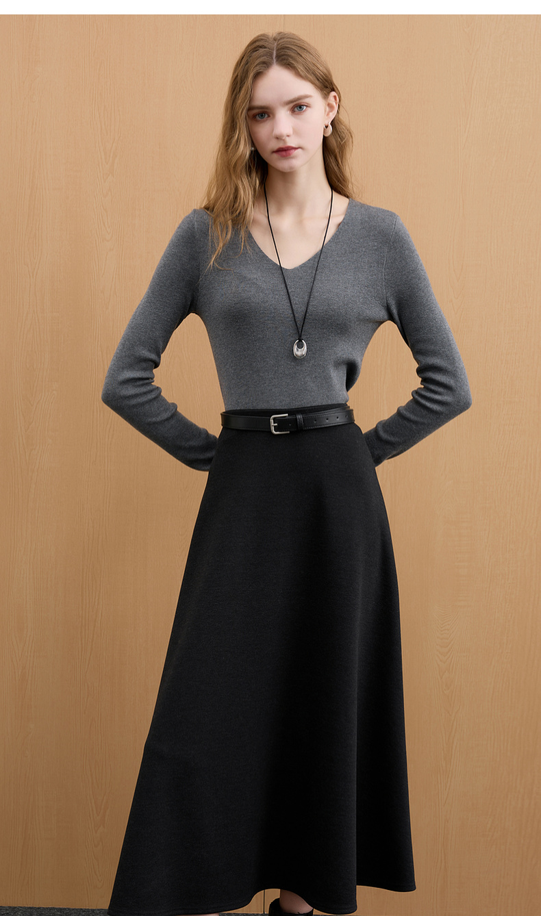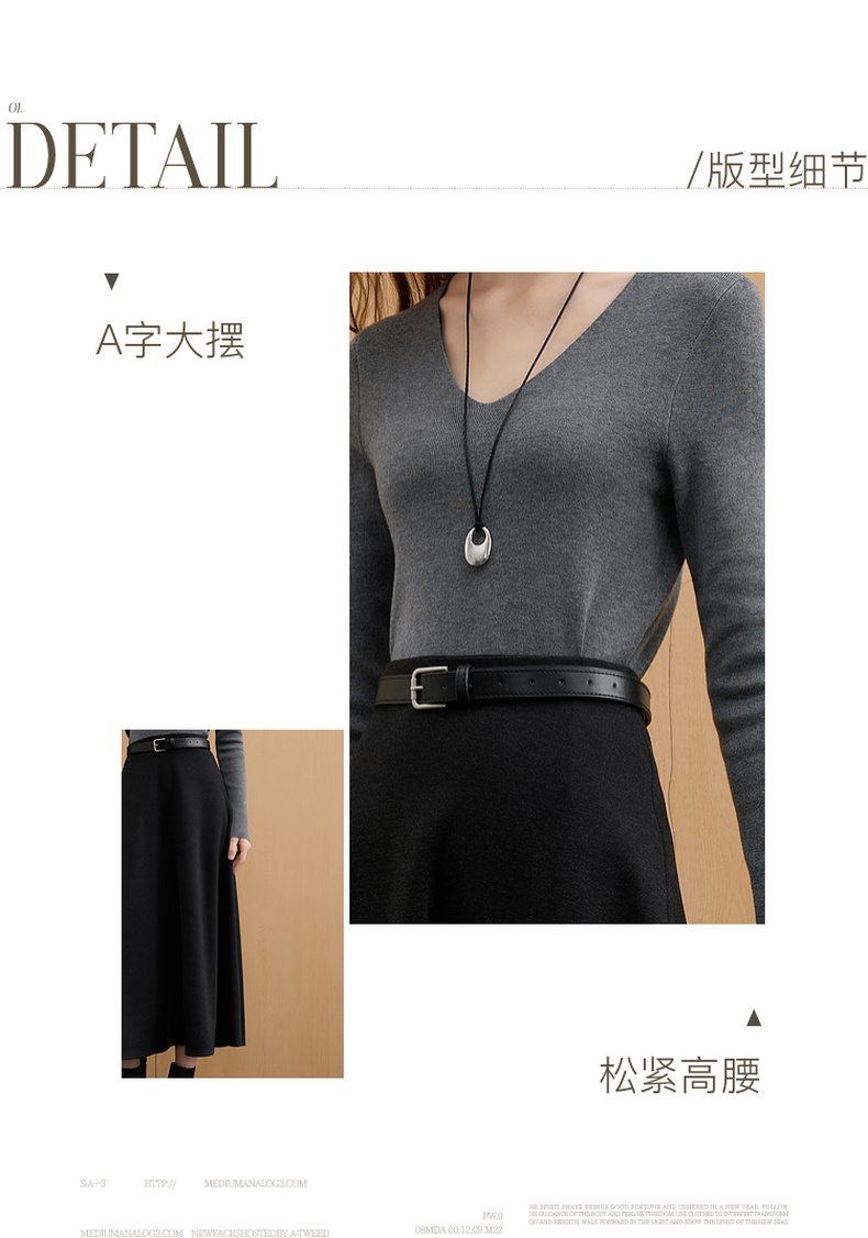 三彩2025冬季新款简约松紧高腰半身裙气质通勤A字裙长裙大摆M
