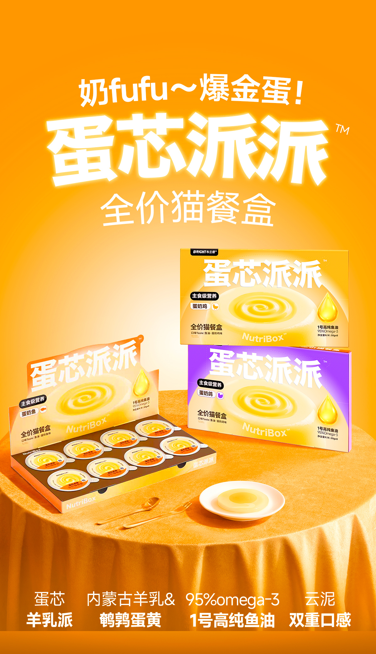 蛋芯派派高纯鱼油羊奶全价主食猫餐盒400g/盒