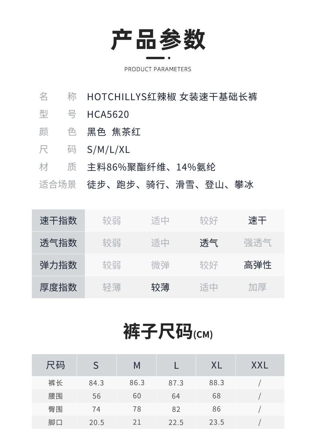 Hotchillys热椒桃皮女徒步秋冬户外跑步训练轻量保暖速干运动裤5620