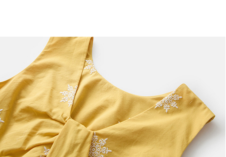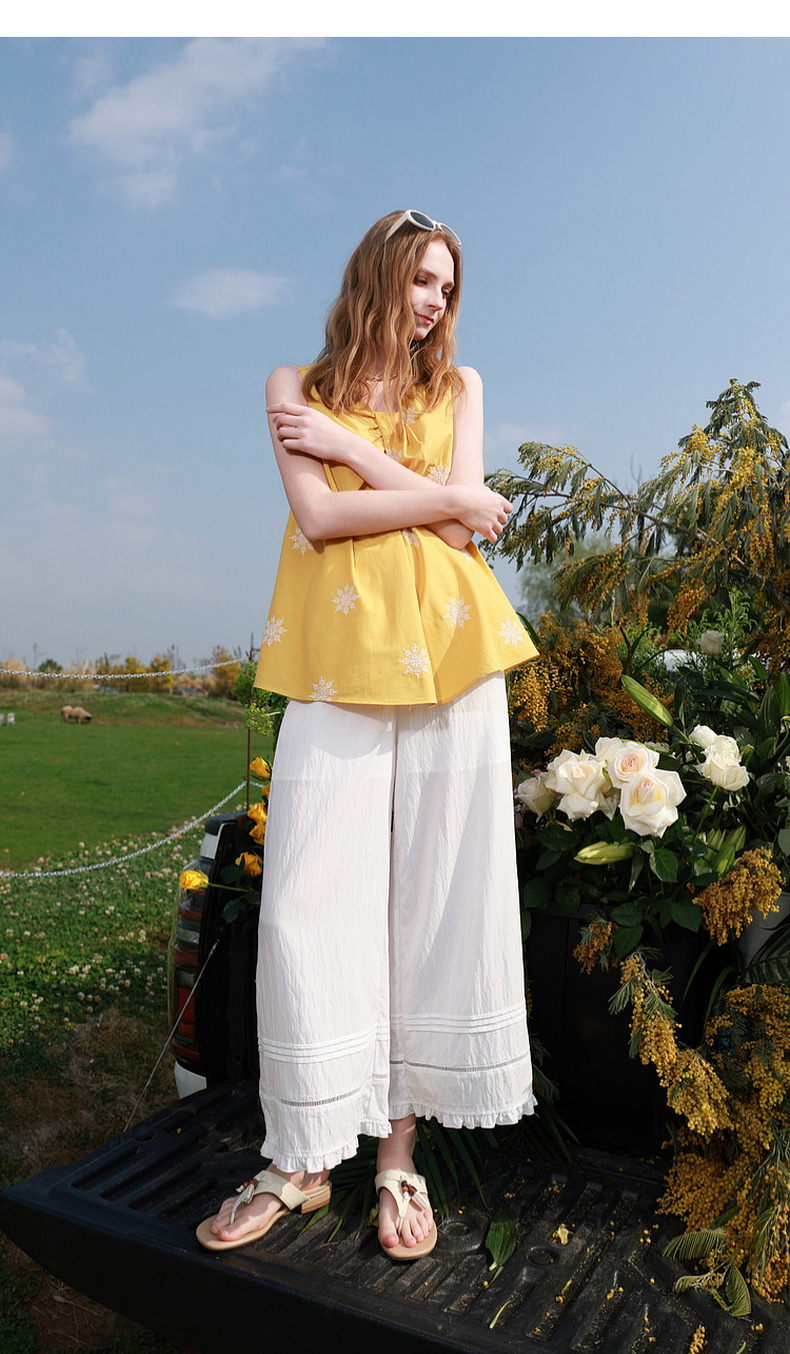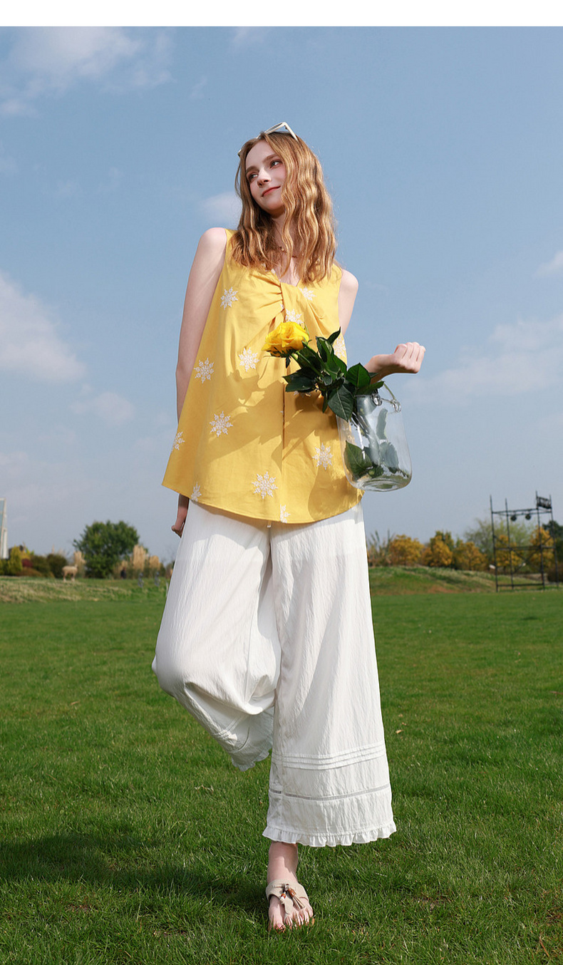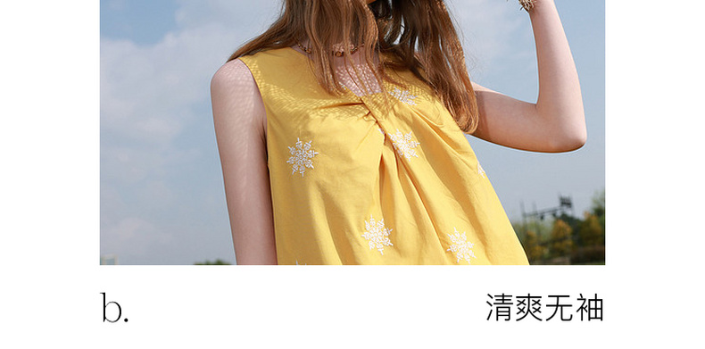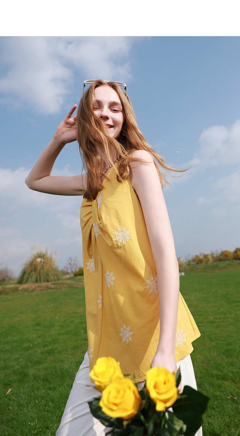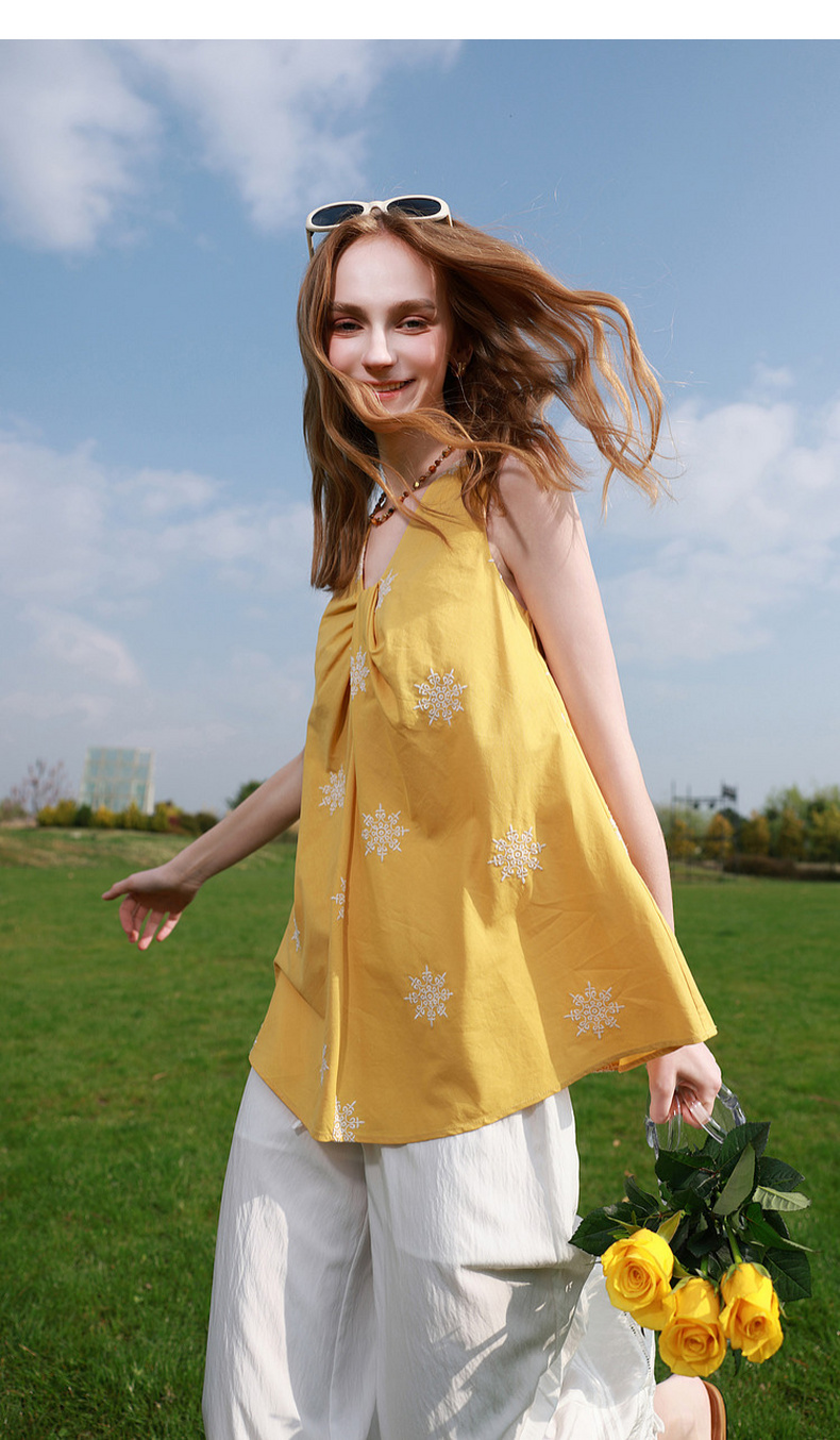 三彩2026夏季新款绣花小衫无袖V领扭结上衣套头M