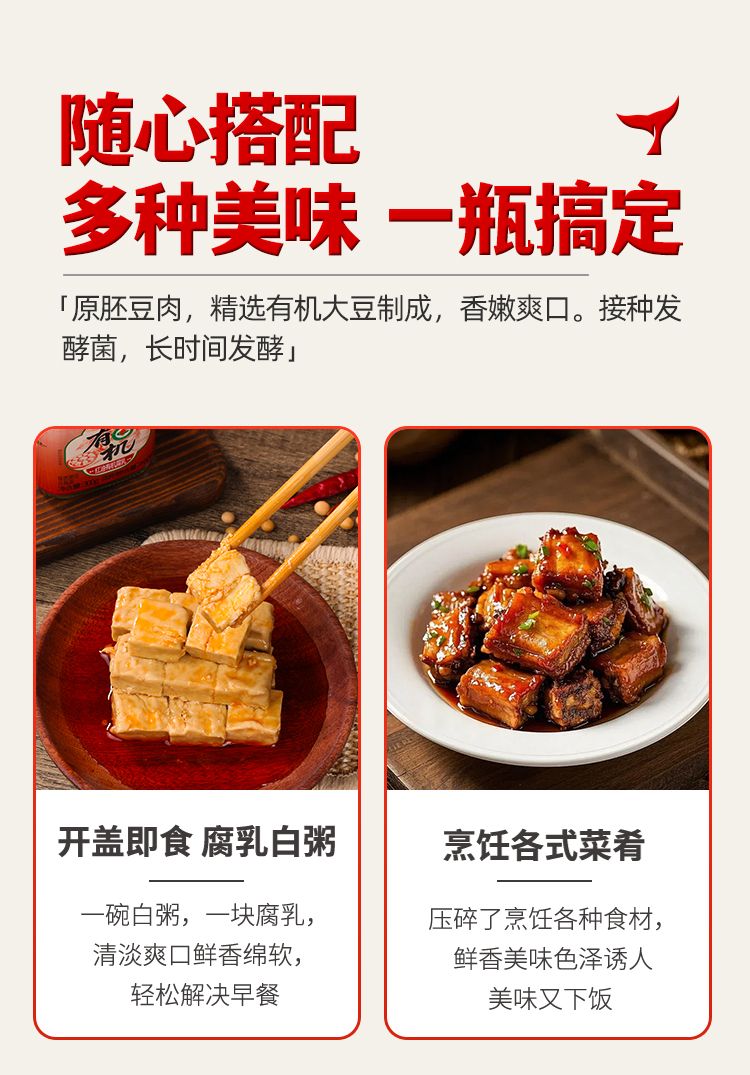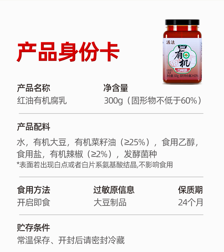 【规格】 :规格一:红油有机腐乳300g+有机白腐乳300g , 规格二:有机白腐乳300g*2