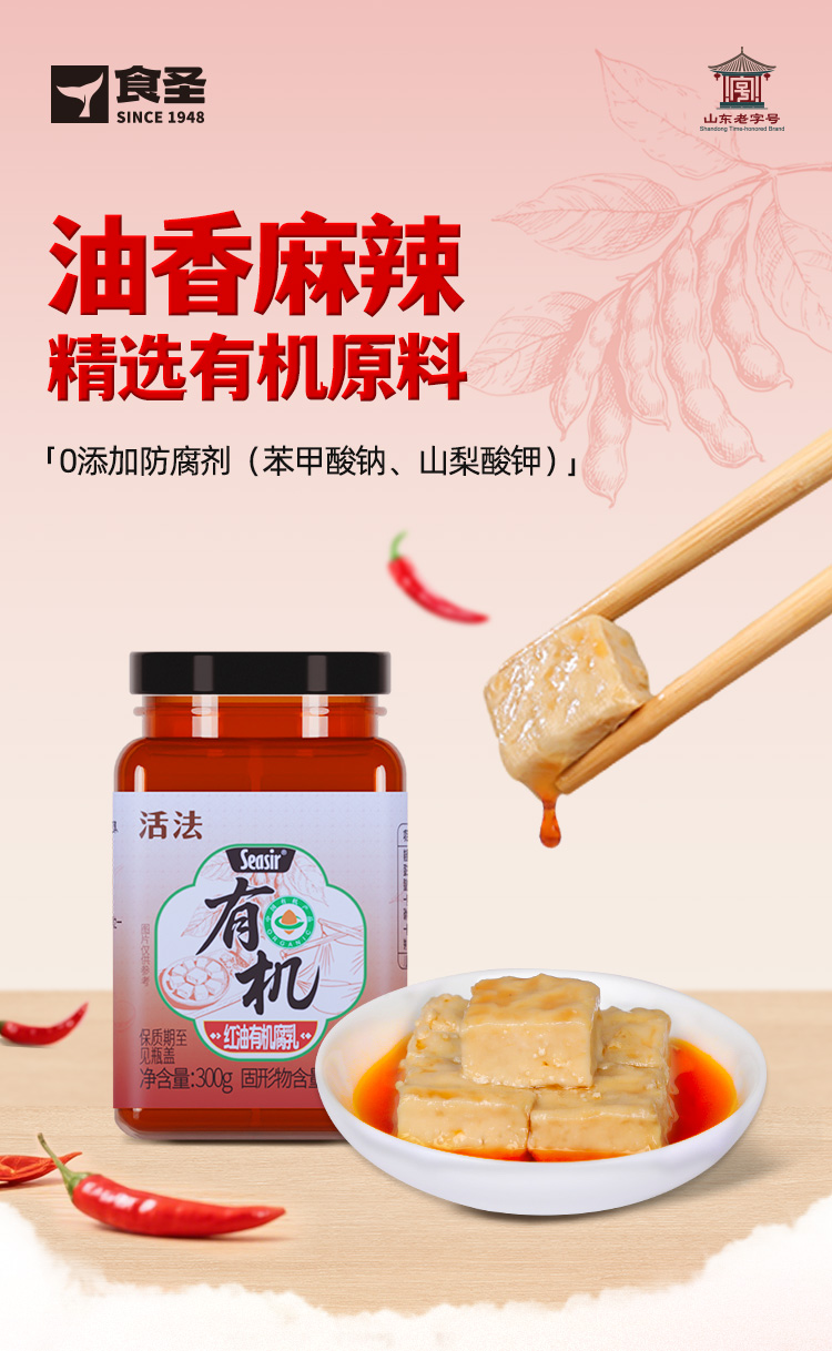 【品名】食圣有机白腐乳/红油有机腐乳300g