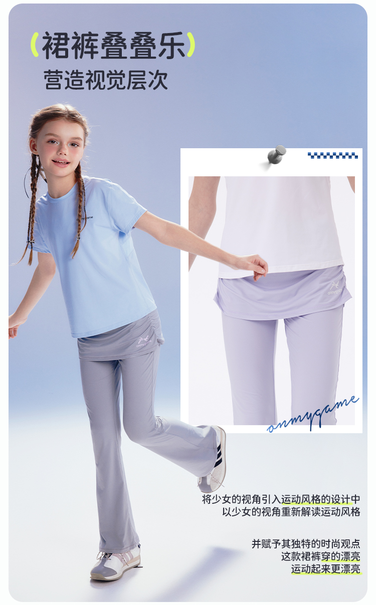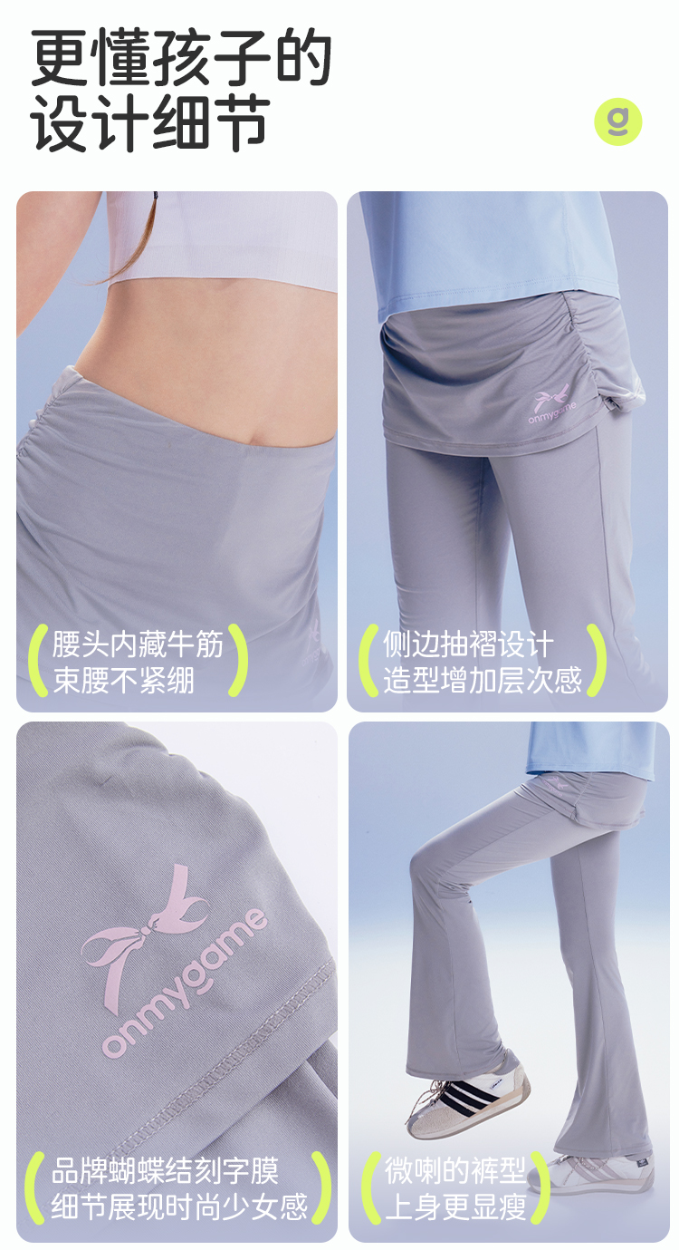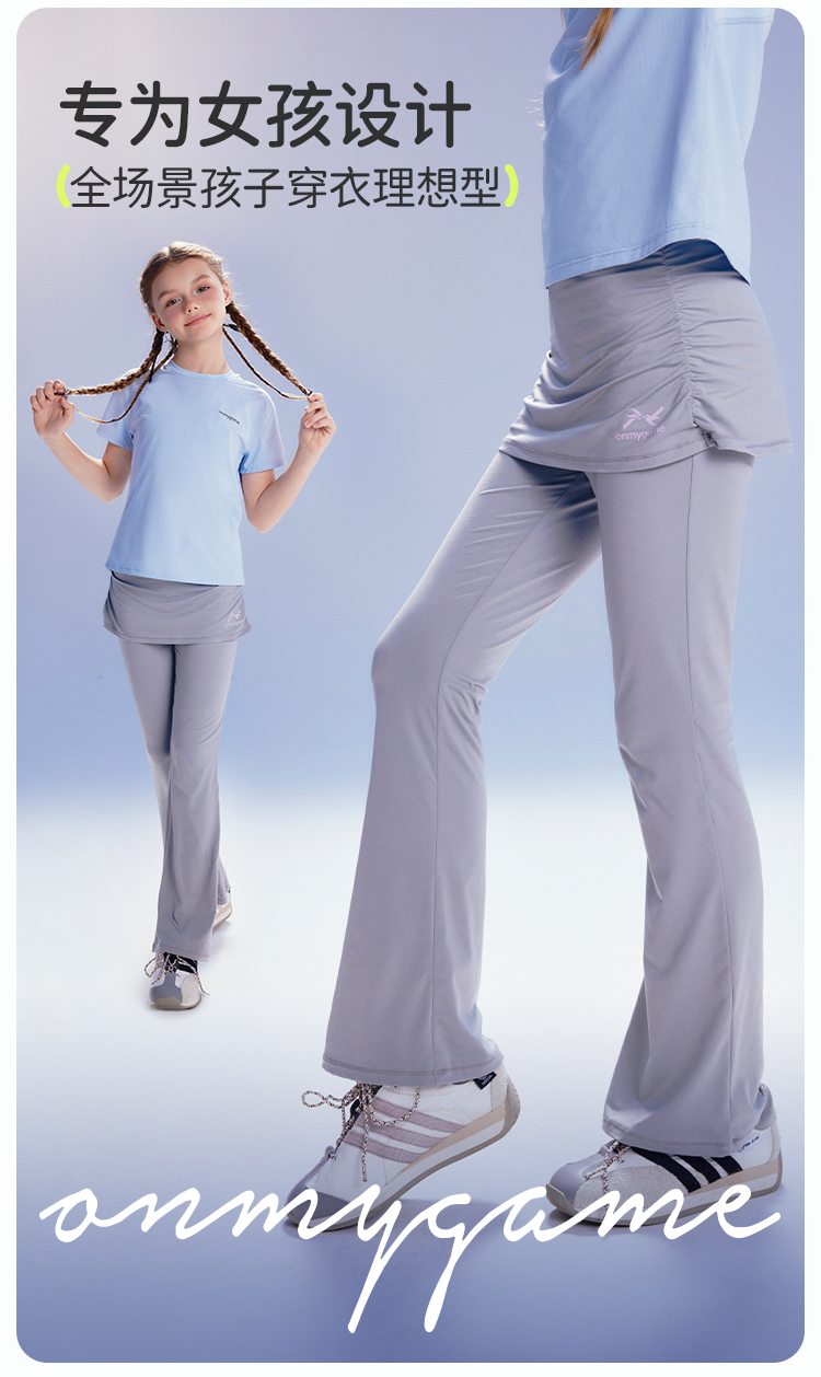 onmygame【爱丽丝千禧风】女童裙裤假两件轻薄瑜伽喇叭裤2025新款