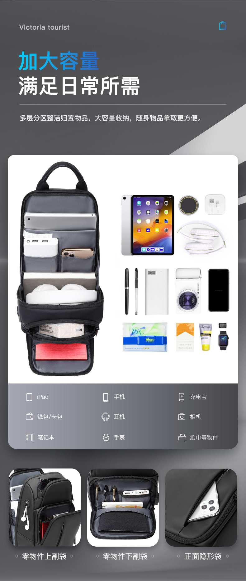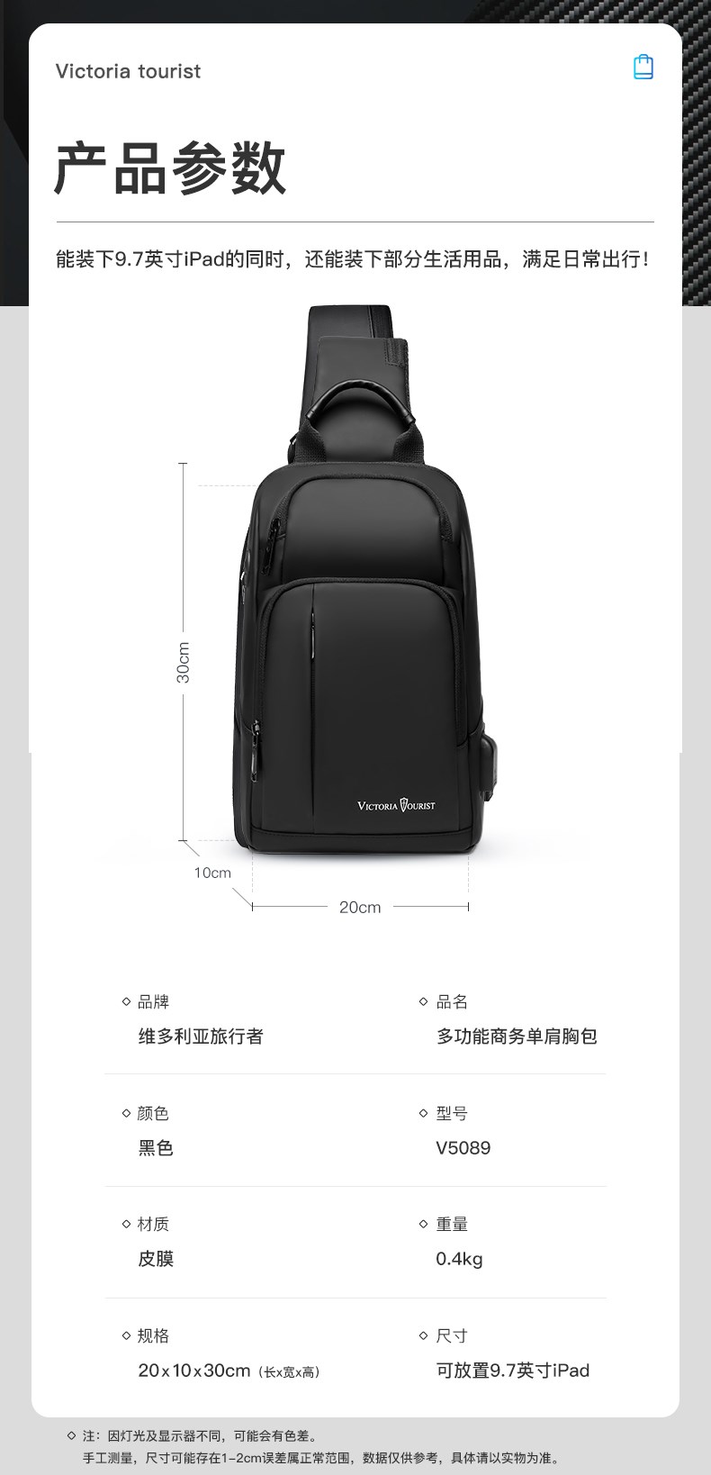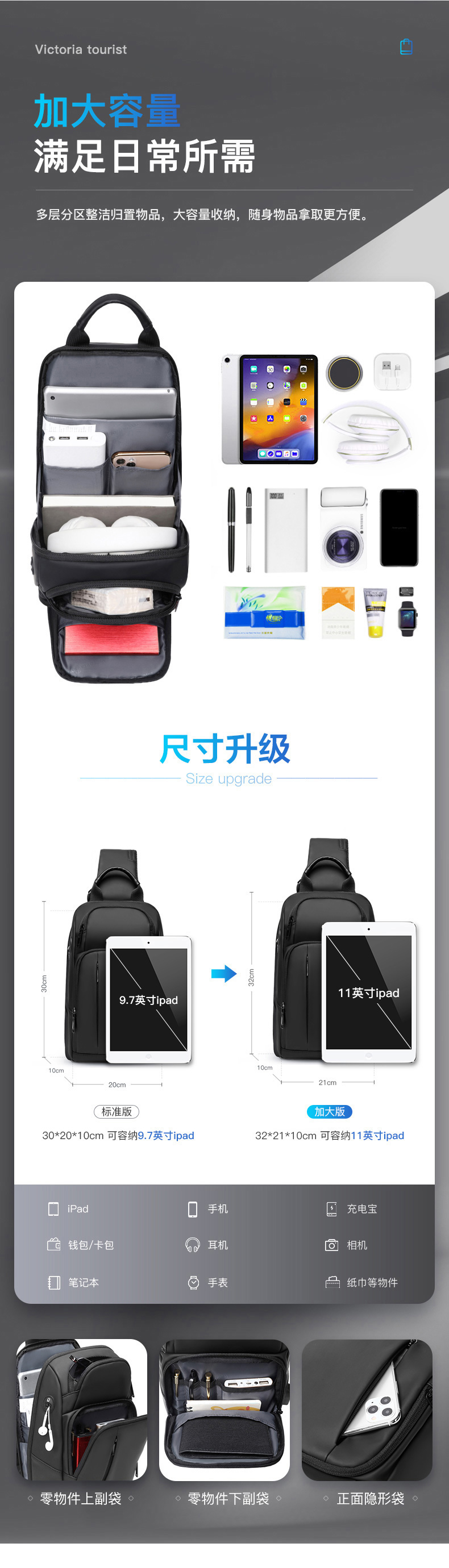 维多利亚旅行者多功能商务斜挎包单肩包胸包5089