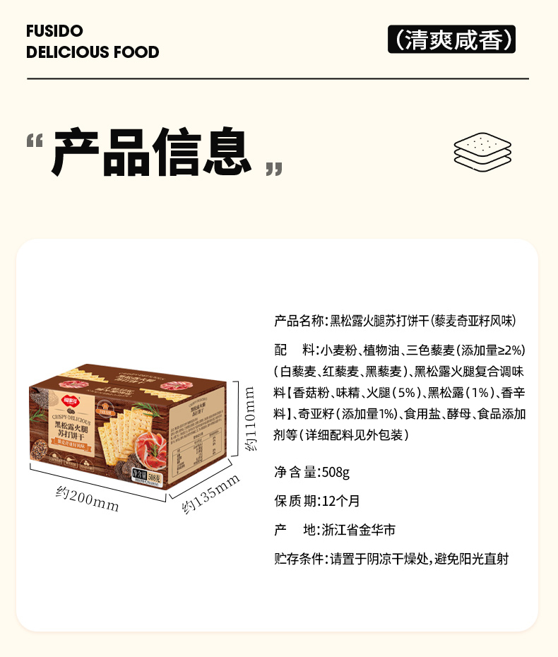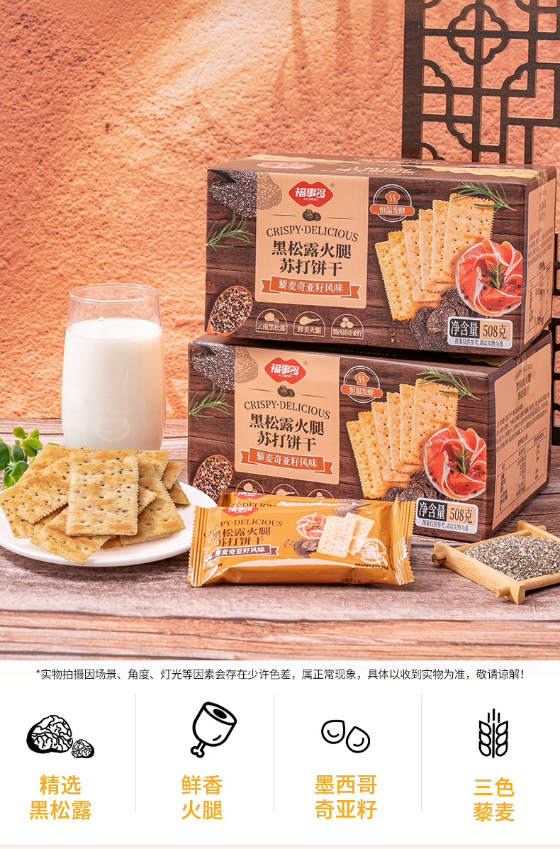 福事多黑松露火腿苏打饼干,奇亚籽风味508g*2盒