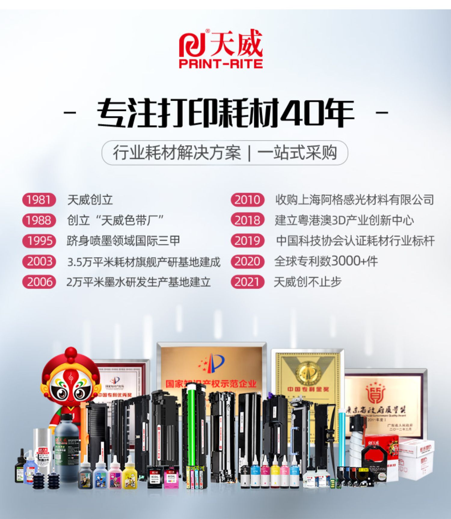 - 天威耗材始于1981年,主营硒鼓、墨盒、色带等办公耗材商品,中国知名通用打印耗材倡导者和生产商。
