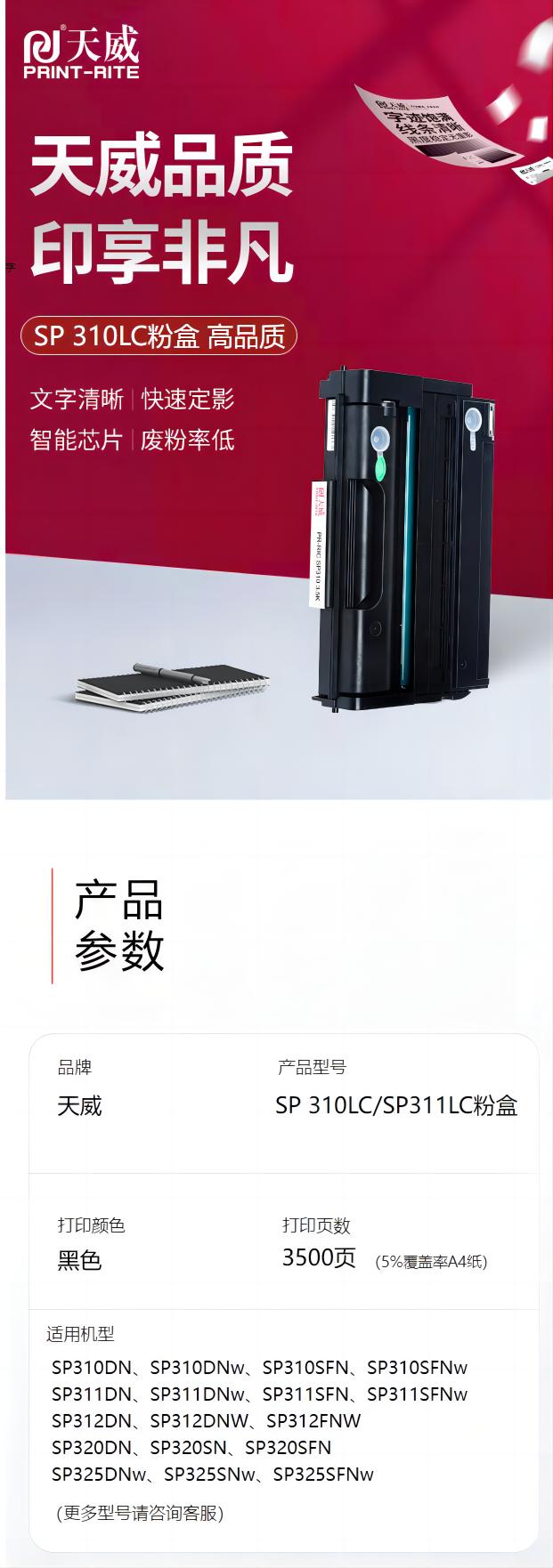 天威SP310LC SP311LC墨粉盒适用理光SP310 SP311 SP312 SP320 SP325 SP310DNw SP310DN SP325SNW SP320DN粉盒
