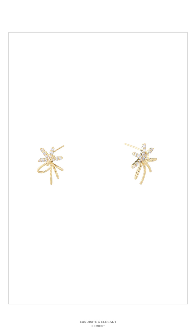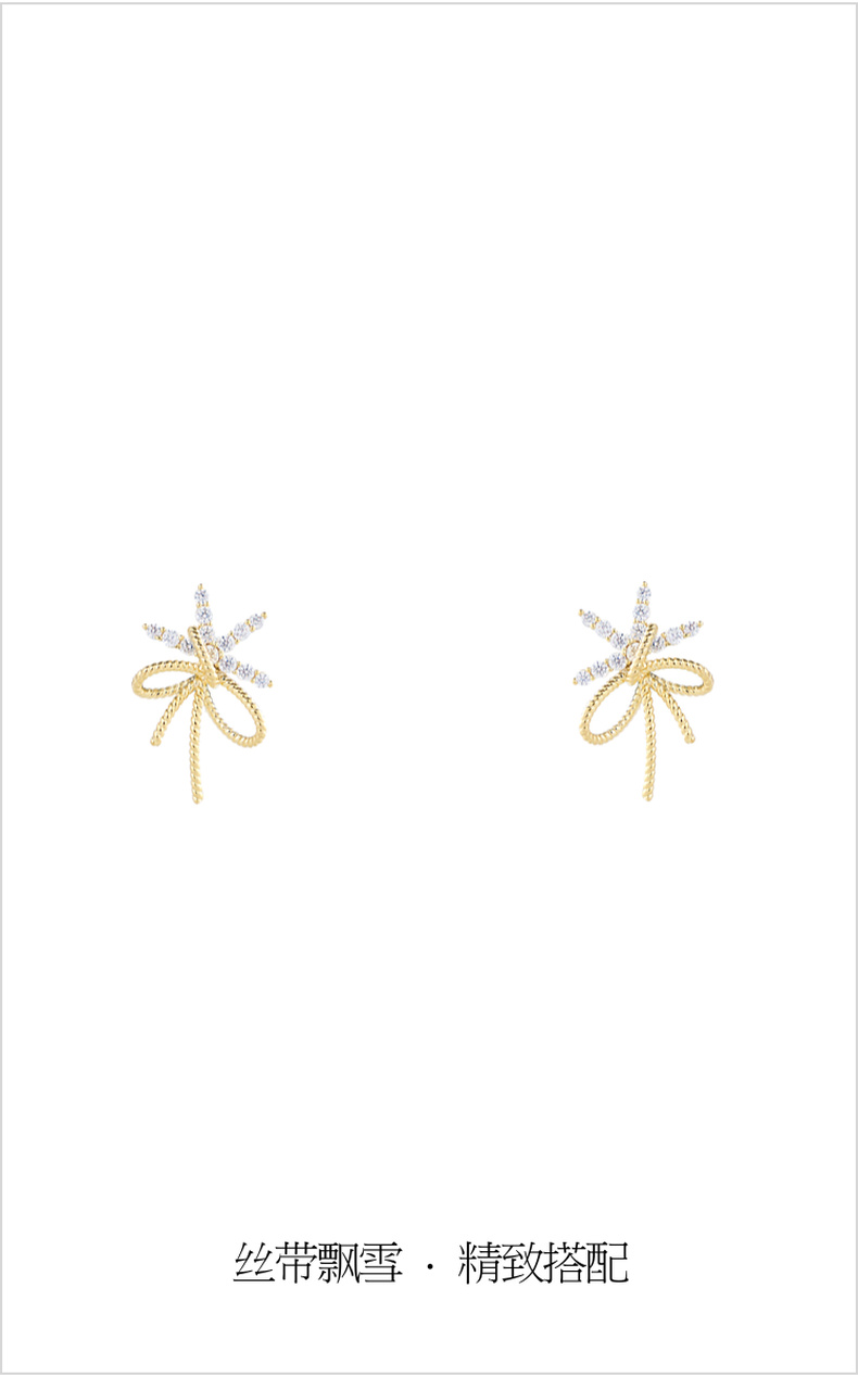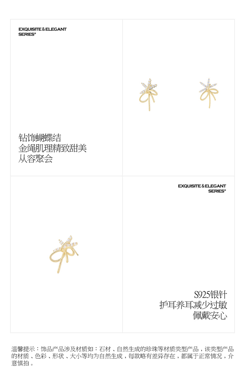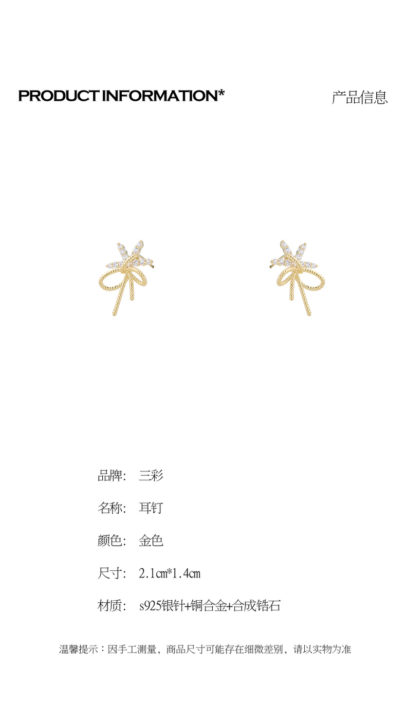 三彩2026新款轻奢锆饰蝴蝶结耳钉甜美金绳肌理s925银针聚会甜酷女