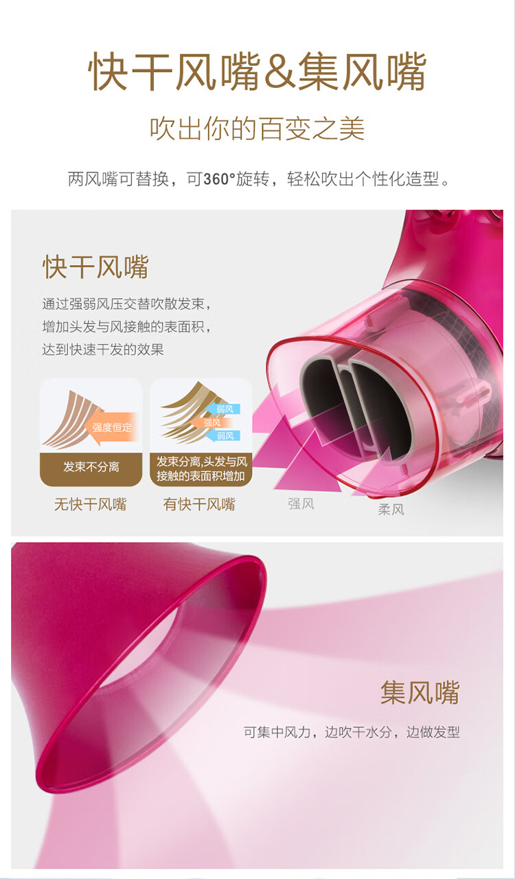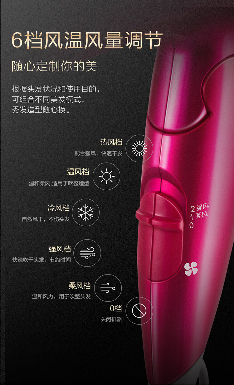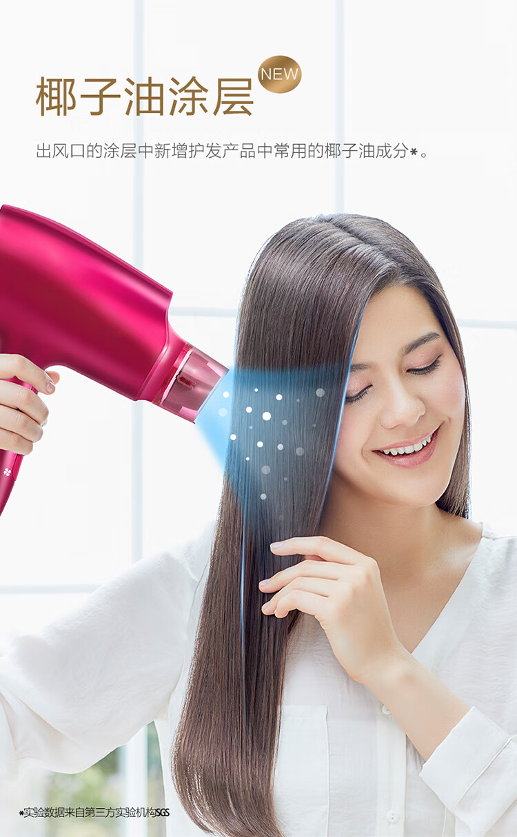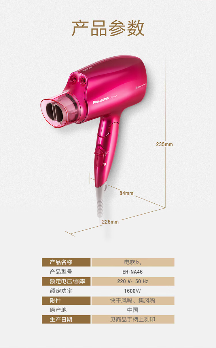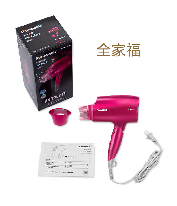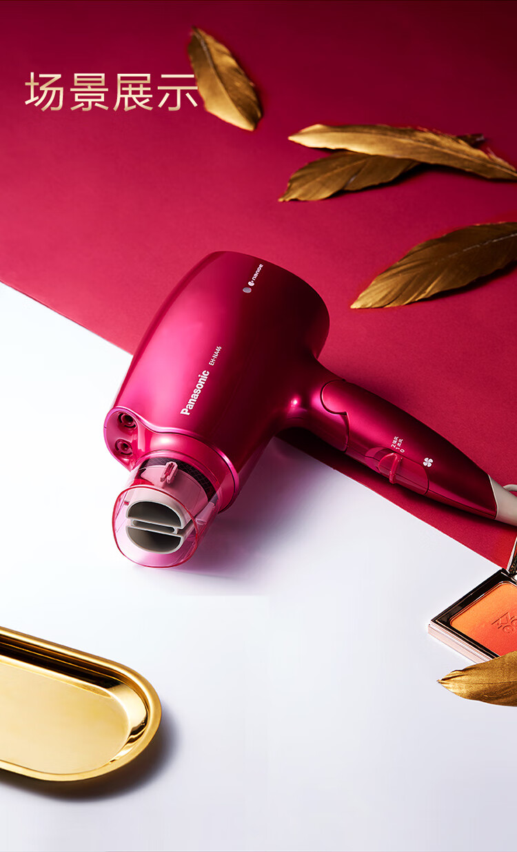 松下(Panasonic)电吹风机大功率高速大风力家用送老婆女友折叠便携纳诺怡负离子水润护发电吹风筒EH-NA46红色