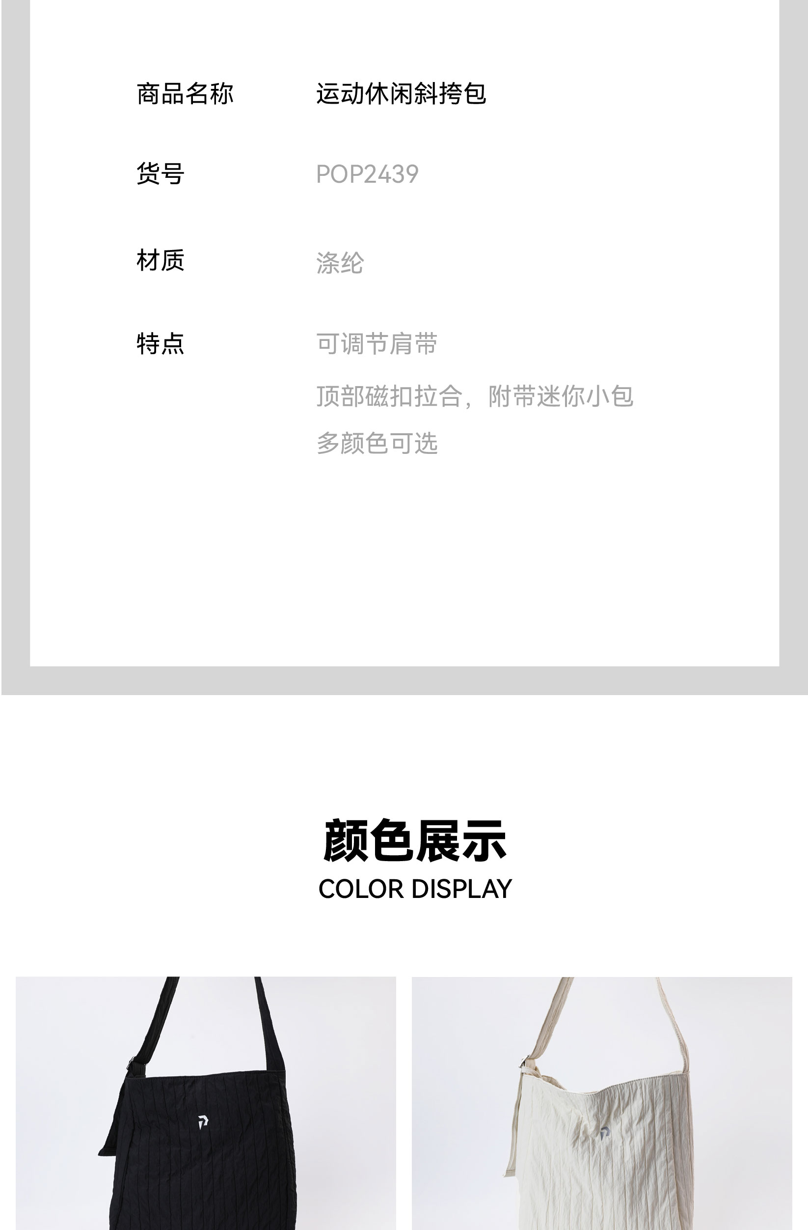 POPBASIC运动休闲斜挎包帆布百搭大容量