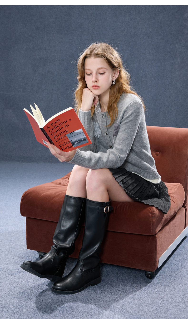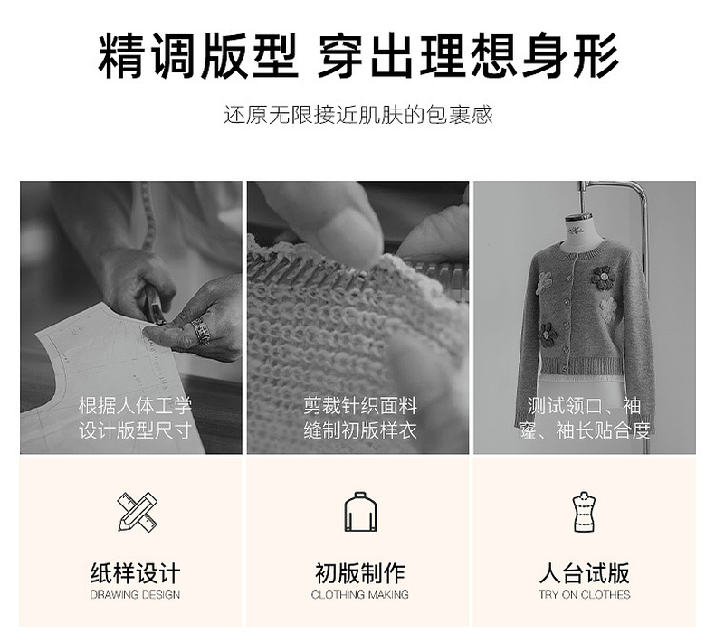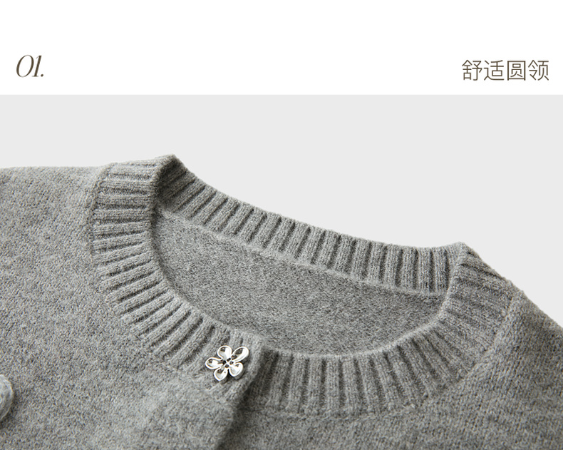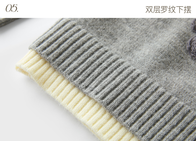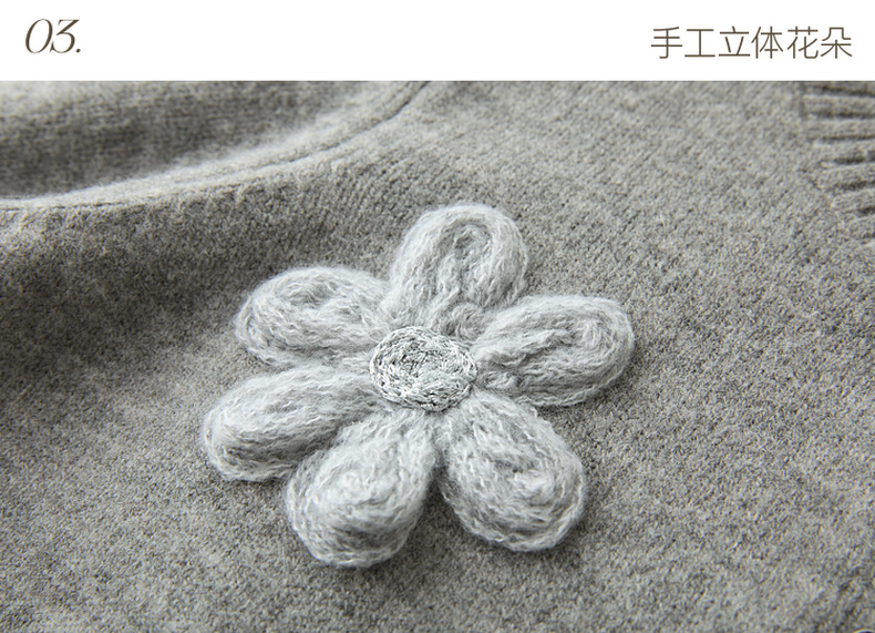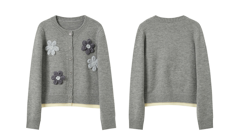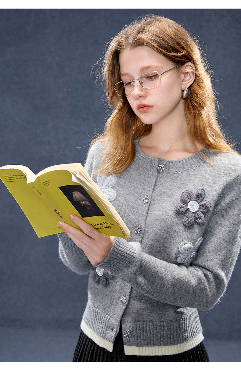 三彩2026春季新款手工花朵开衫针织衫圆领毛衫休闲上衣简约M