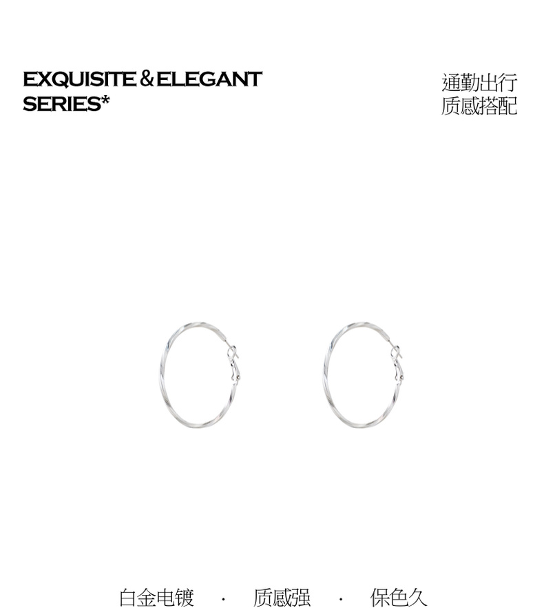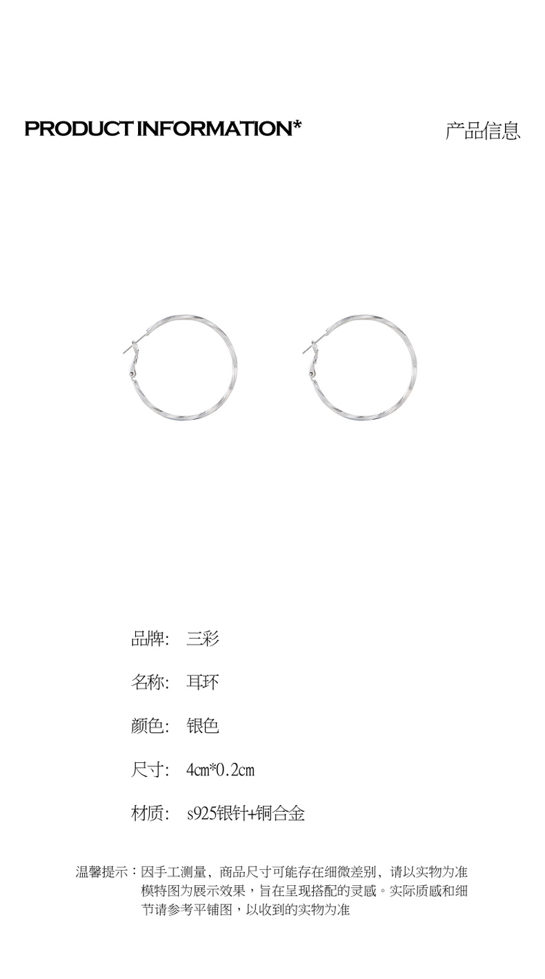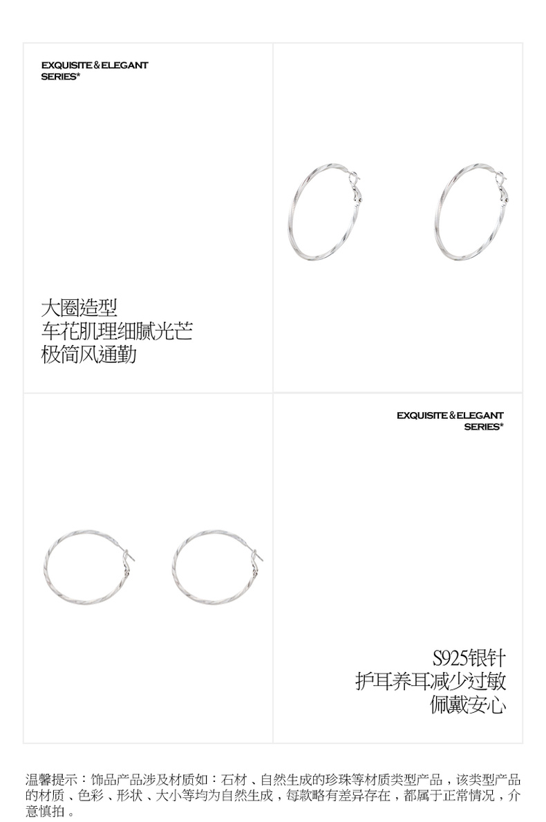 三彩2026新款极简扭型大圈耳环s925银针车花肌理欧美通勤百搭