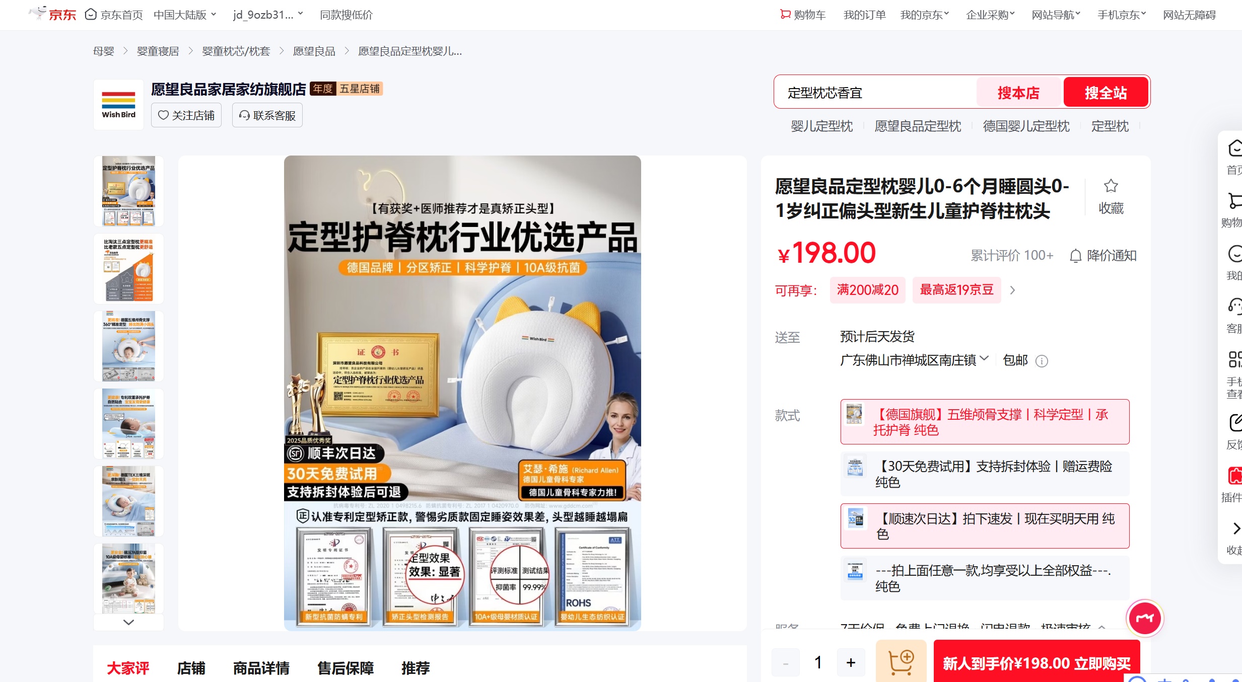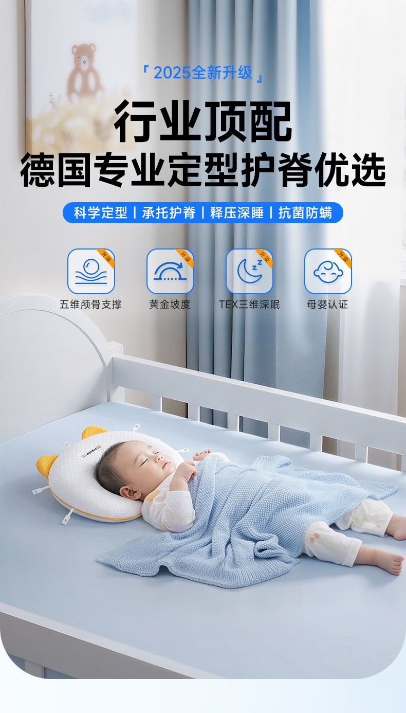 德国品牌,产品质量非常好,京东热卖198元,0-1岁宝宝适用,科学定型,睡出小圆头!