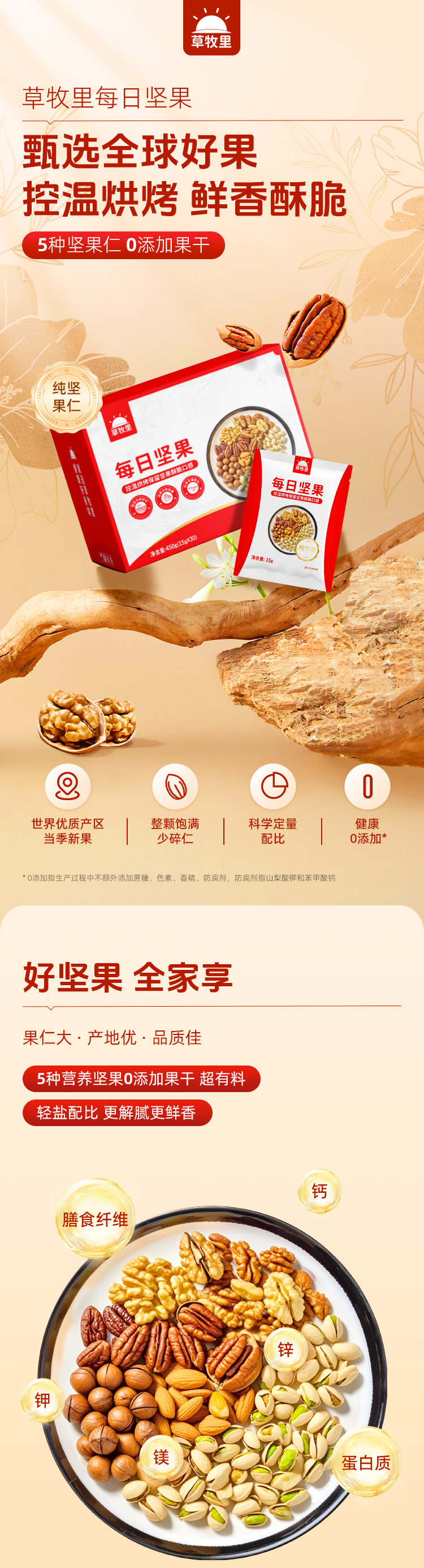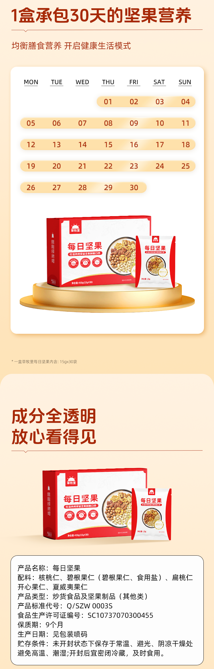 【科学定量配比】草牧里 每日坚果 15g*30袋/盒 控温烘烤鲜香酥脆 (早餐好物)【0315晚直播】