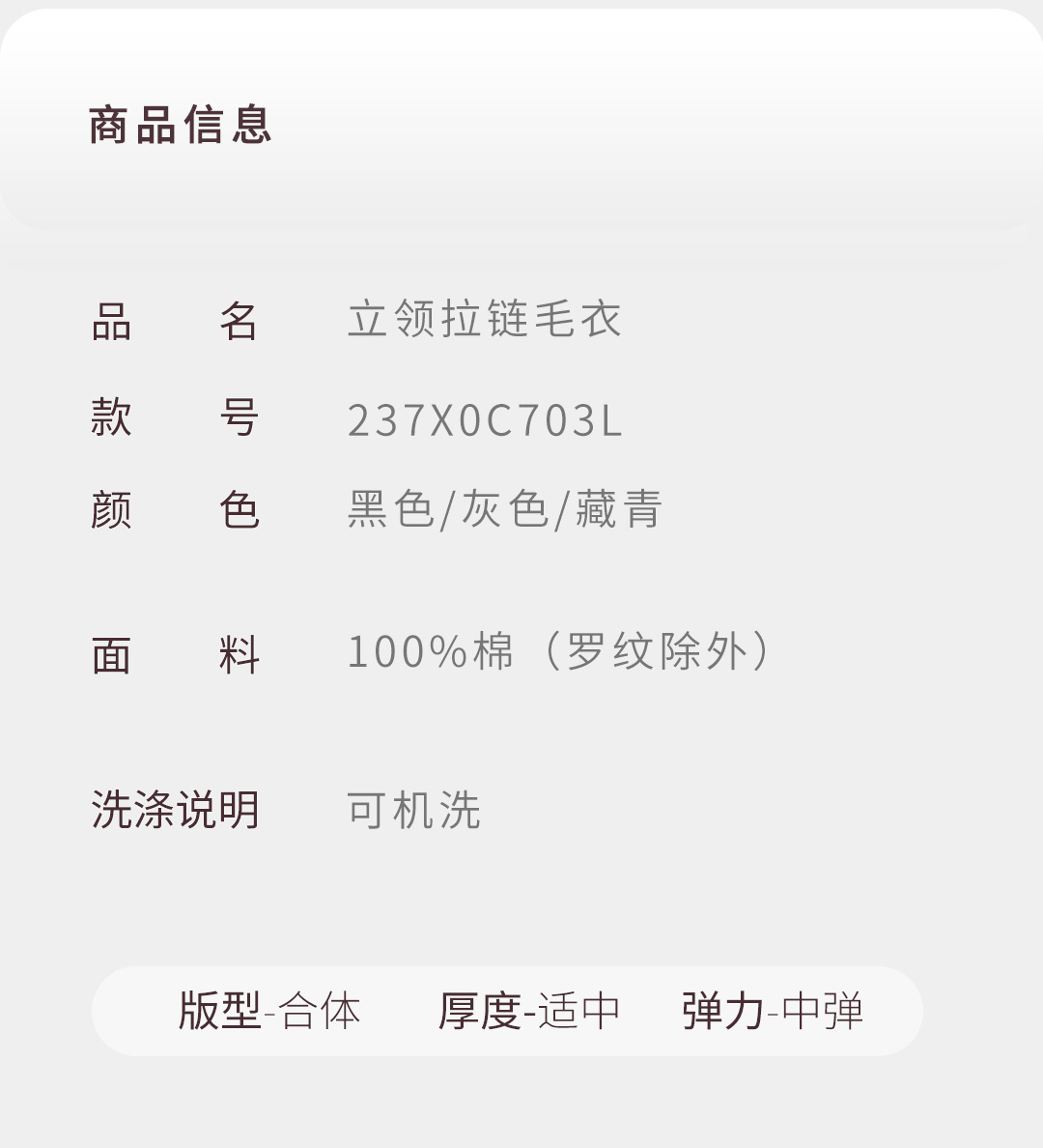 [轻织系列]断码清仓14针立领拉链毛衣外套237X0C703L