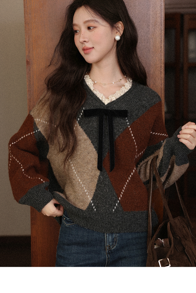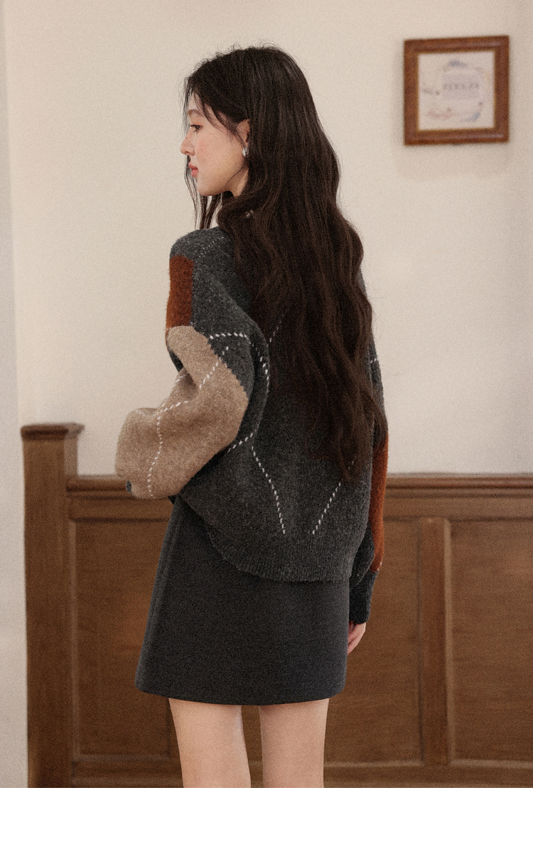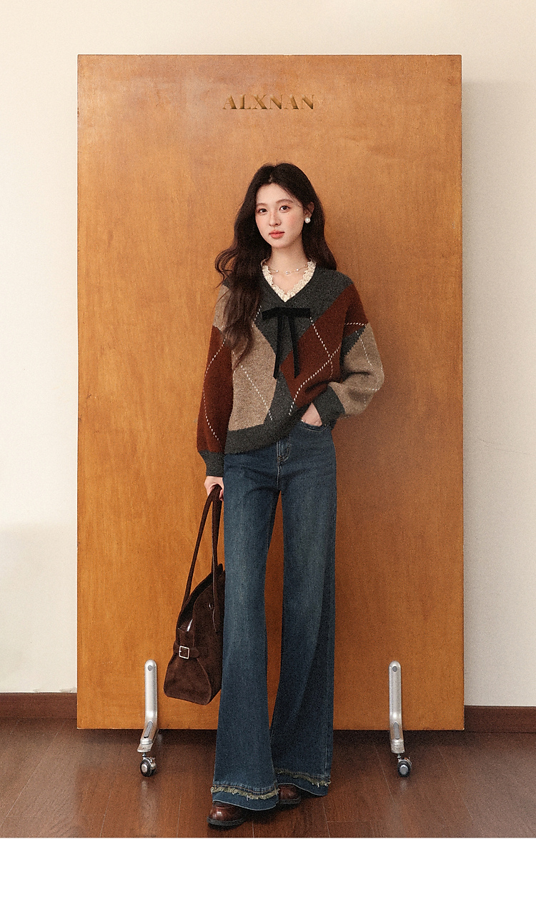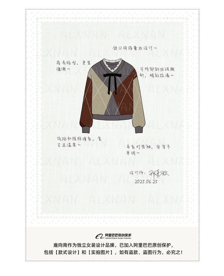 鹿向南「梧桐树影」慵懒分花色气质毛衣女秋季设计感法式长袖上衣