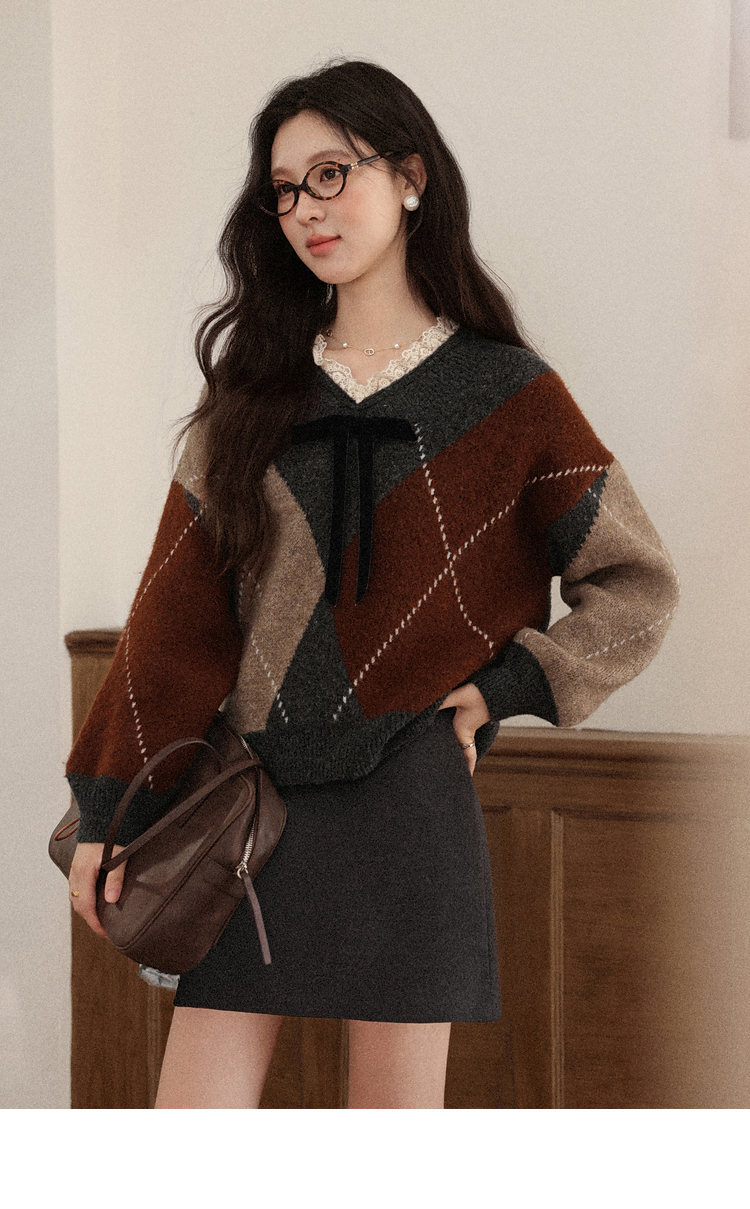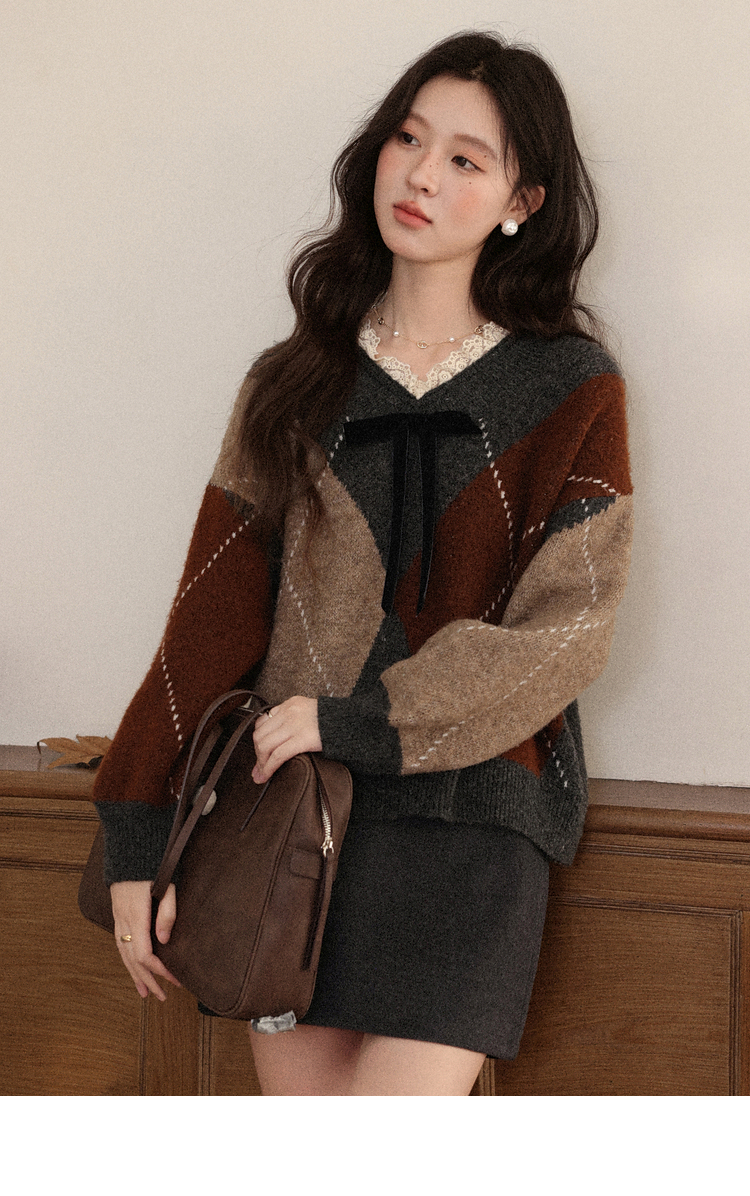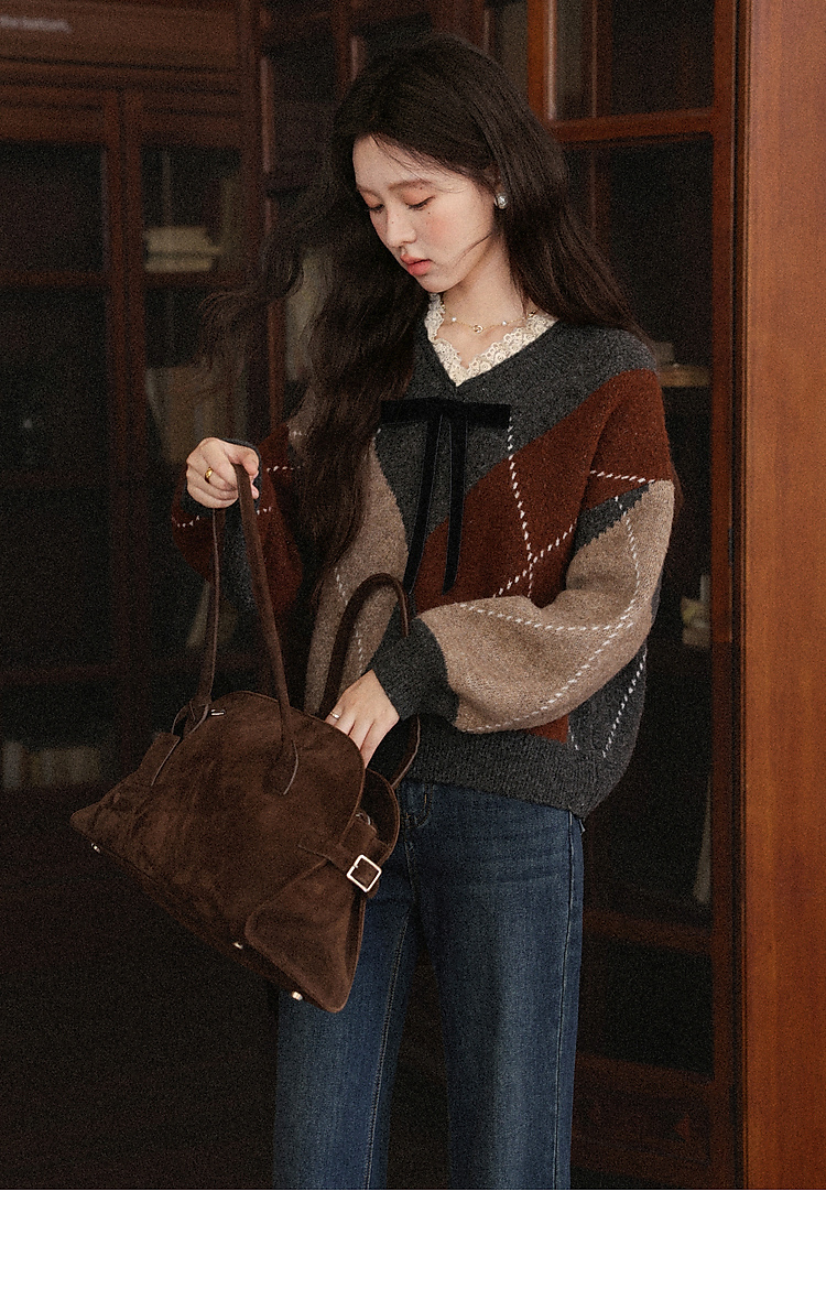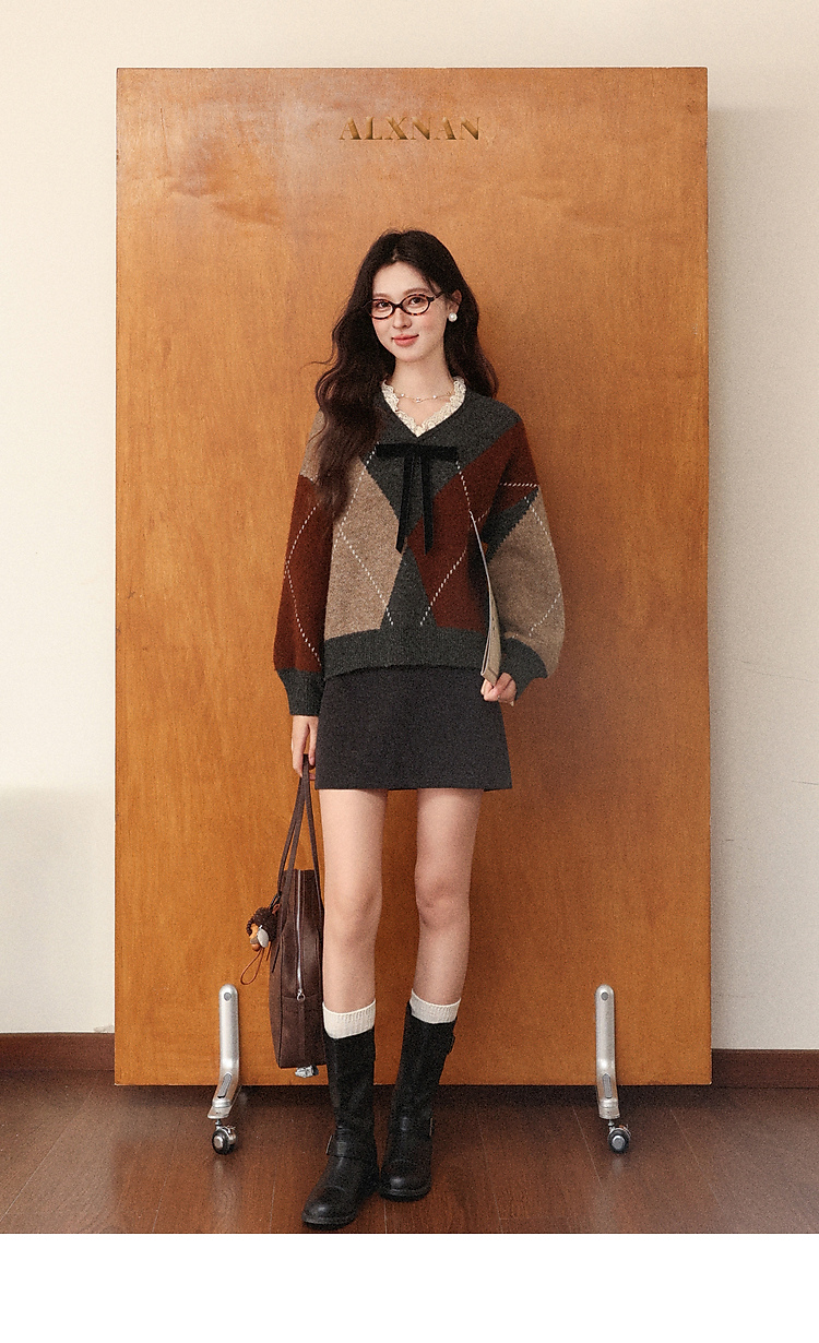 鹿向南「梧桐树影」慵懒分花色气质毛衣女秋季设计感法式长袖上衣