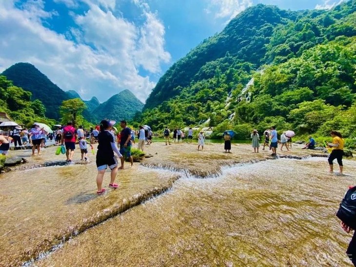 夏天奔赴小七孔游玩,务必要带上一双拖鞋呀!当你踏入水上森林,便能尽情与溪水嬉戏,让沁凉的水流漫过脚背、没过脚踝,在潺潺水声里,夏日的燥热顷刻间被一扫而光,那股舒爽劲儿直直钻进骨子里,教人沉醉又难忘 。