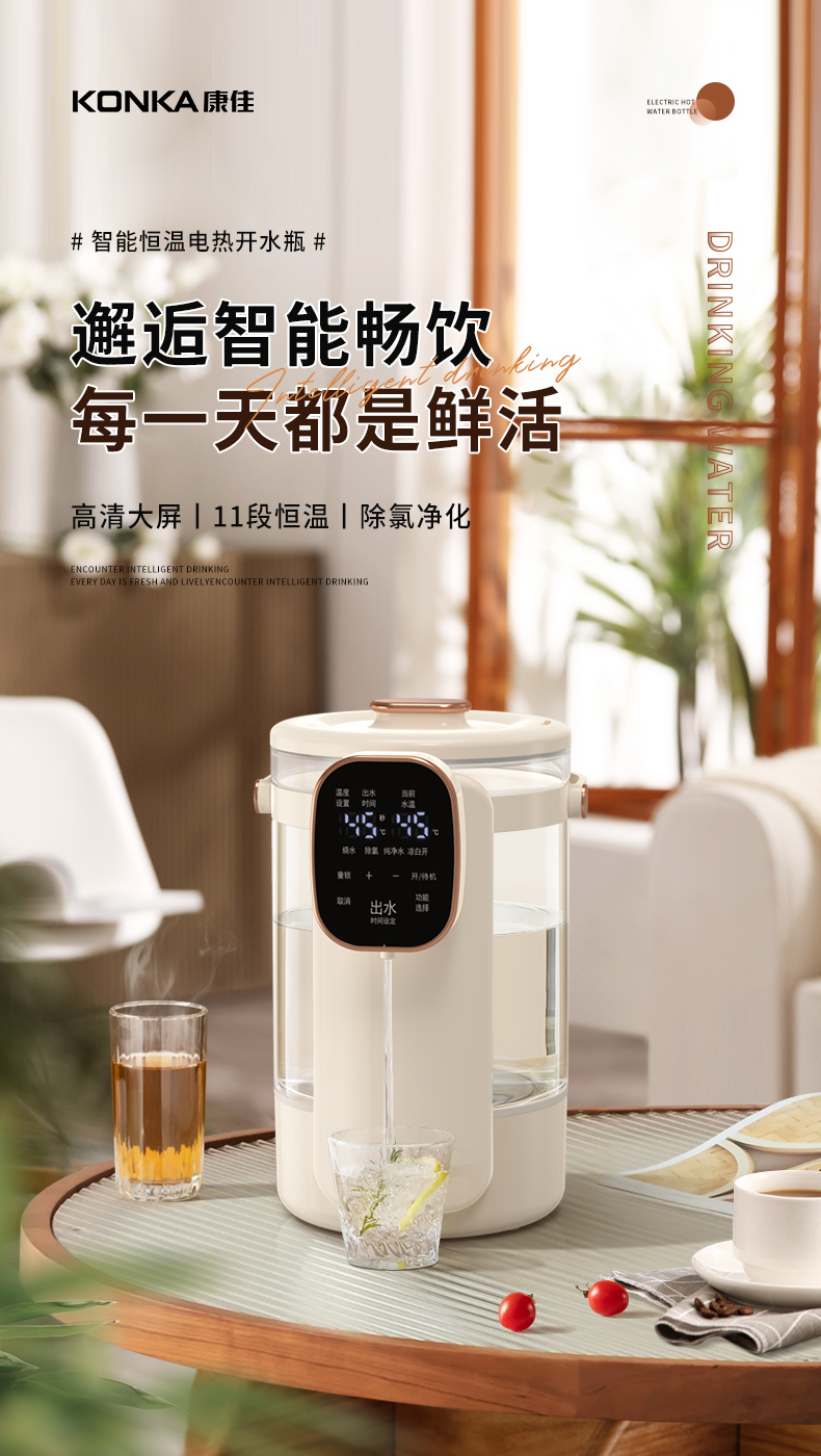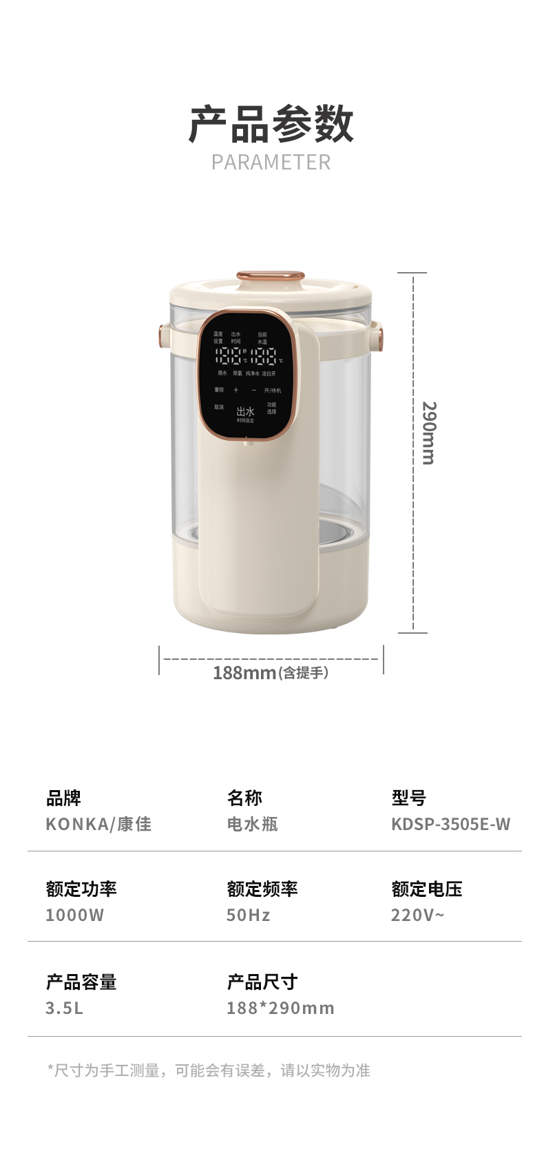 康佳(KONKA)恒温水壶电热水瓶电热水壶3.5L大容量防烫除氯玻璃保温304不锈钢KDSP-3505E-W