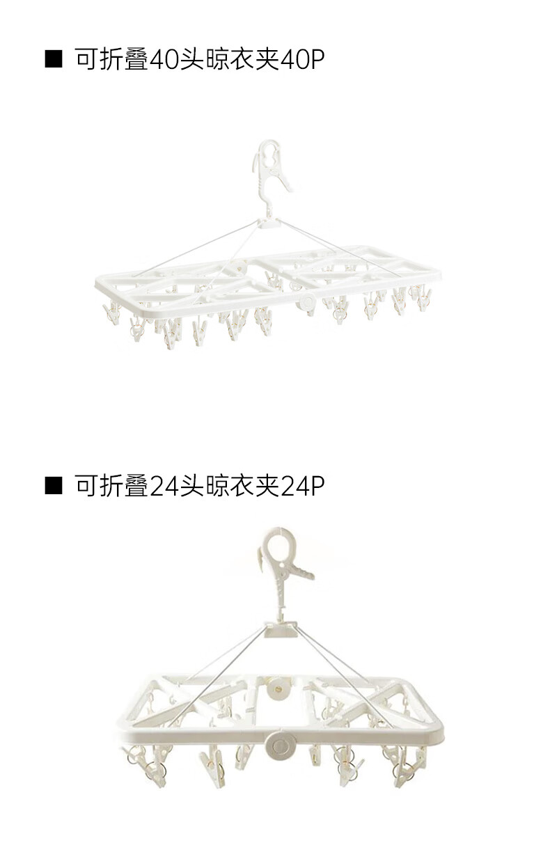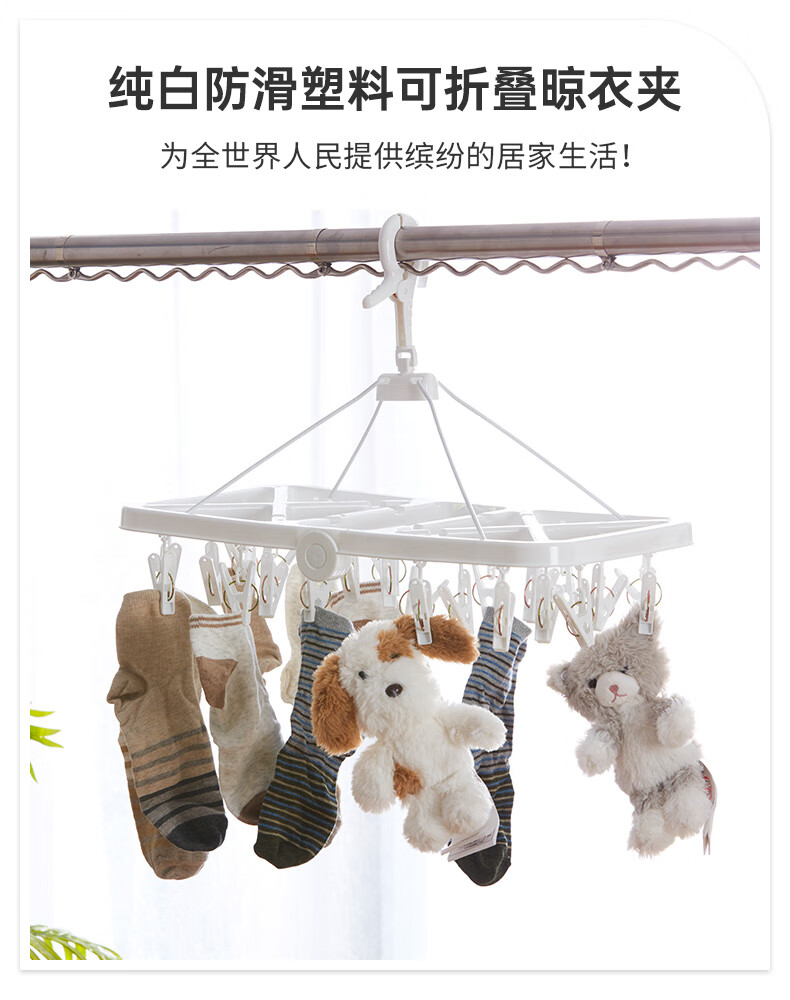 纯白防滑塑料可折叠24头晾衣夹24P NW