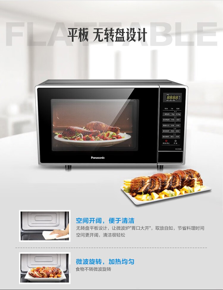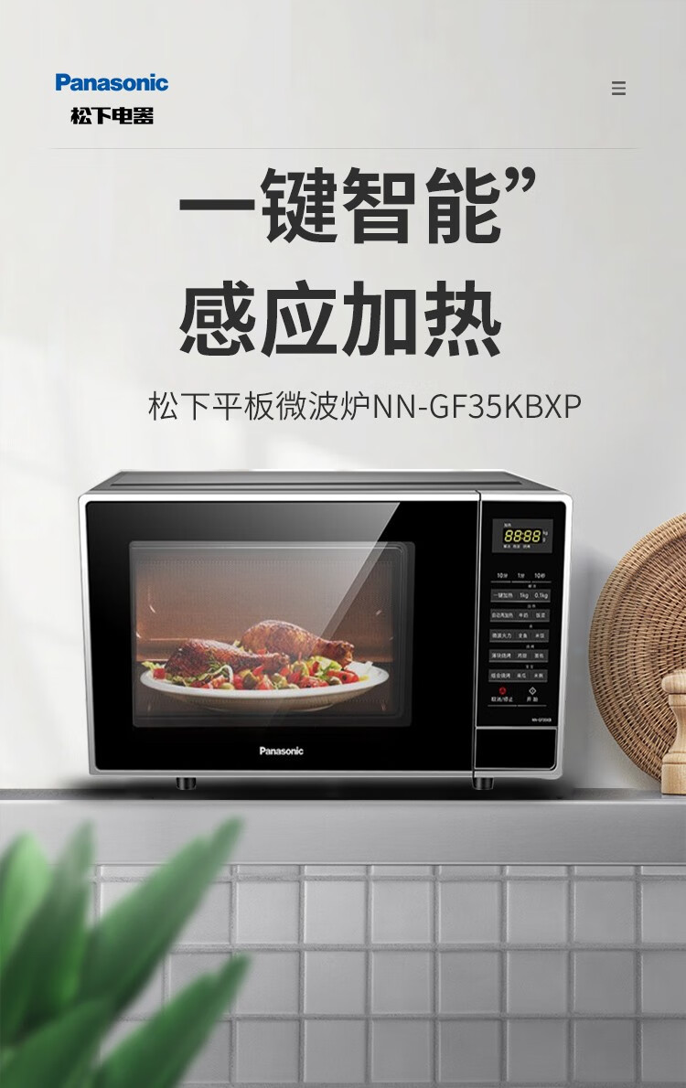 松下 (Panasonic)微波炉智能家用多功能烤箱23升自动菜单解冻微波炉烤箱一体机 NN-GF35KBXPE